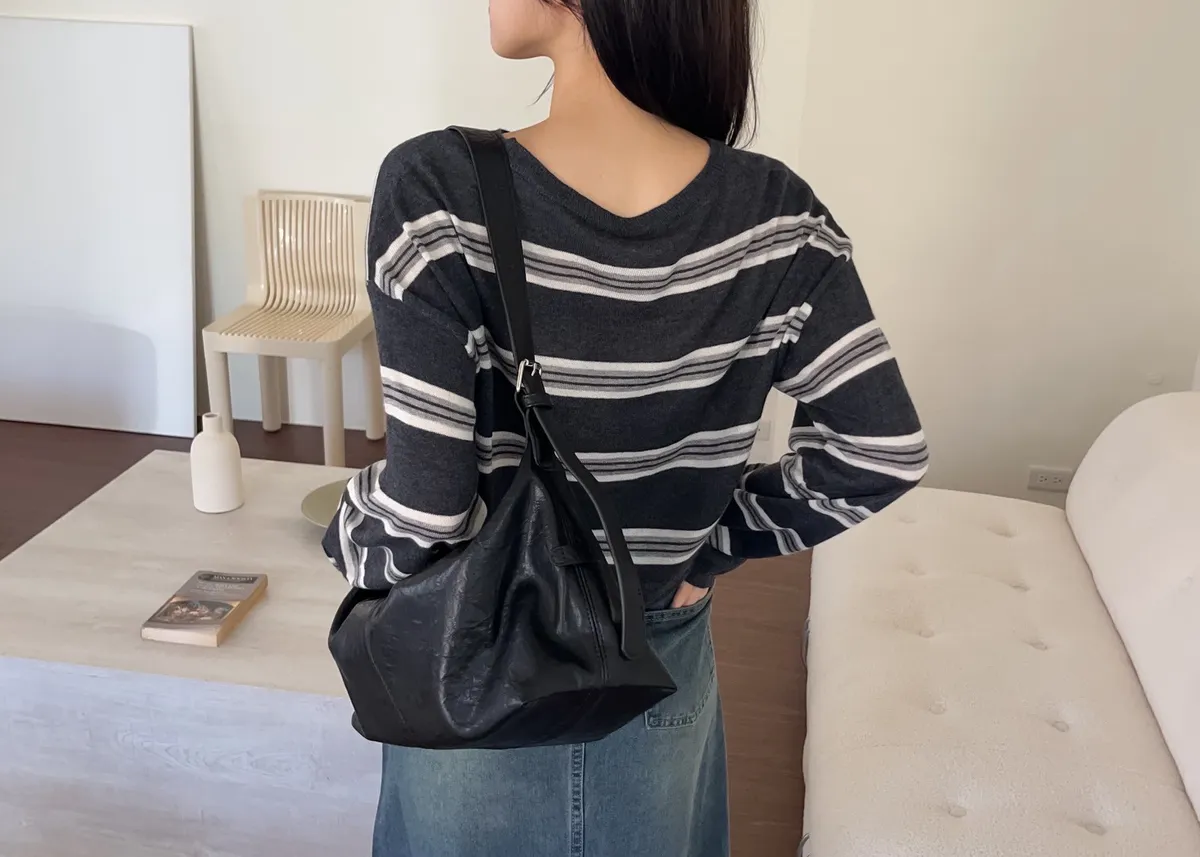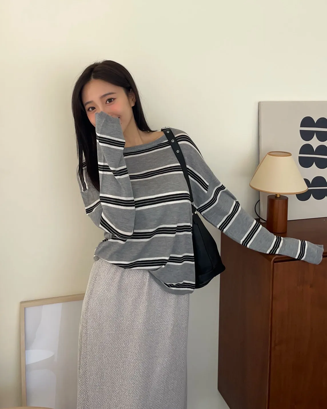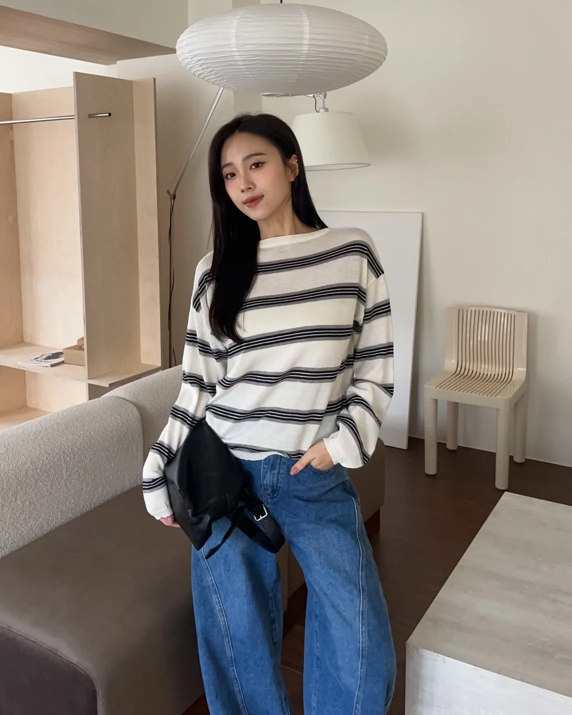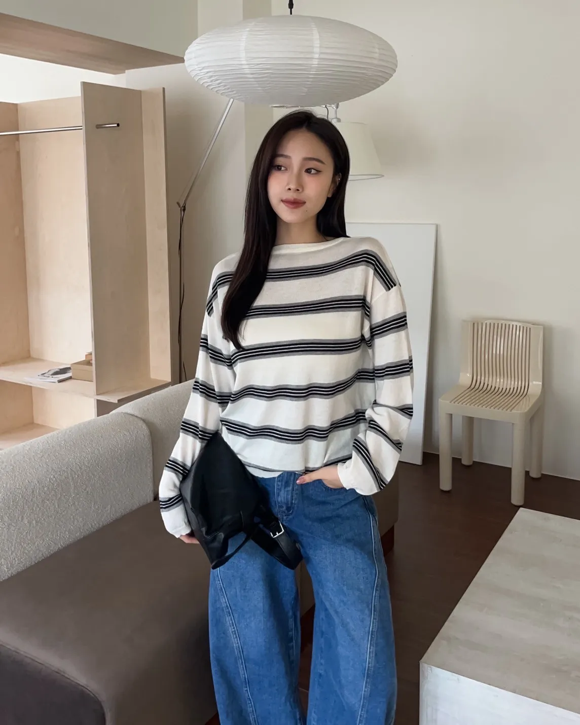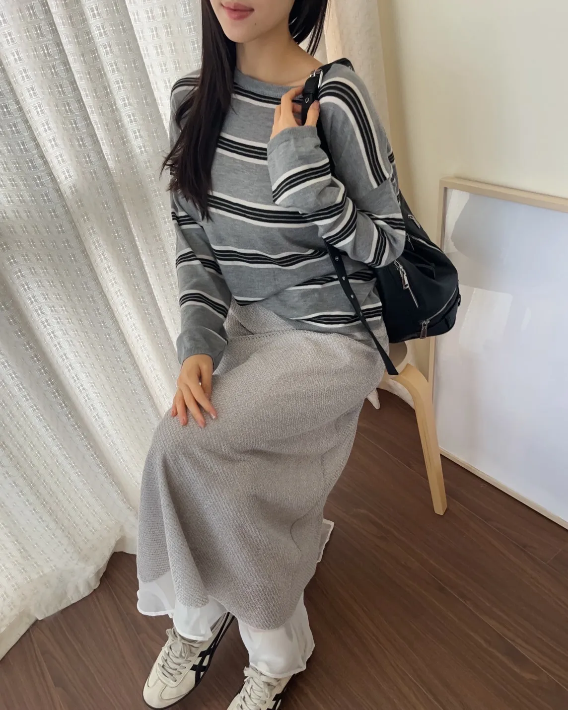 T0065綿綿軟軟橫條薄毛衣(米白/淺灰/深灰)