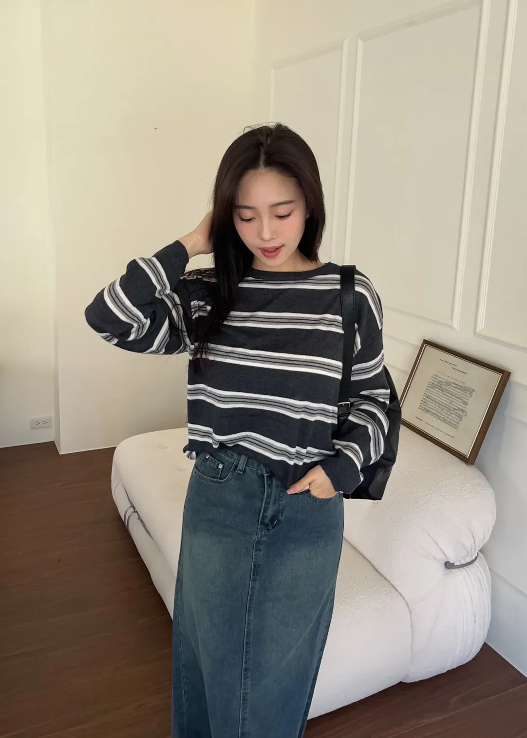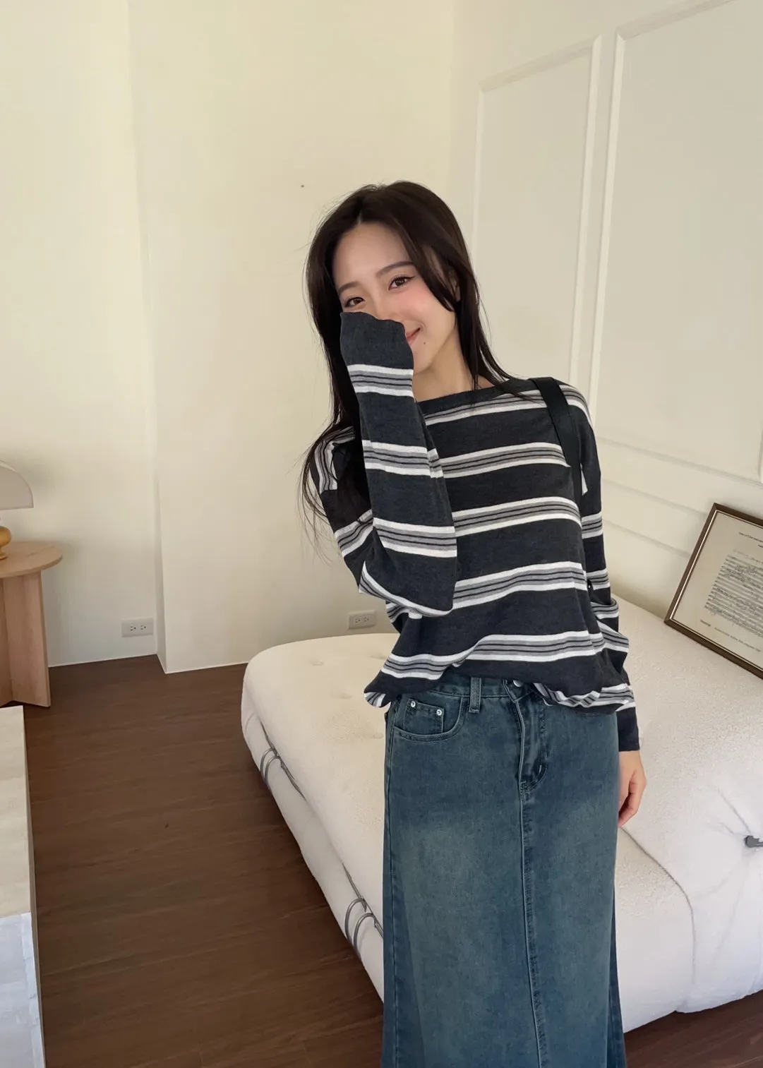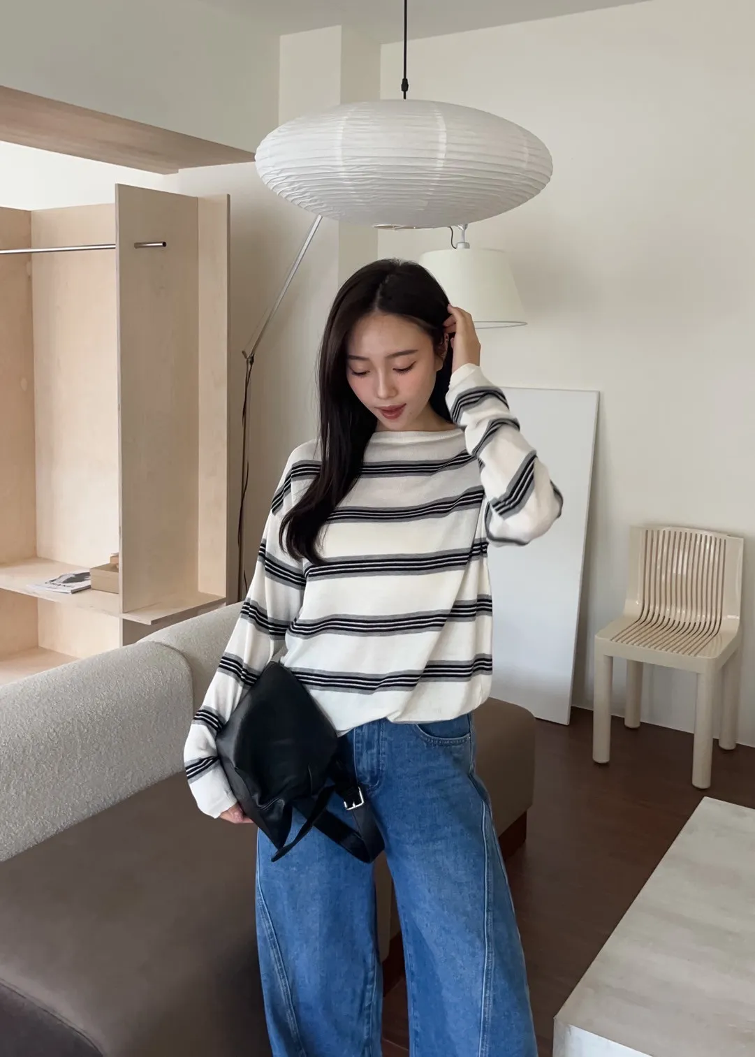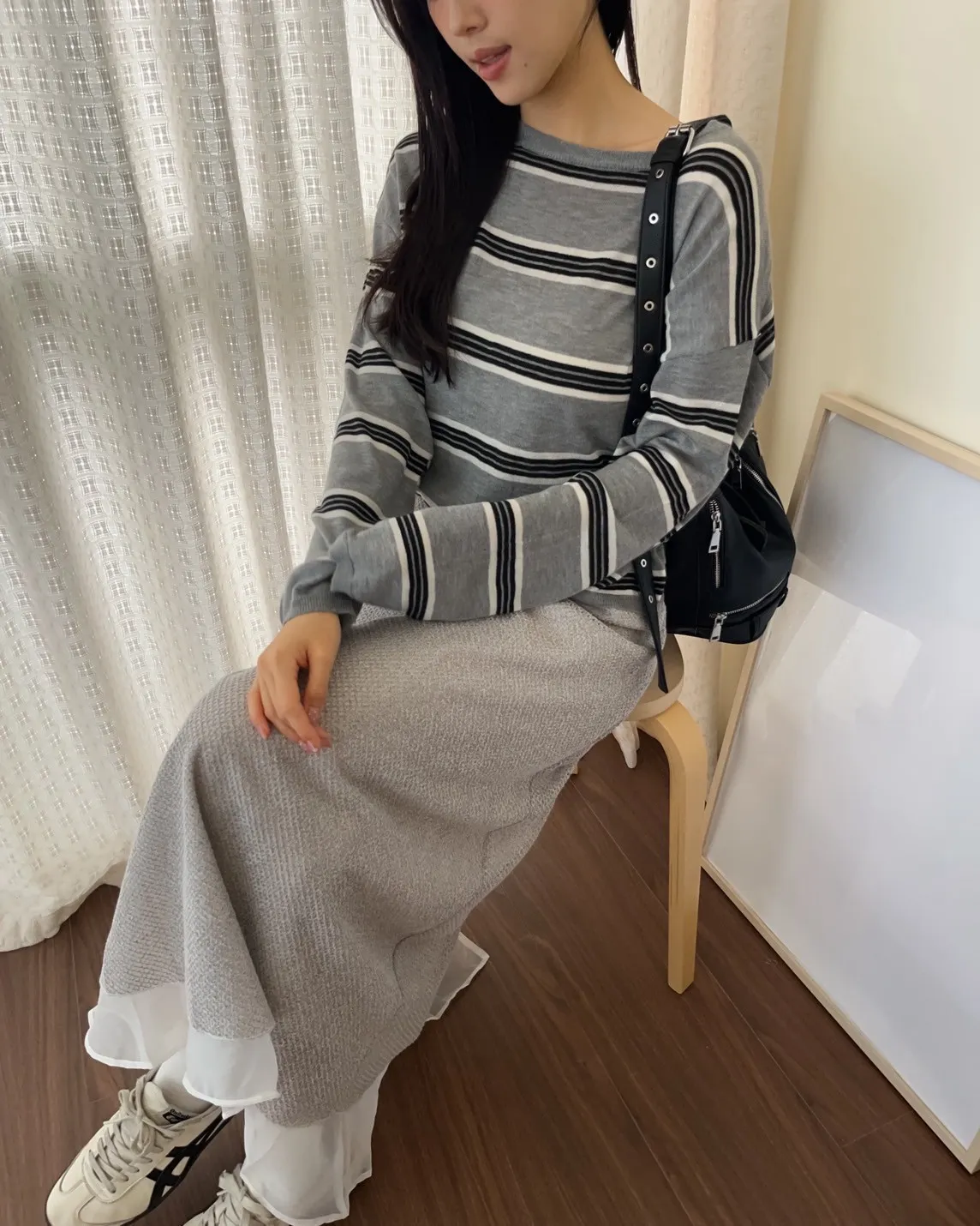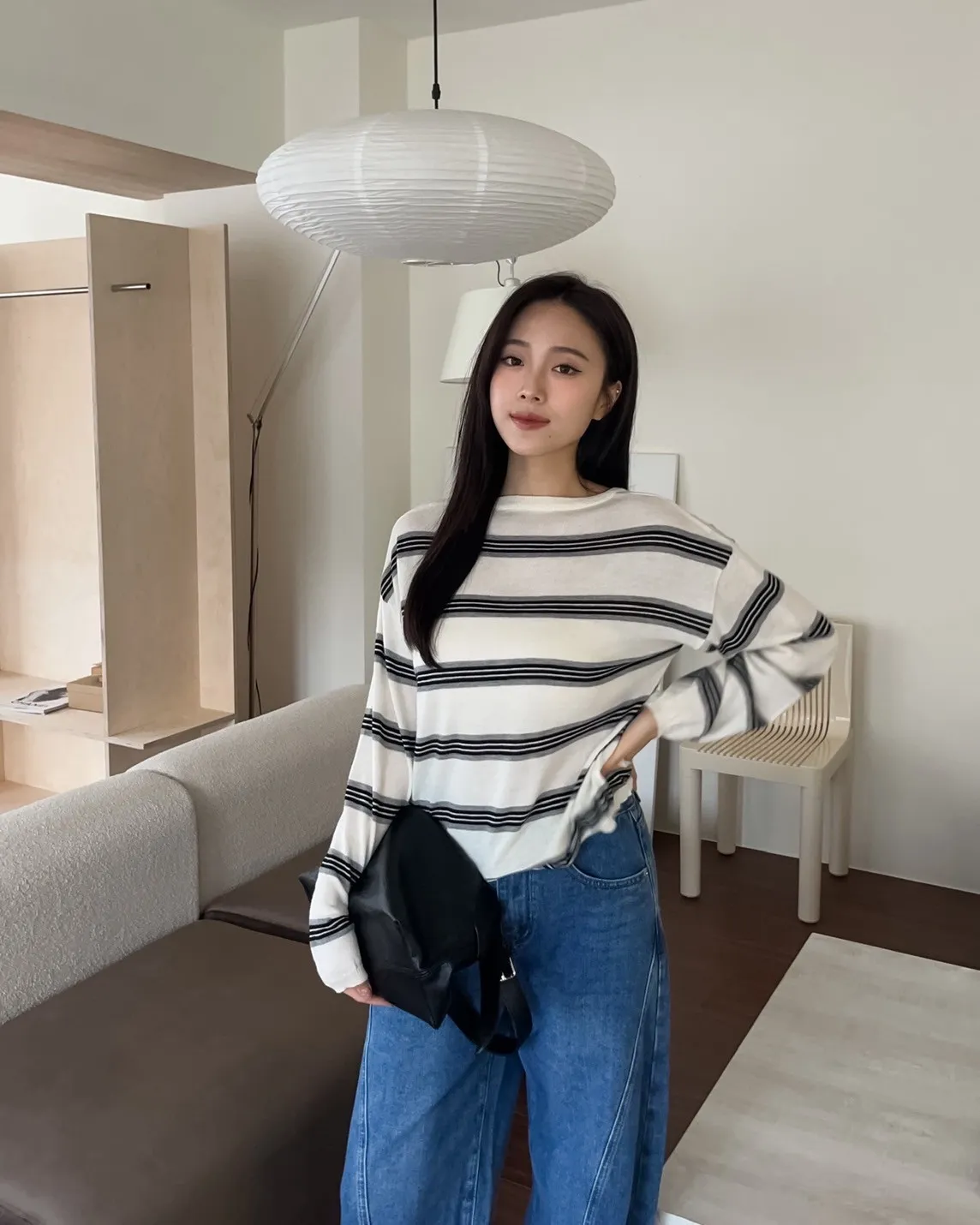 T0065綿綿軟軟橫條薄毛衣(米白/淺灰/深灰)