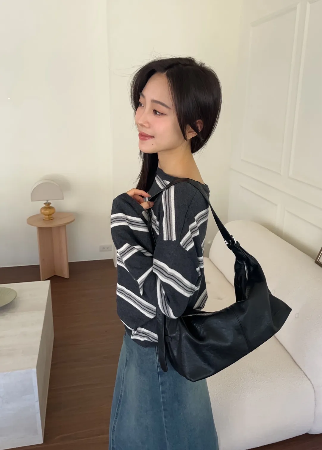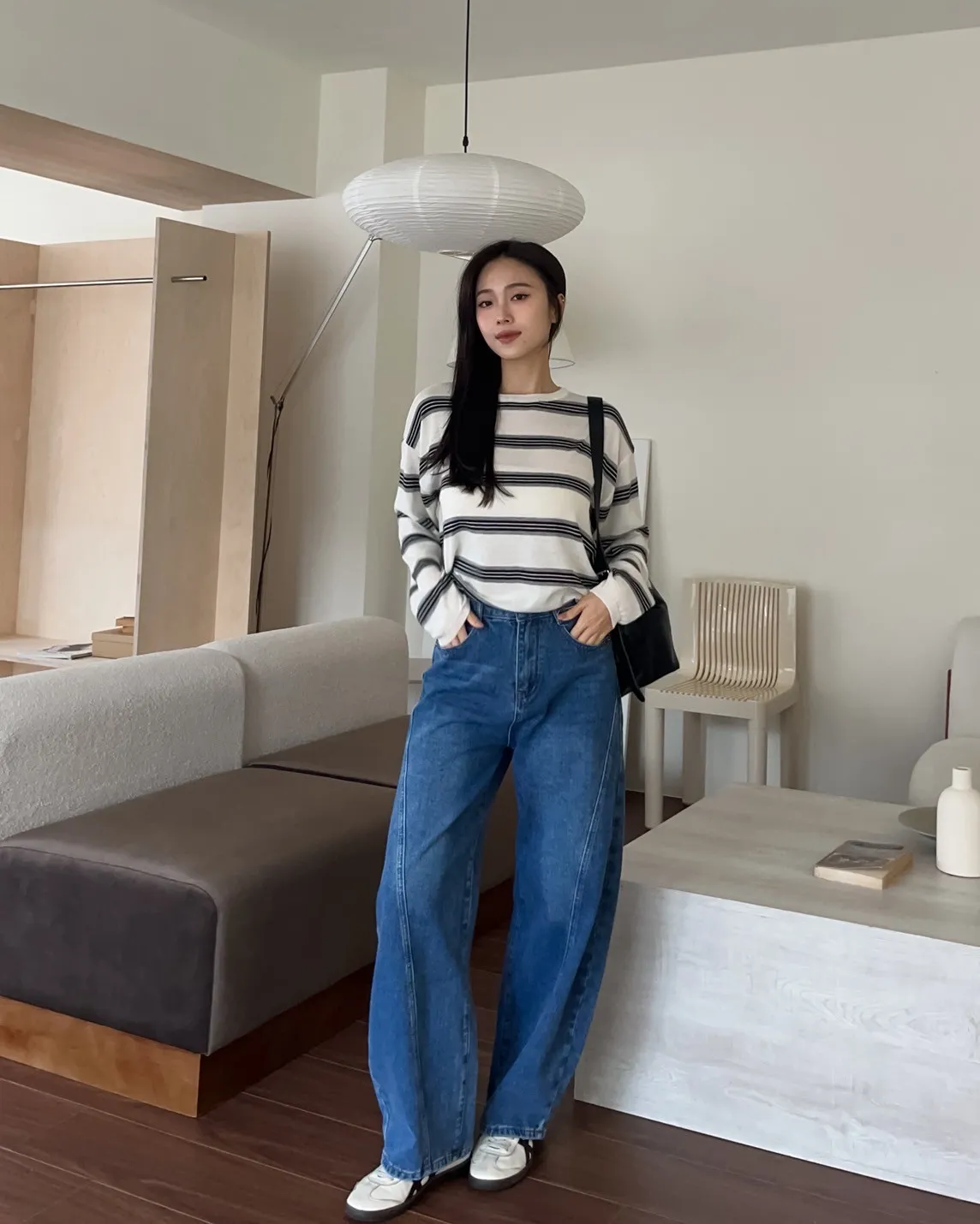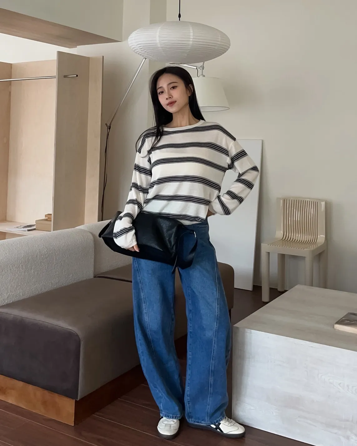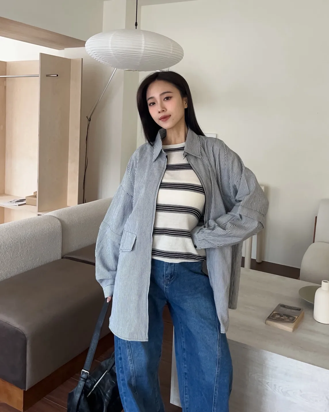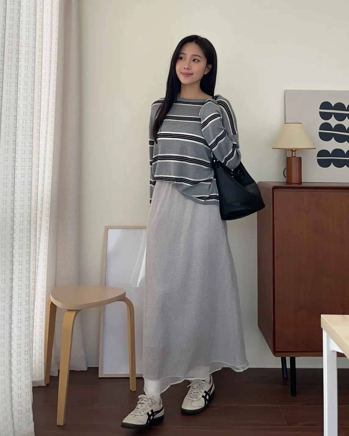 T0065綿綿軟軟橫條薄毛衣(米白/淺灰/深灰)