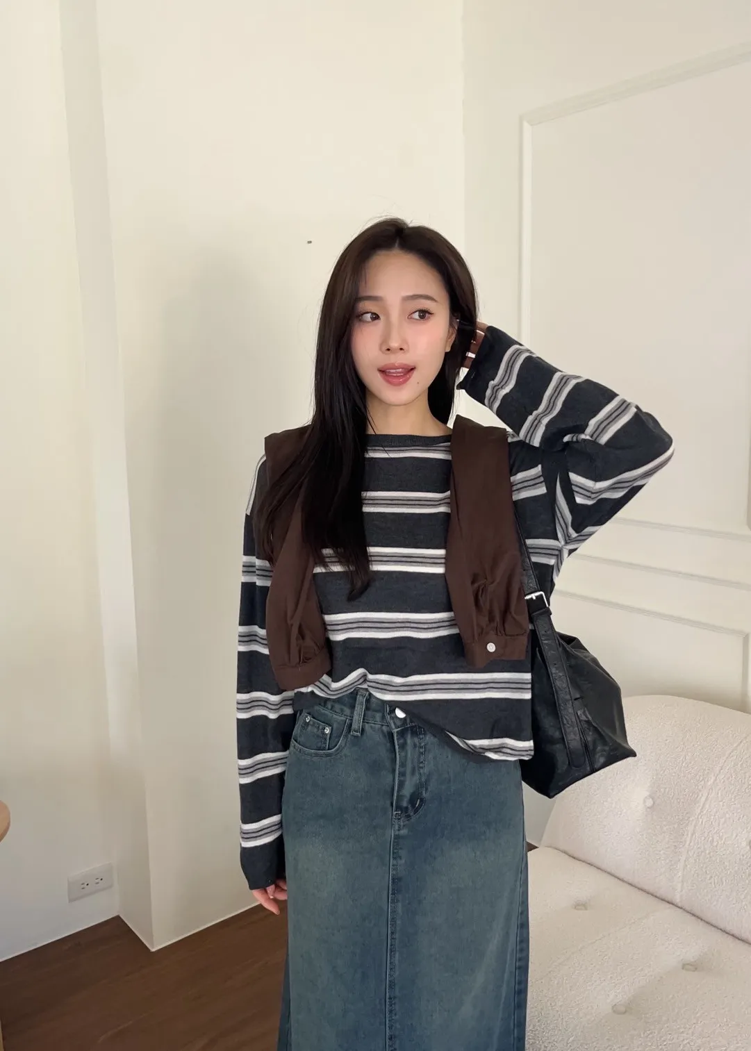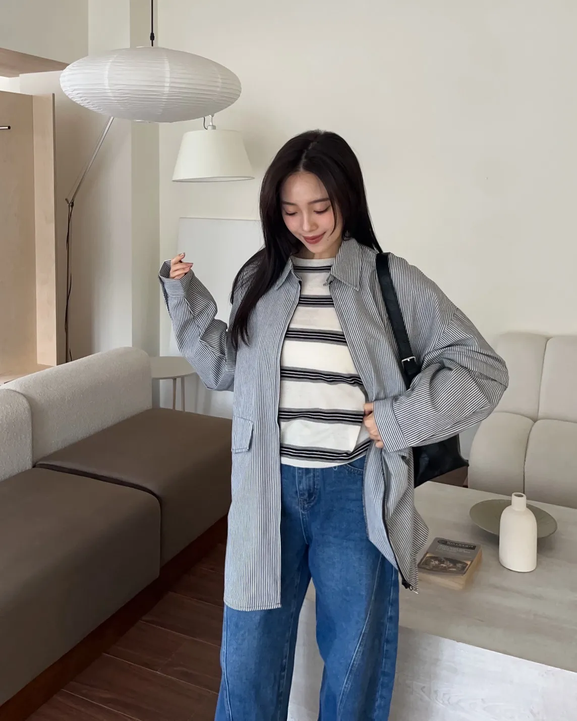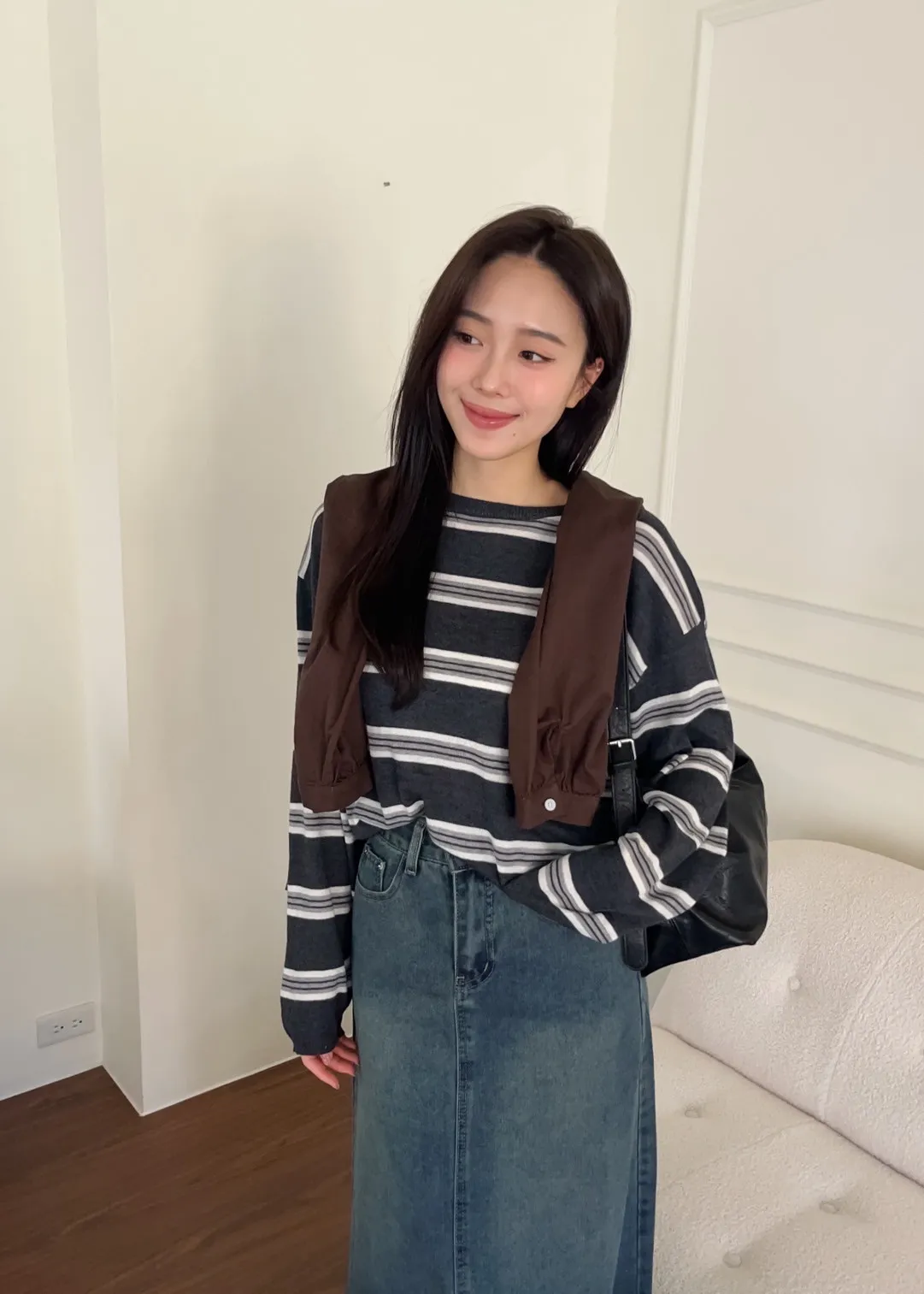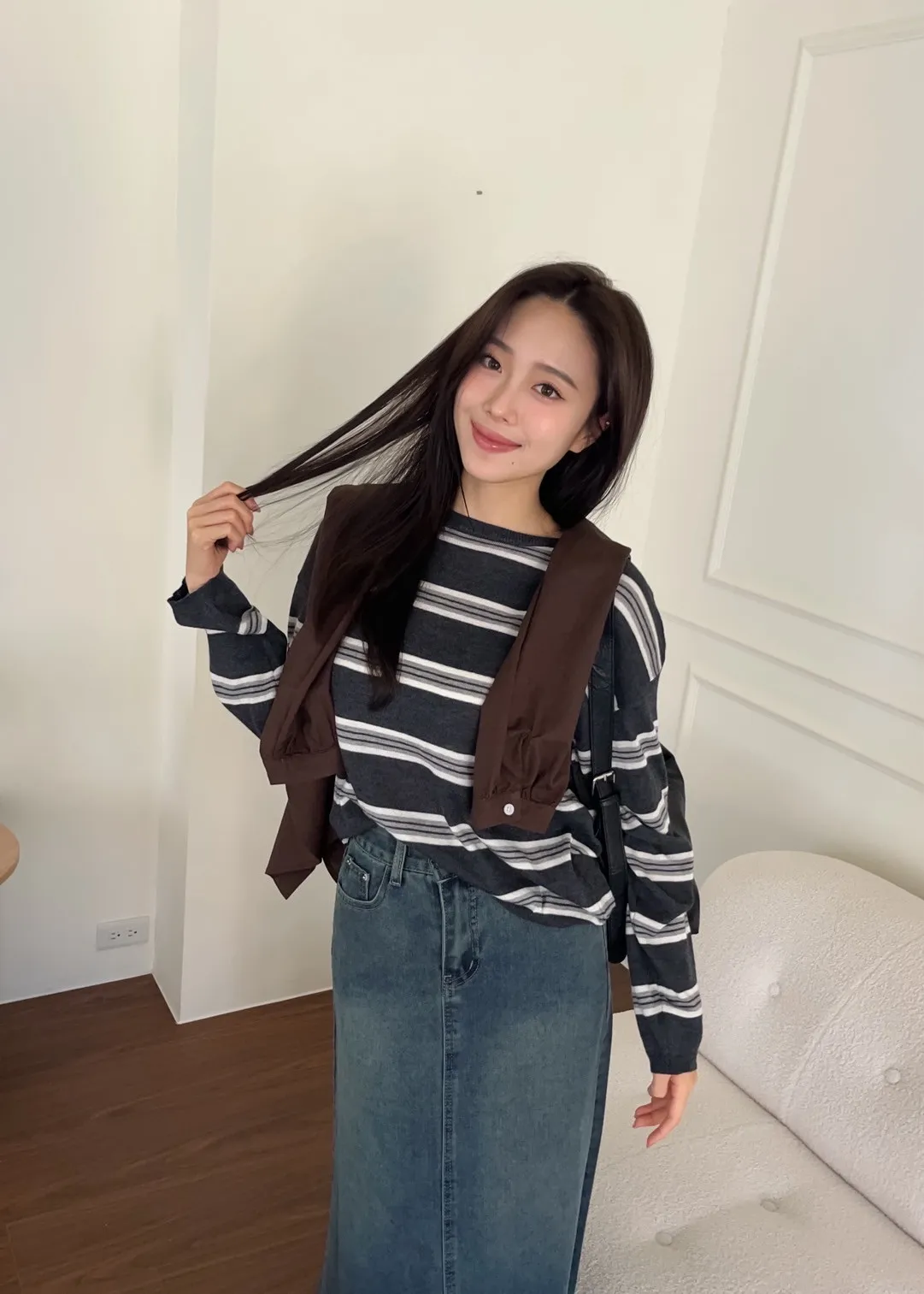 T0065綿綿軟軟橫條薄毛衣(米白/淺灰/深灰)