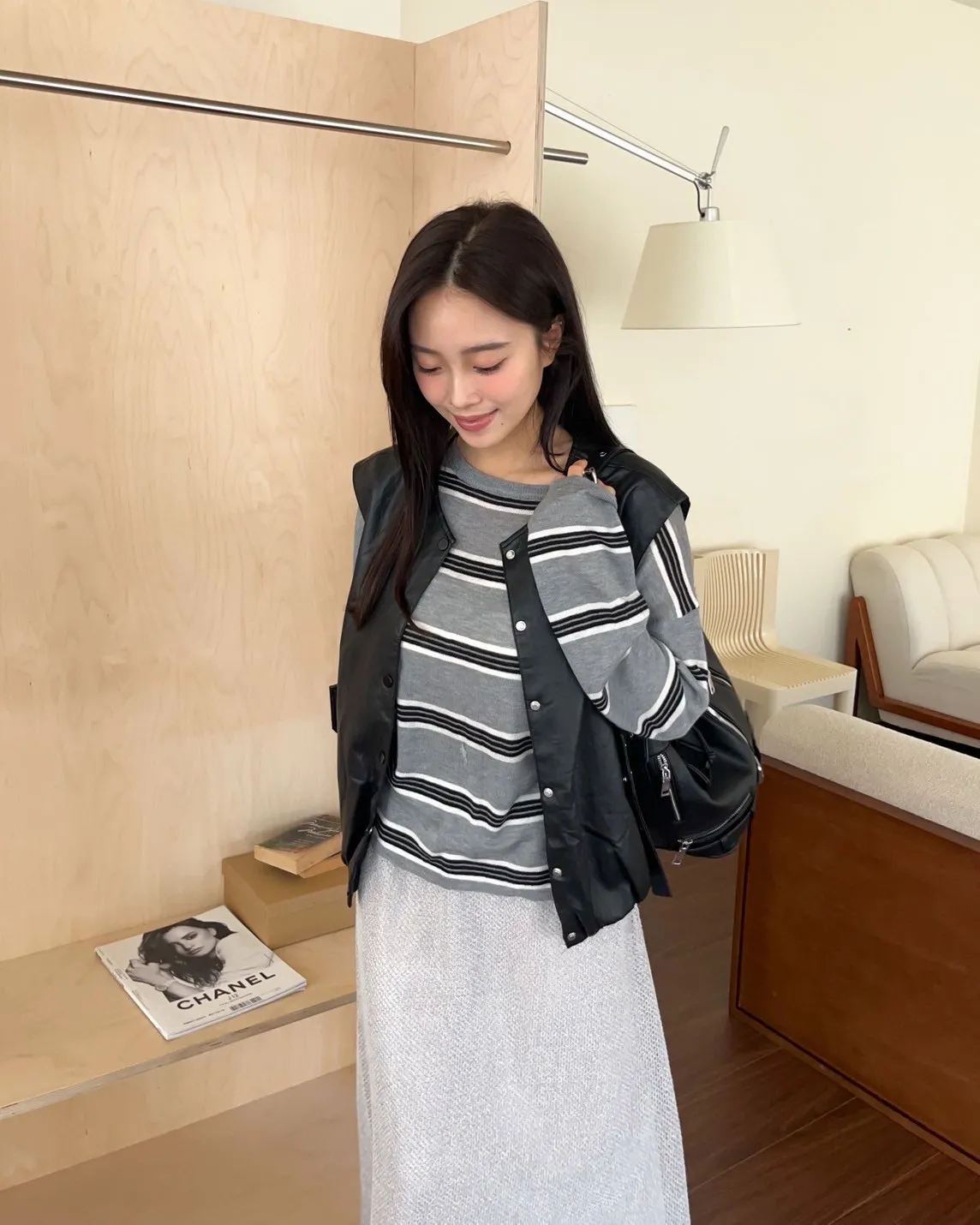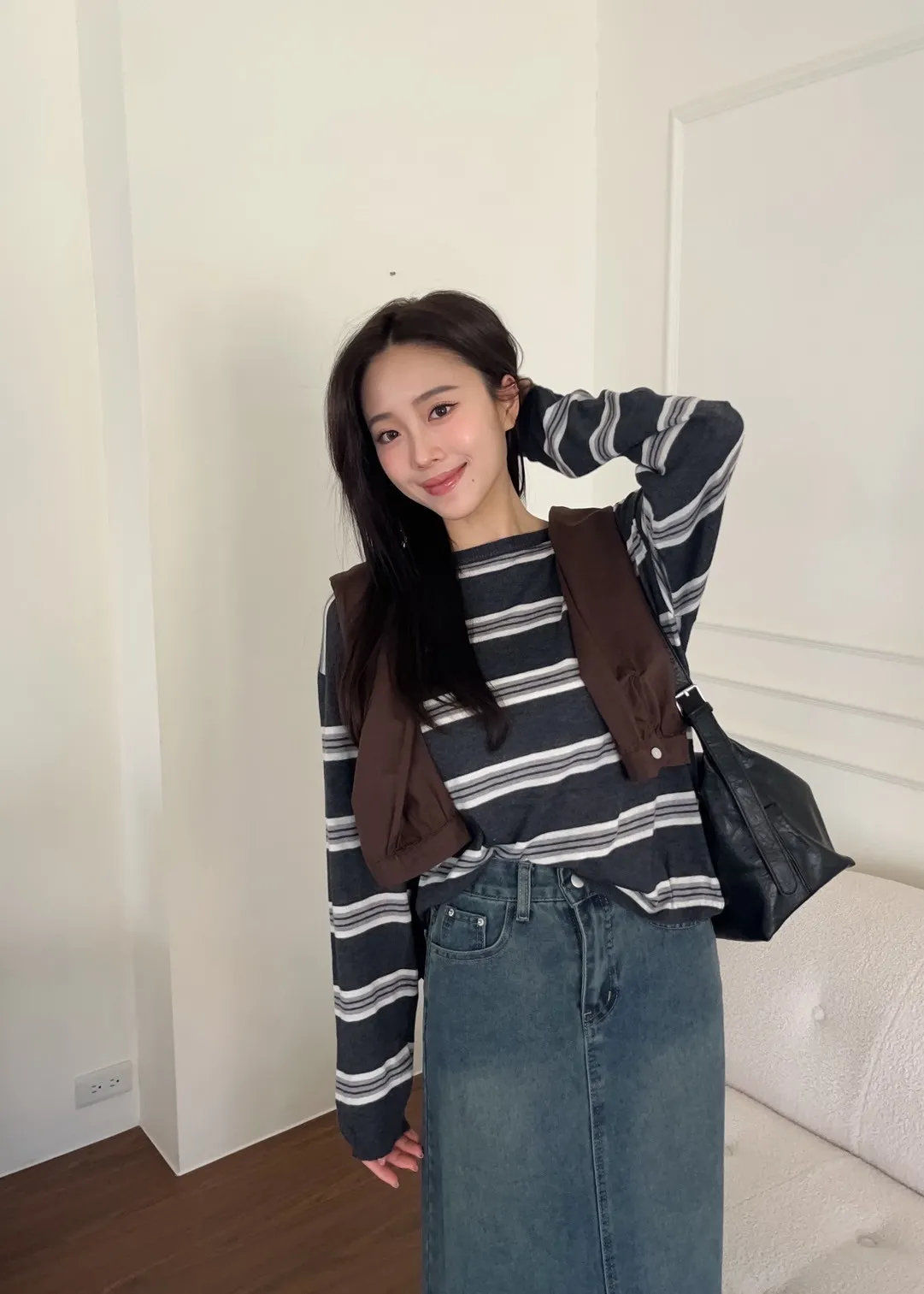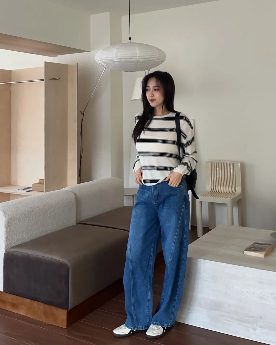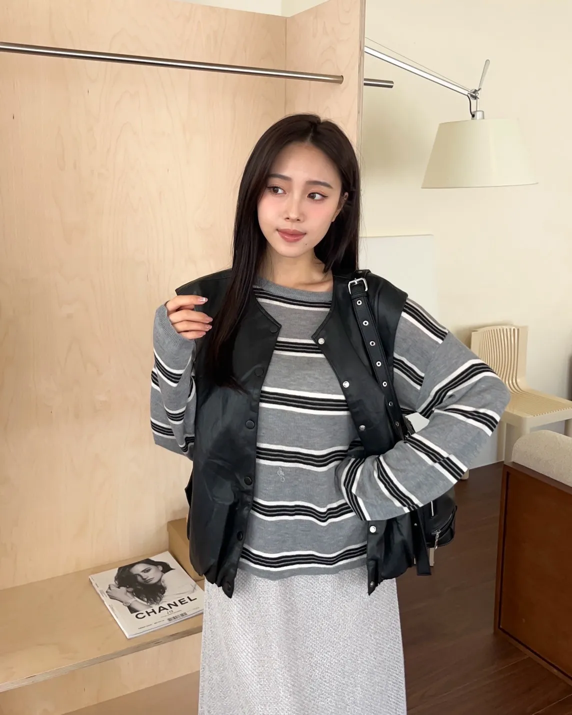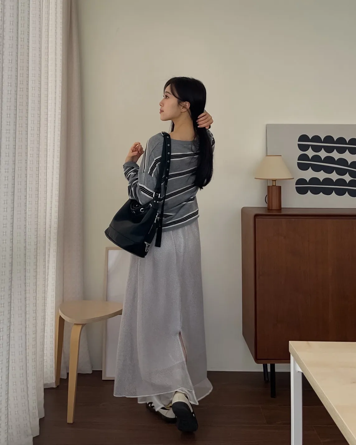 T0065綿綿軟軟橫條薄毛衣(米白/淺灰/深灰)