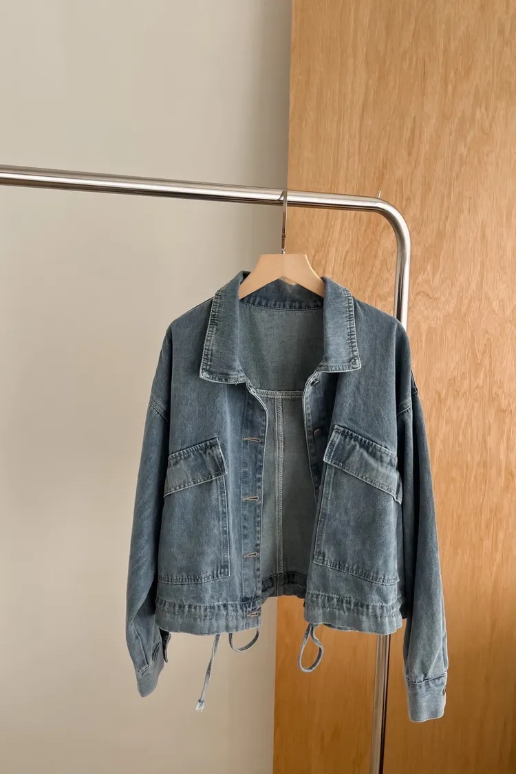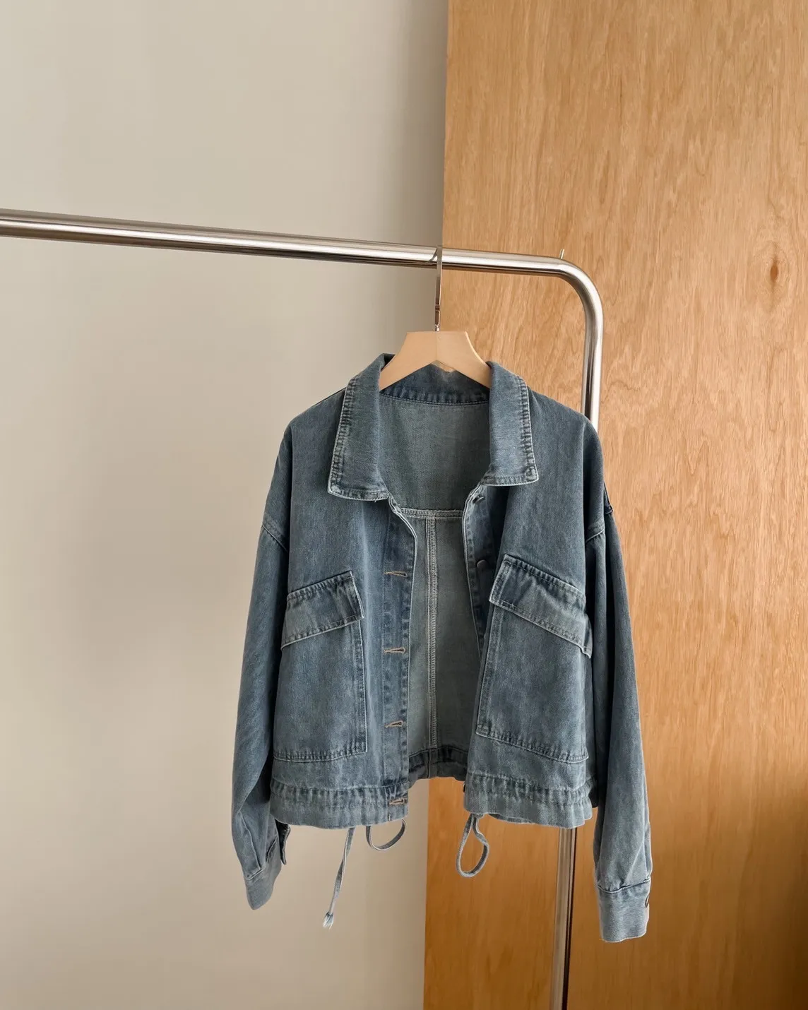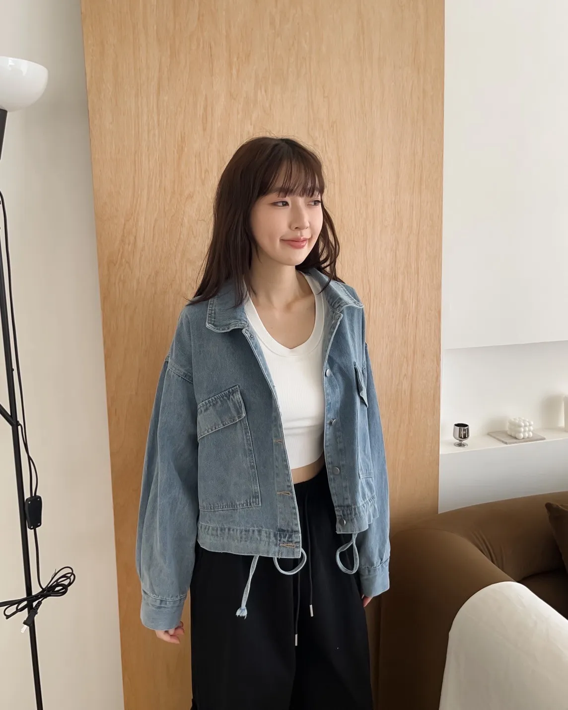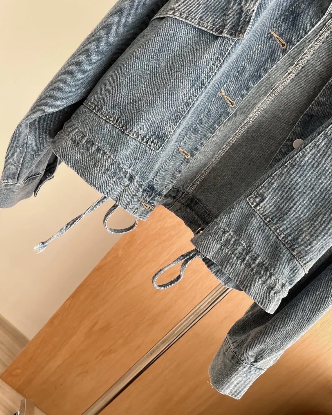 下擺抽繩可以縮 中短版 兩邊翻蓋口袋 布料本身無彈性