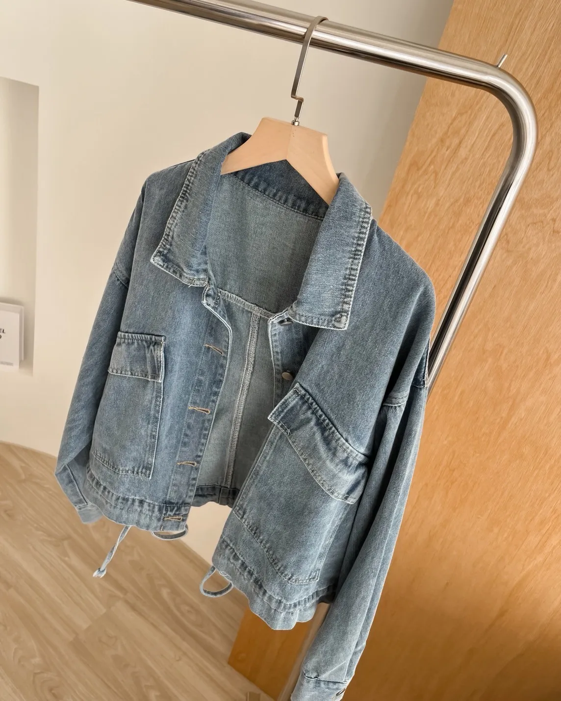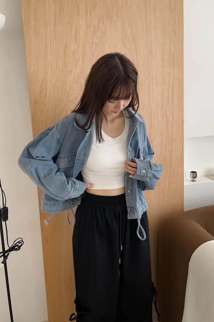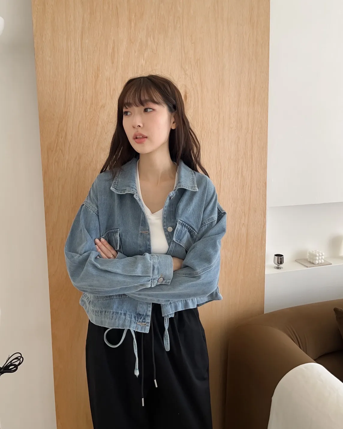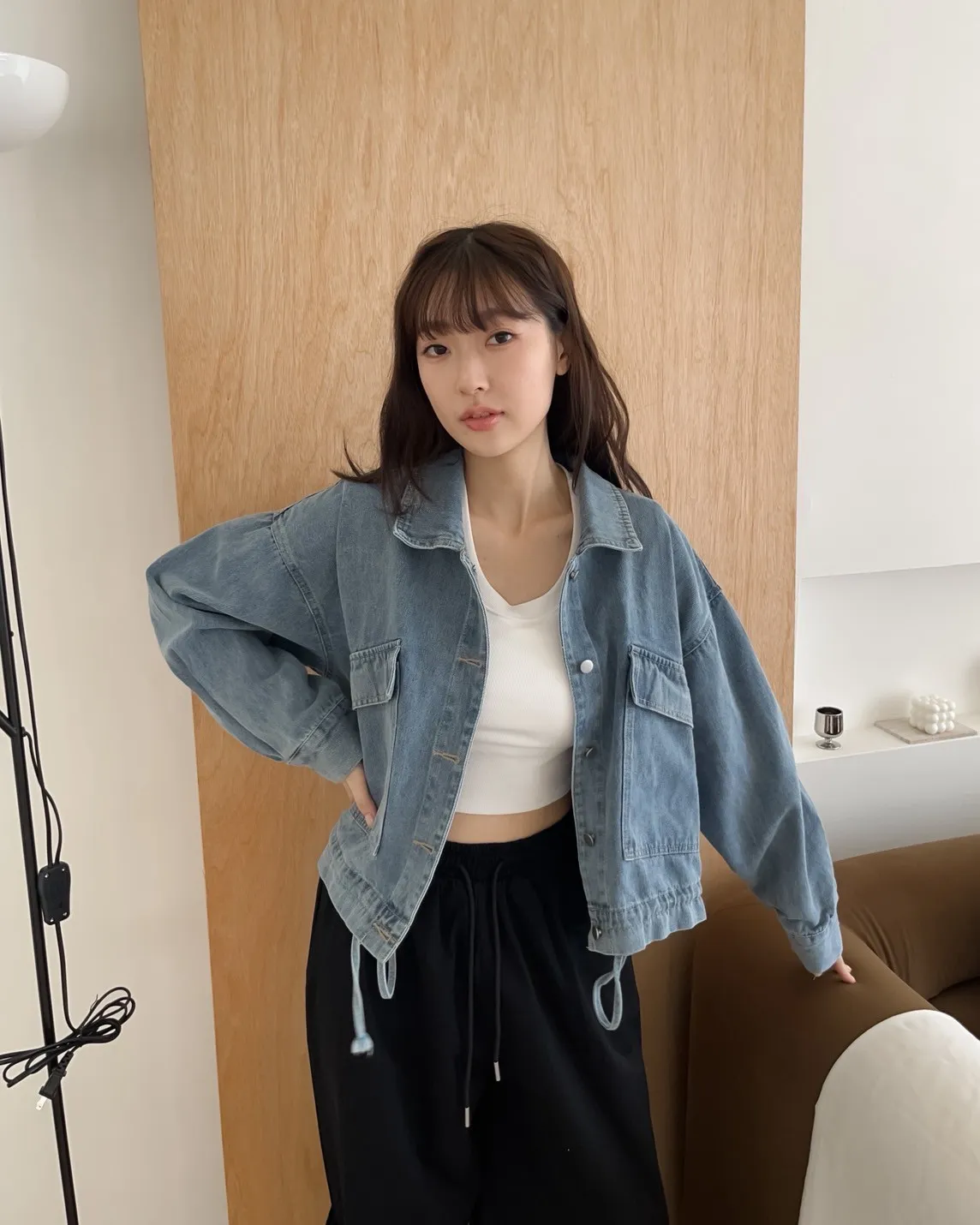 下擺抽繩可以縮 中短版 兩邊翻蓋口袋 布料本身無彈性