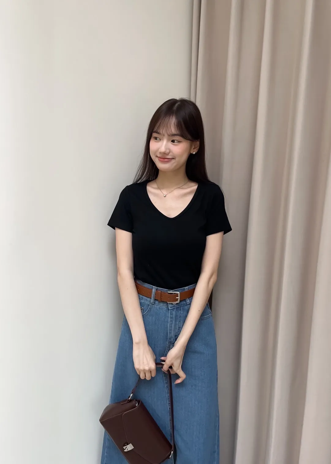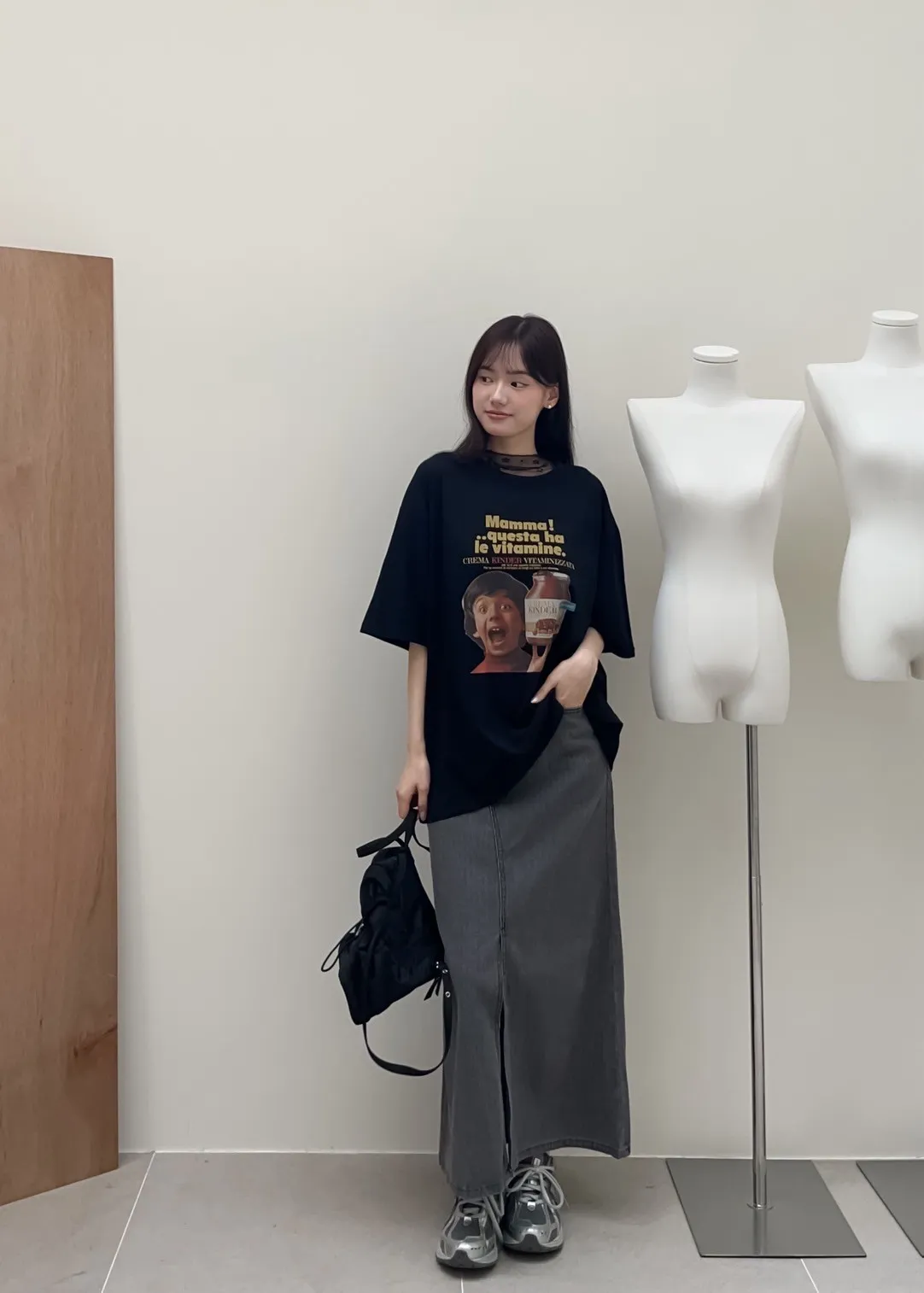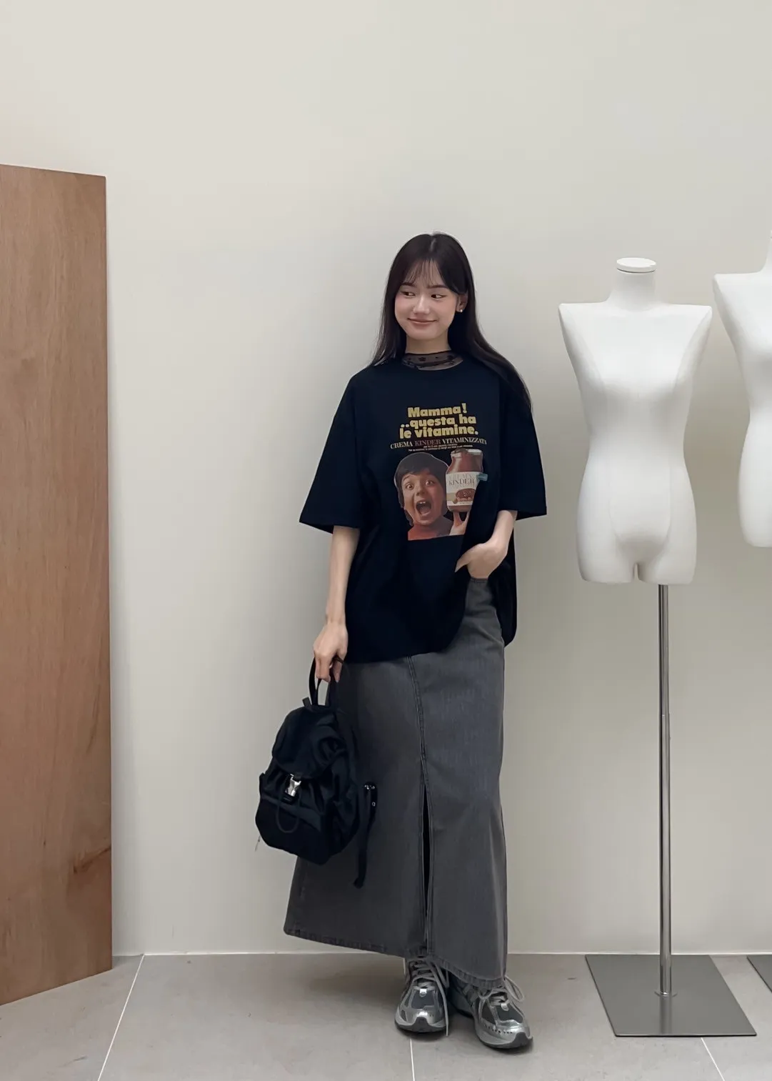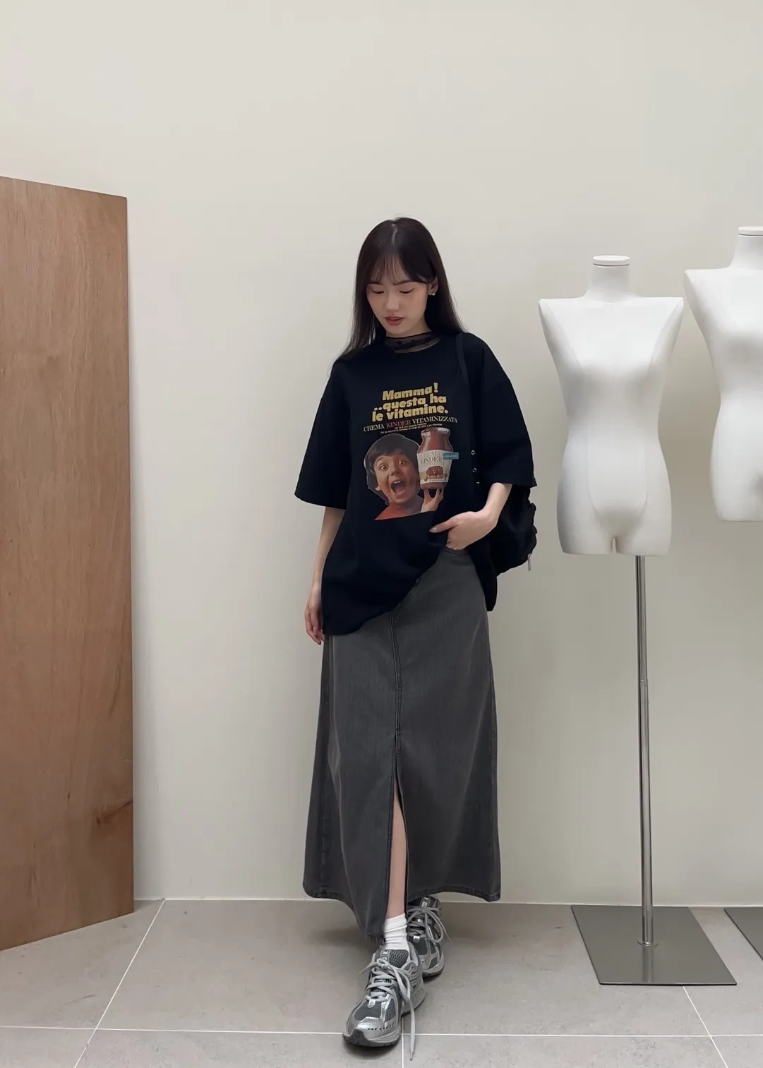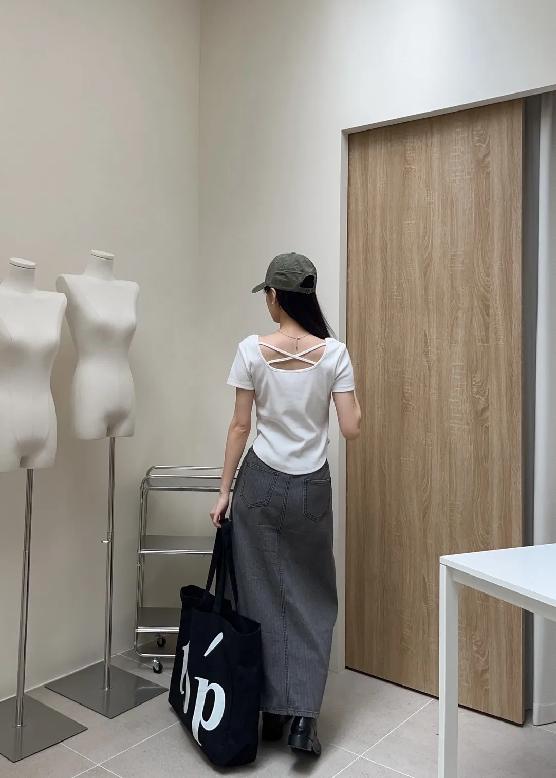 R0074[S-XL]立體直紋前開岔牛仔長裙(藍/灰)(售完不補)