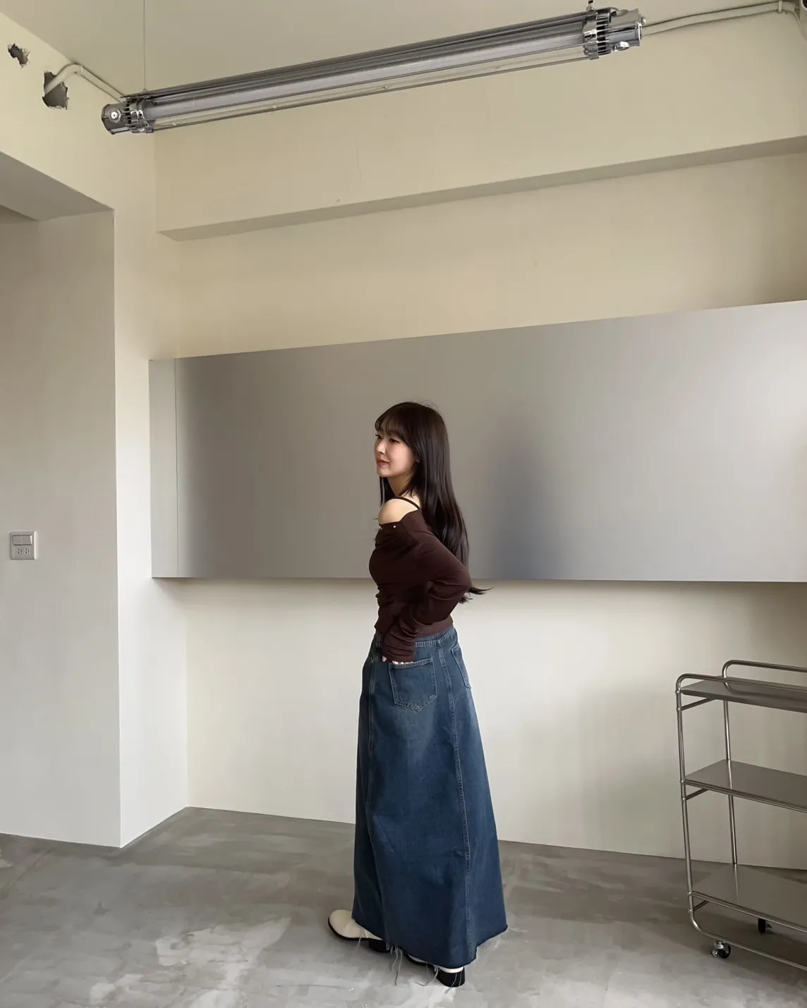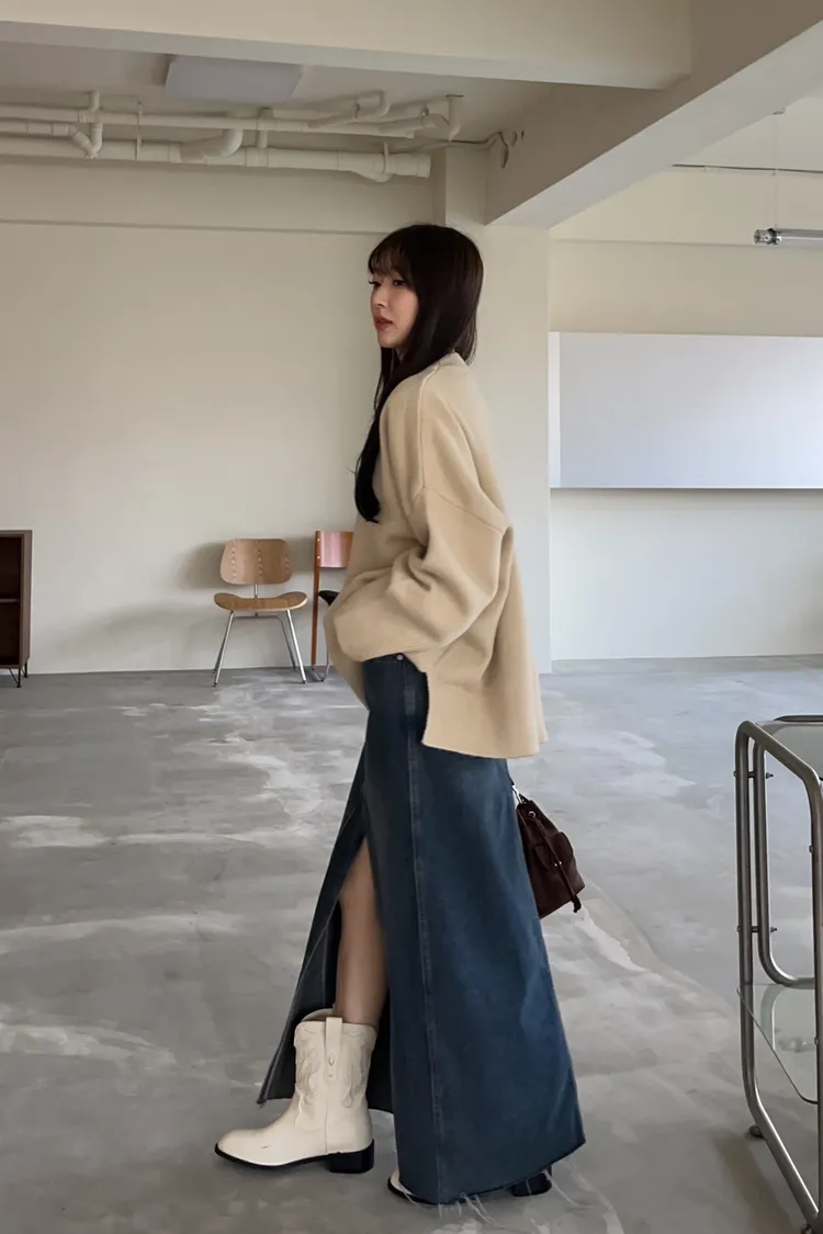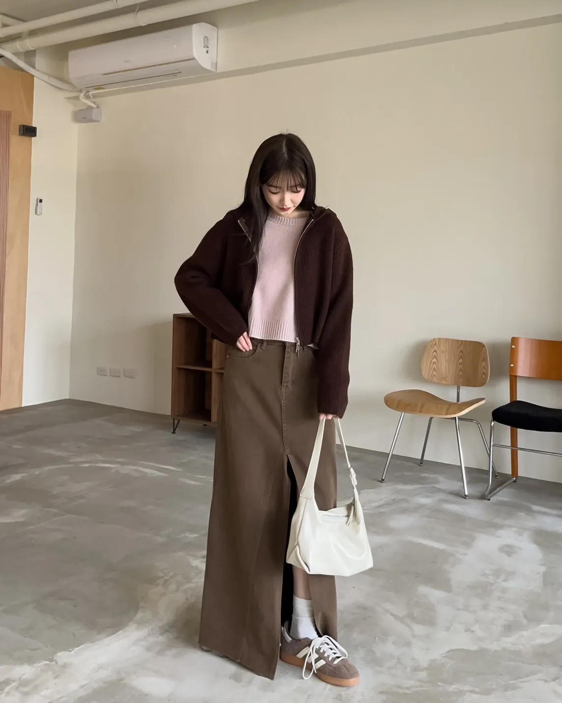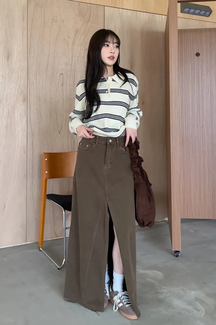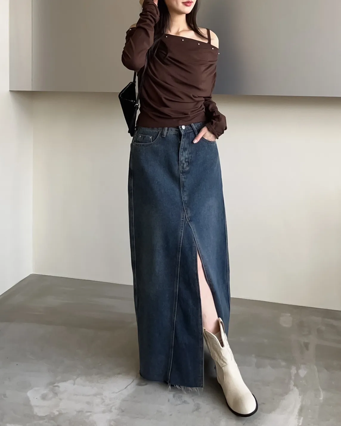 V0085回頭率up高衩抽鬚牛仔裙(咖啡/深藍)