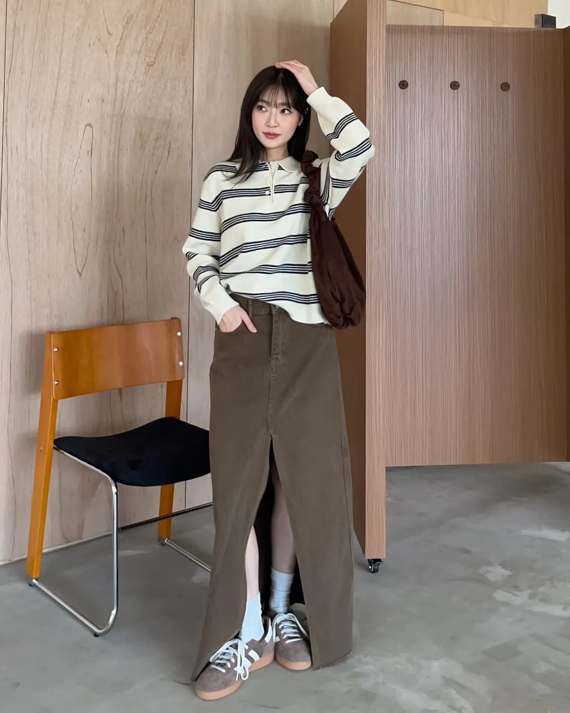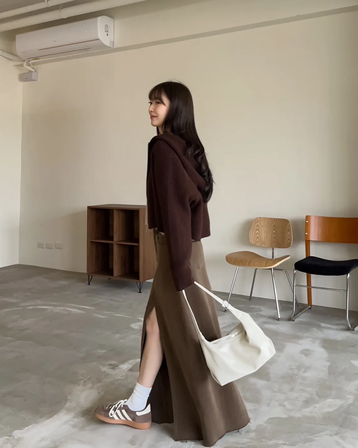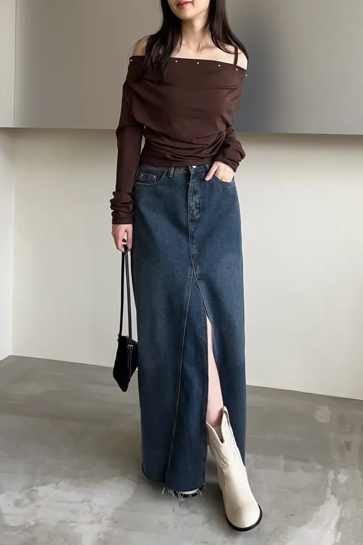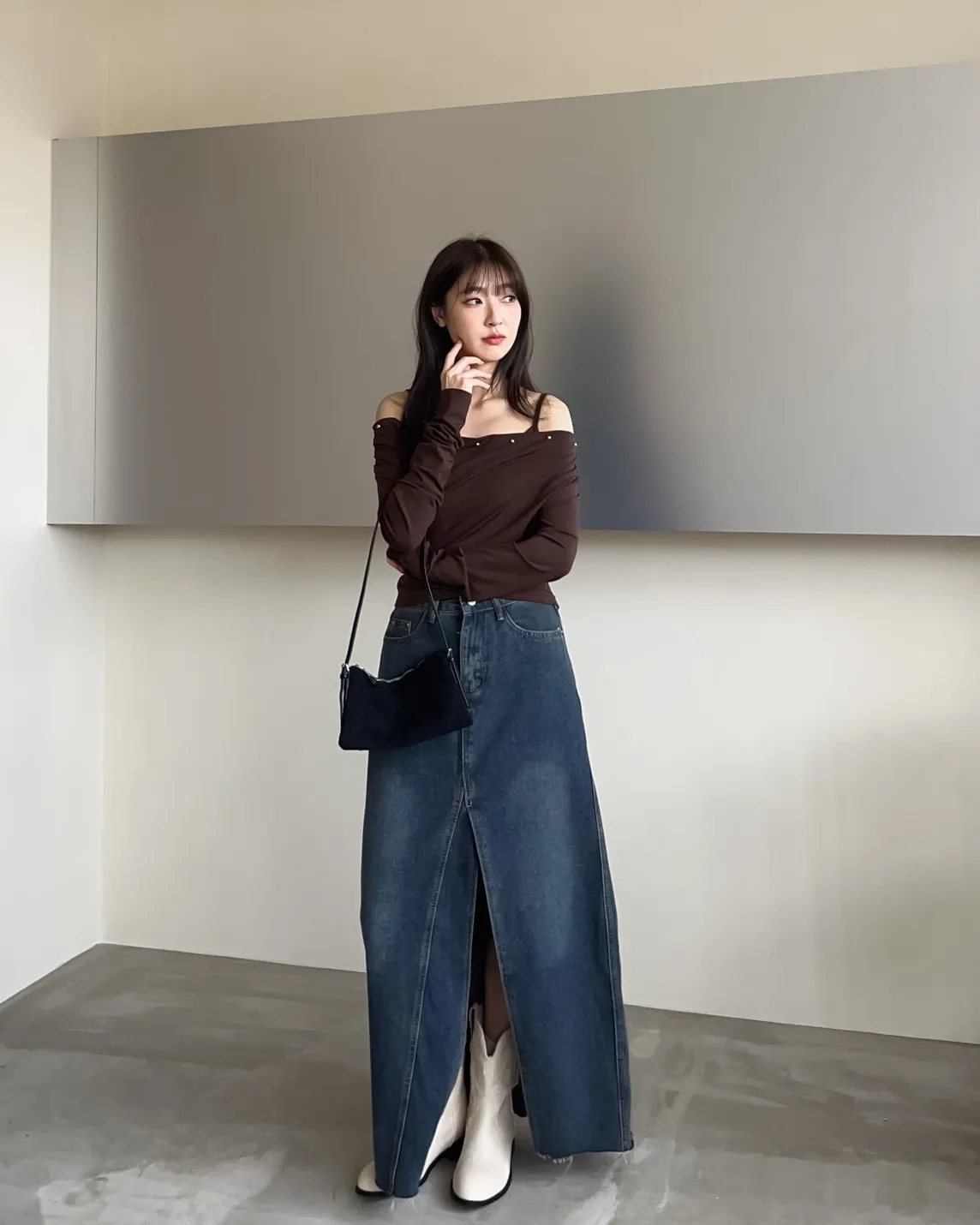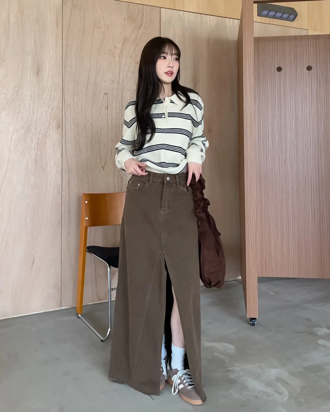 V0085回頭率up高衩抽鬚牛仔裙(咖啡/深藍)