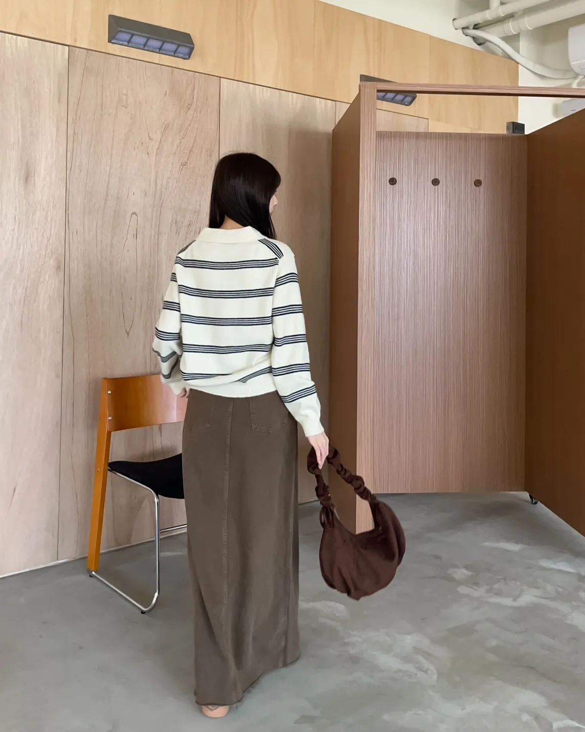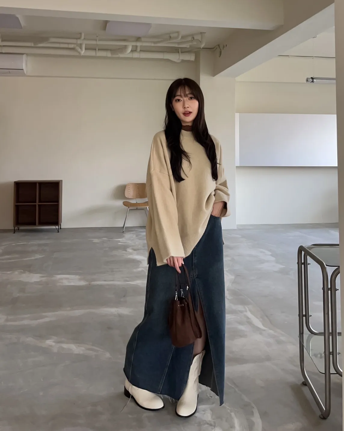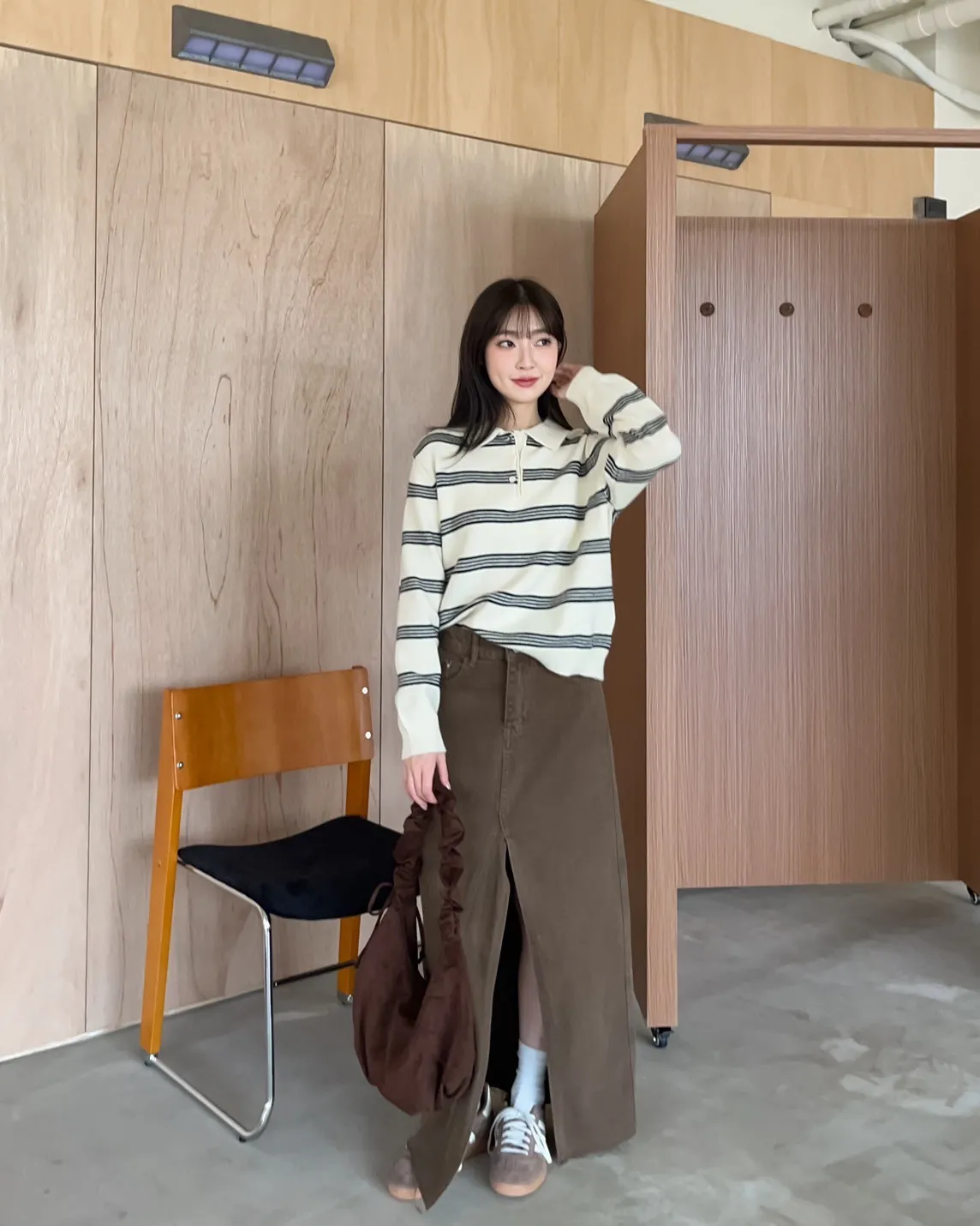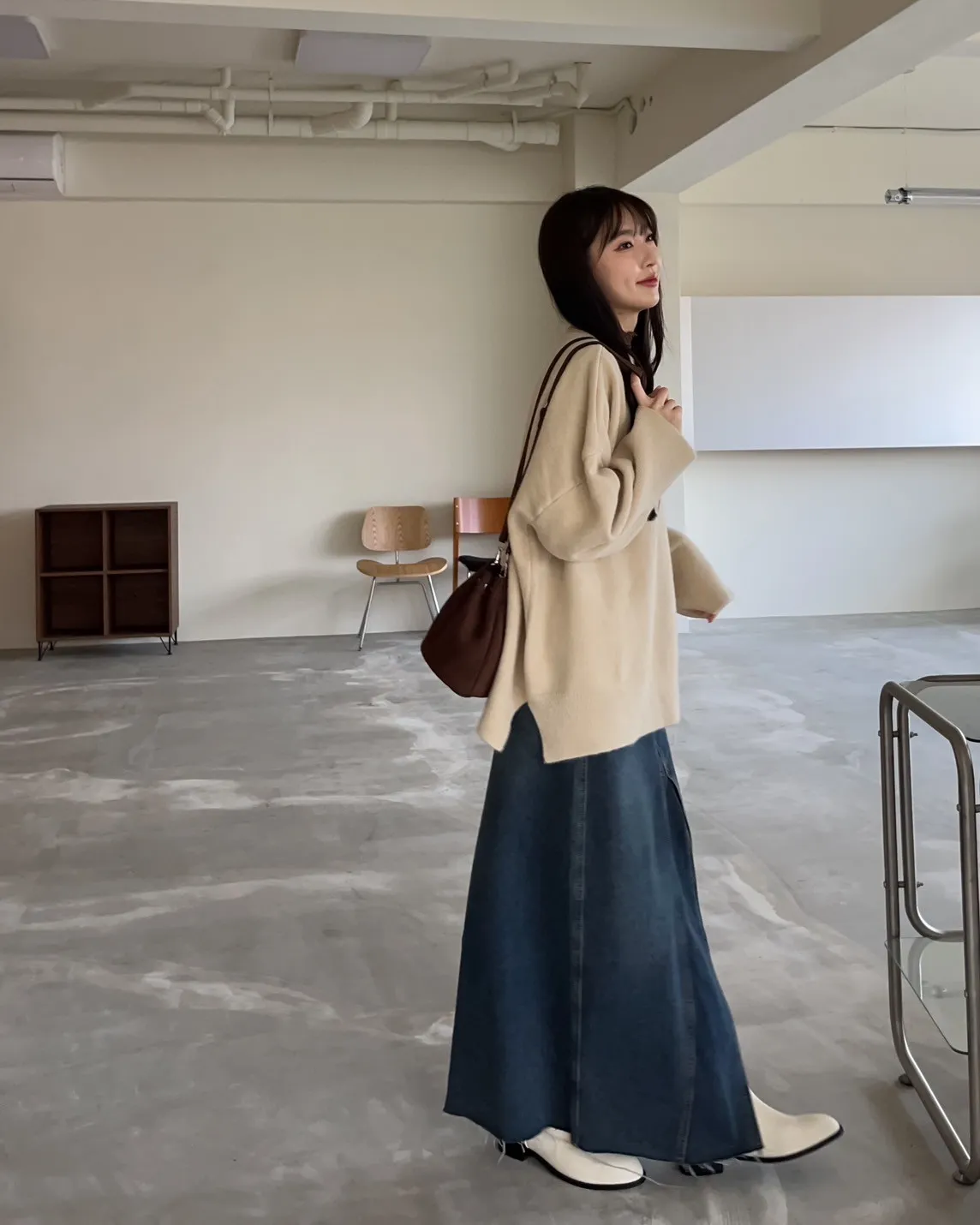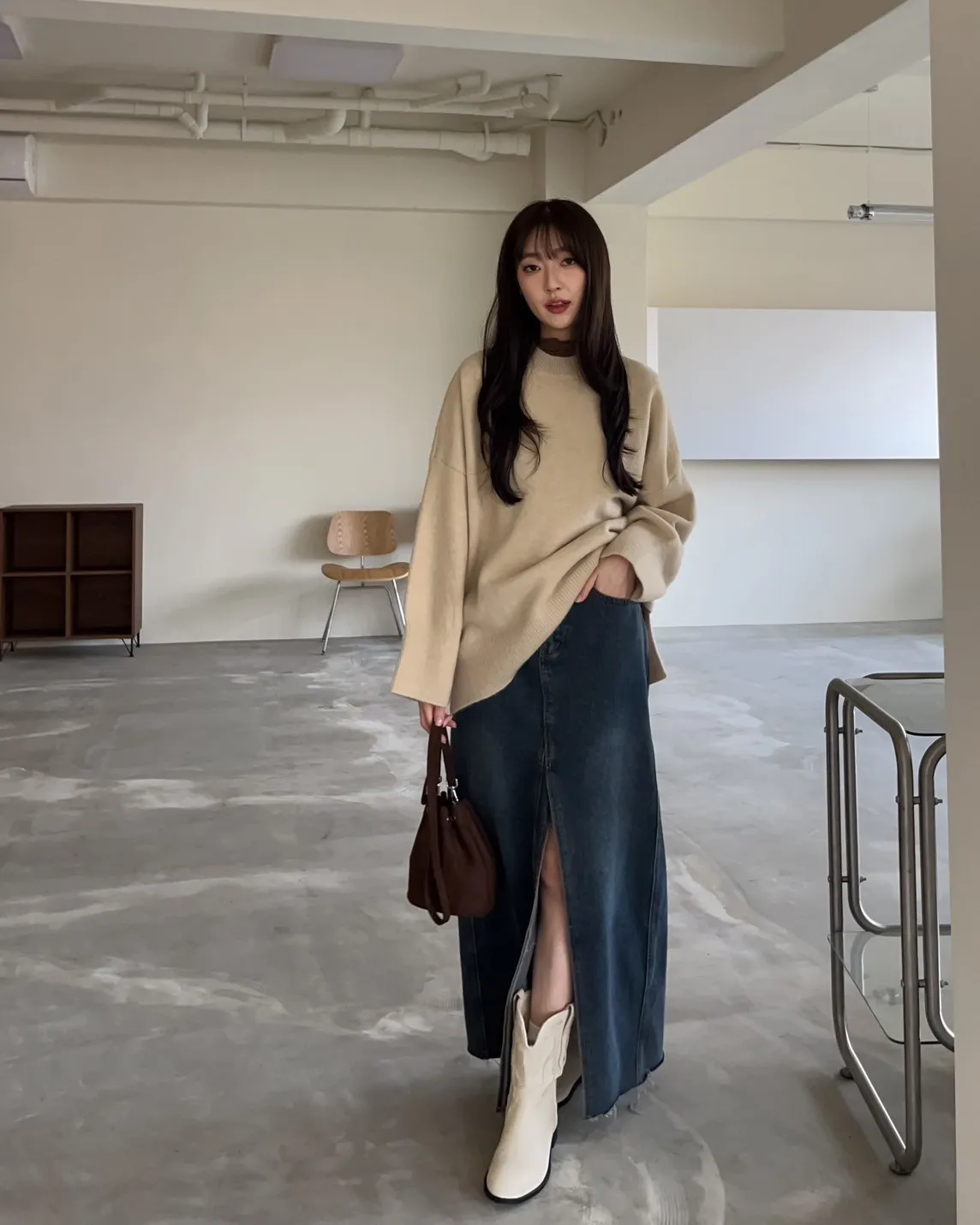 V0085回頭率up高衩抽鬚牛仔裙(咖啡/深藍)