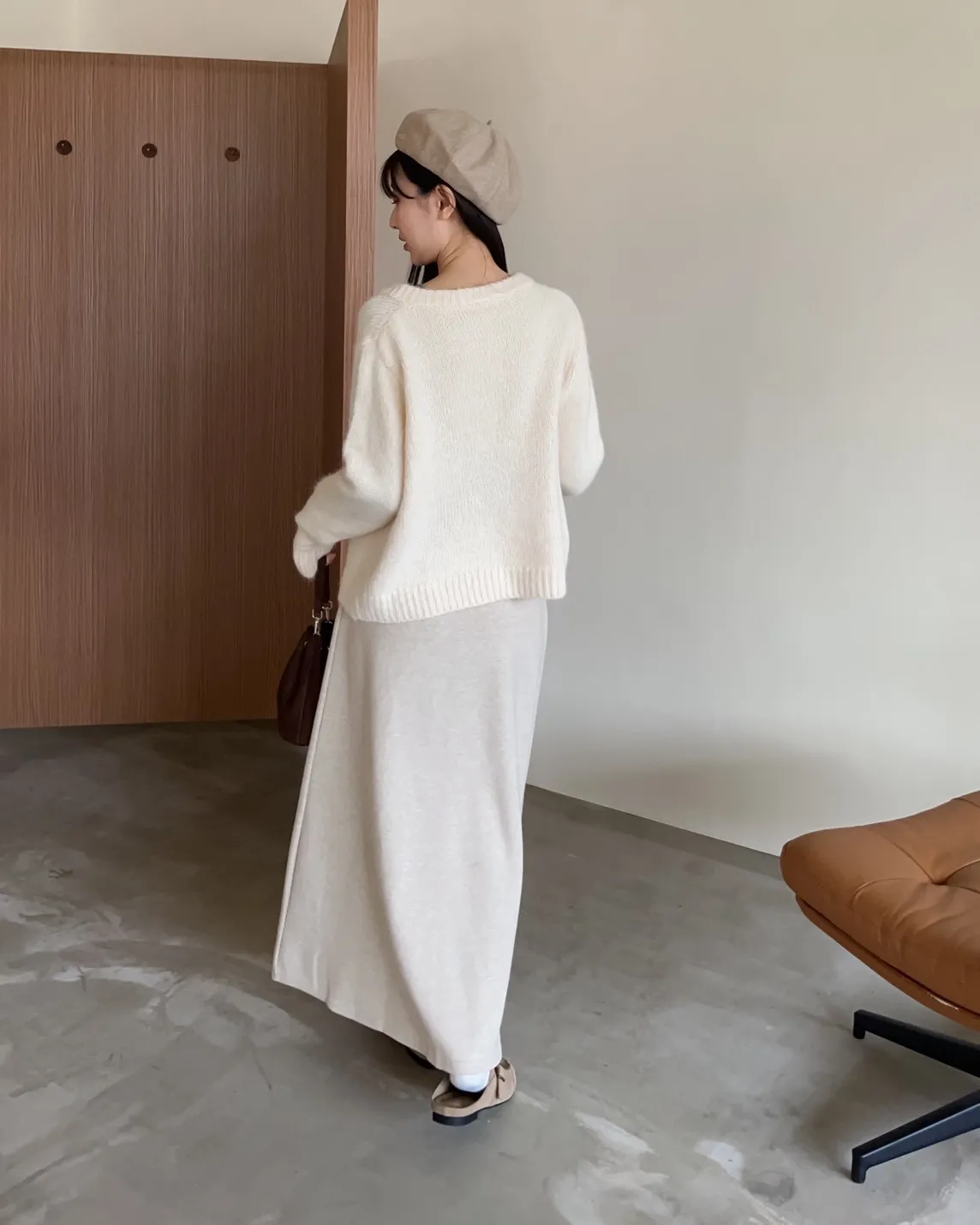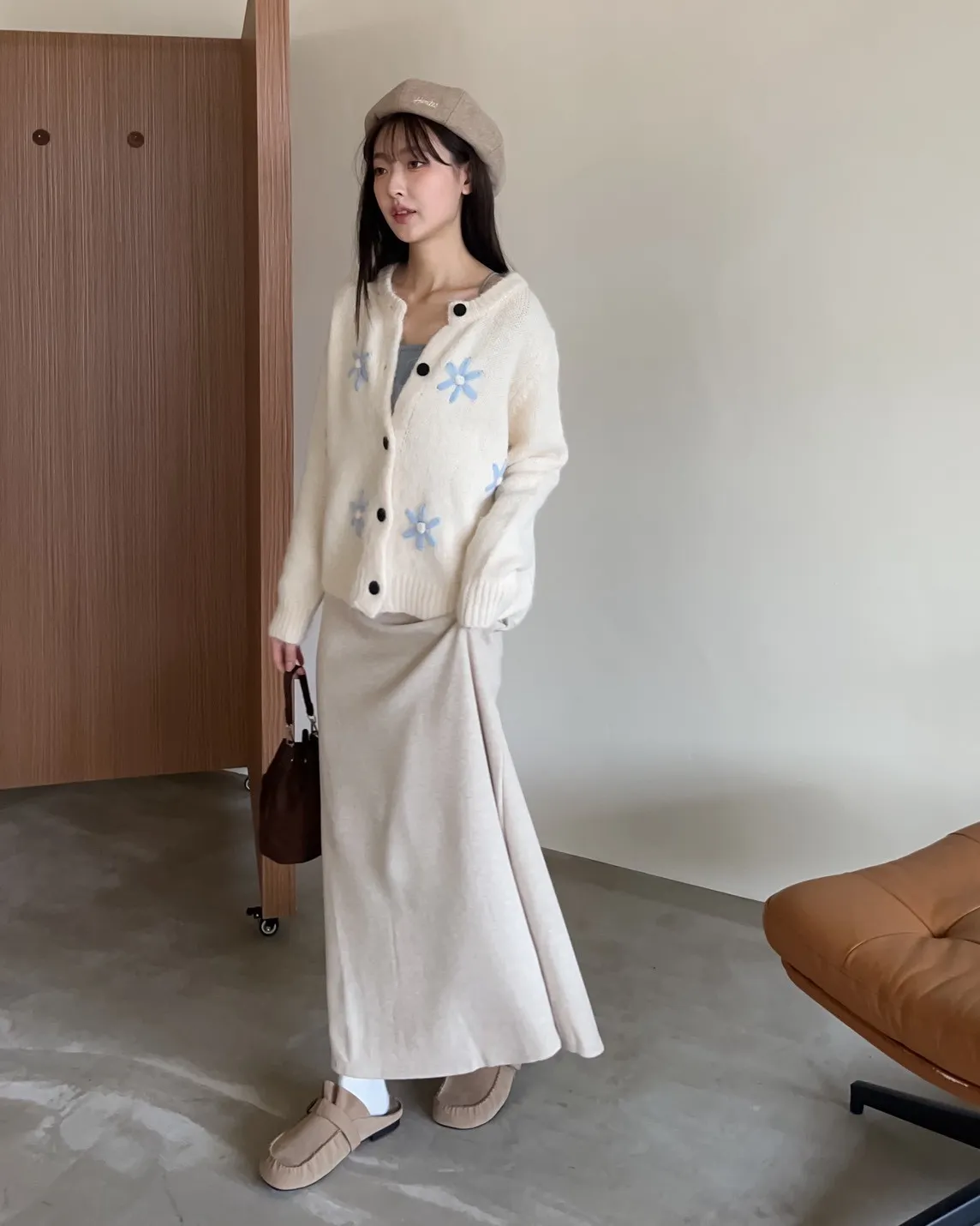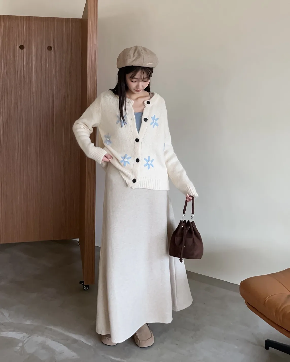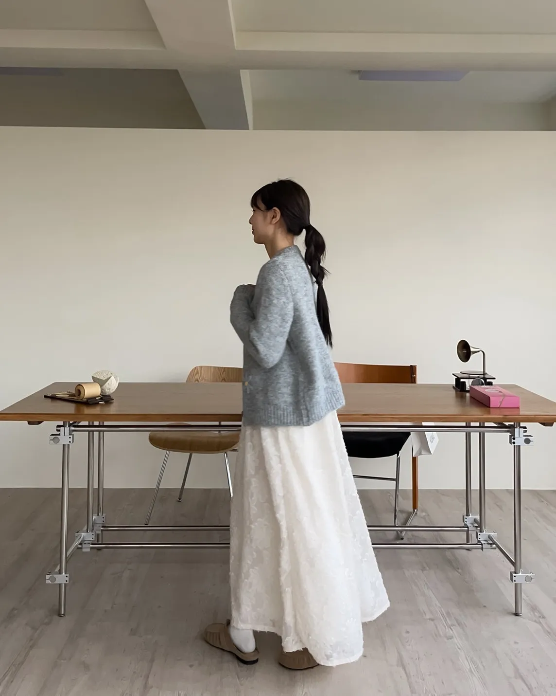 W0016毛線小藍花鈕扣毛衣外套(米/灰)