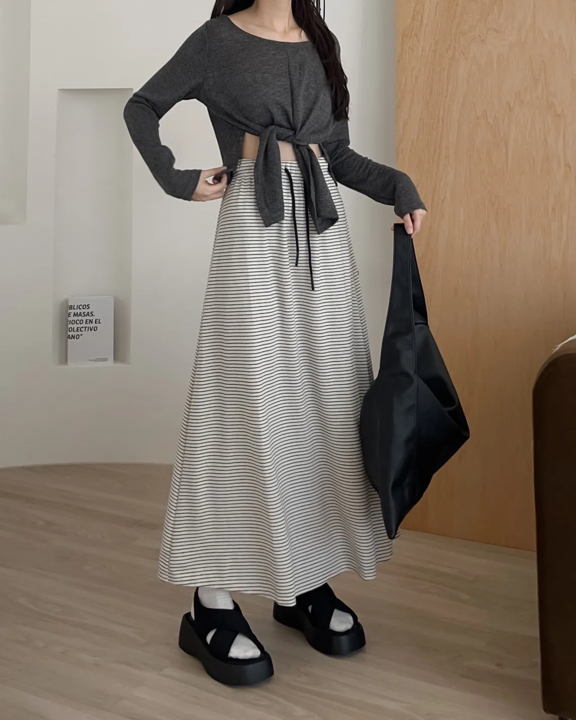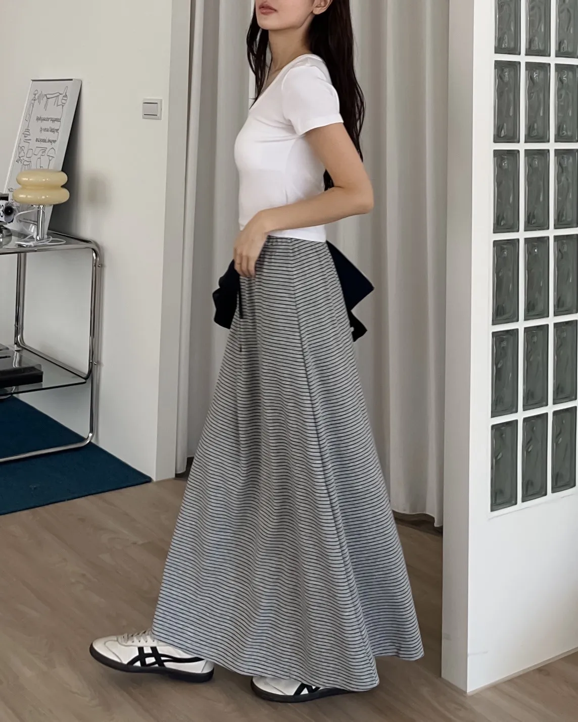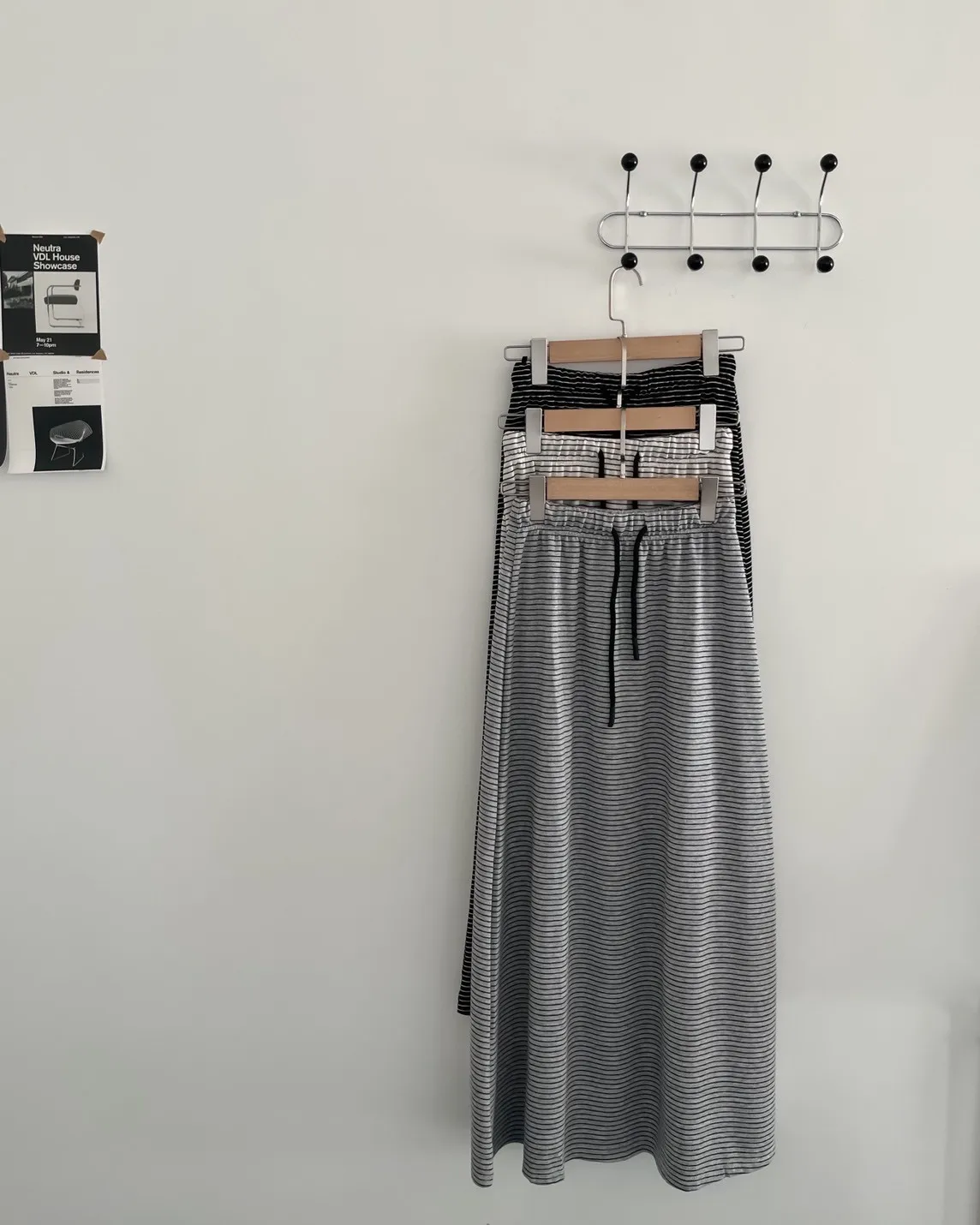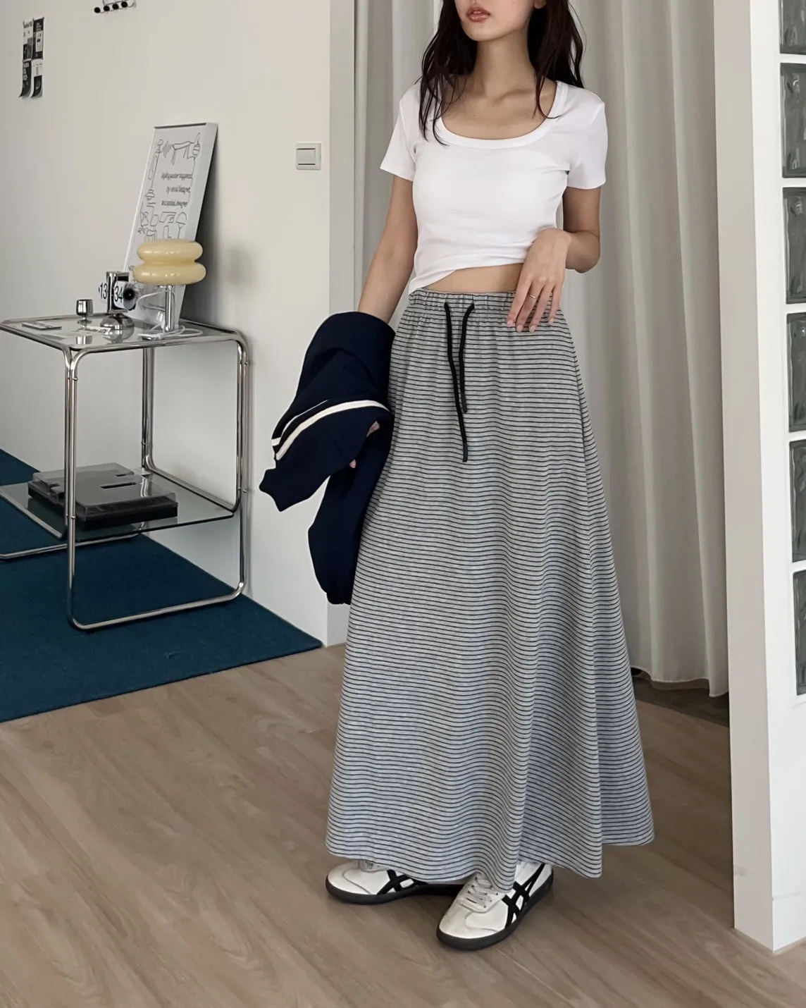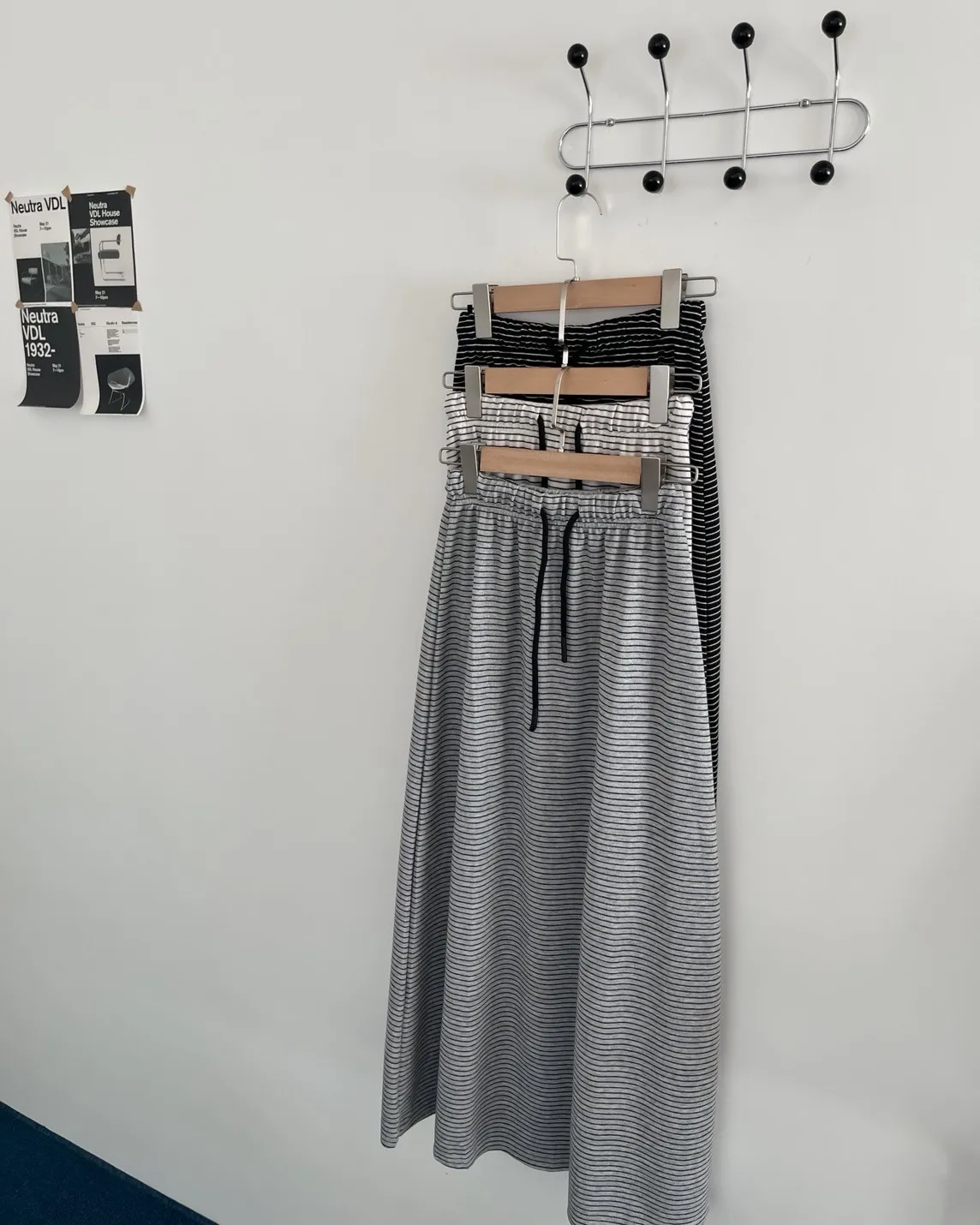 U0005想睡午覺條紋鬆緊A字裙(米白/灰/黑)(售完不補)