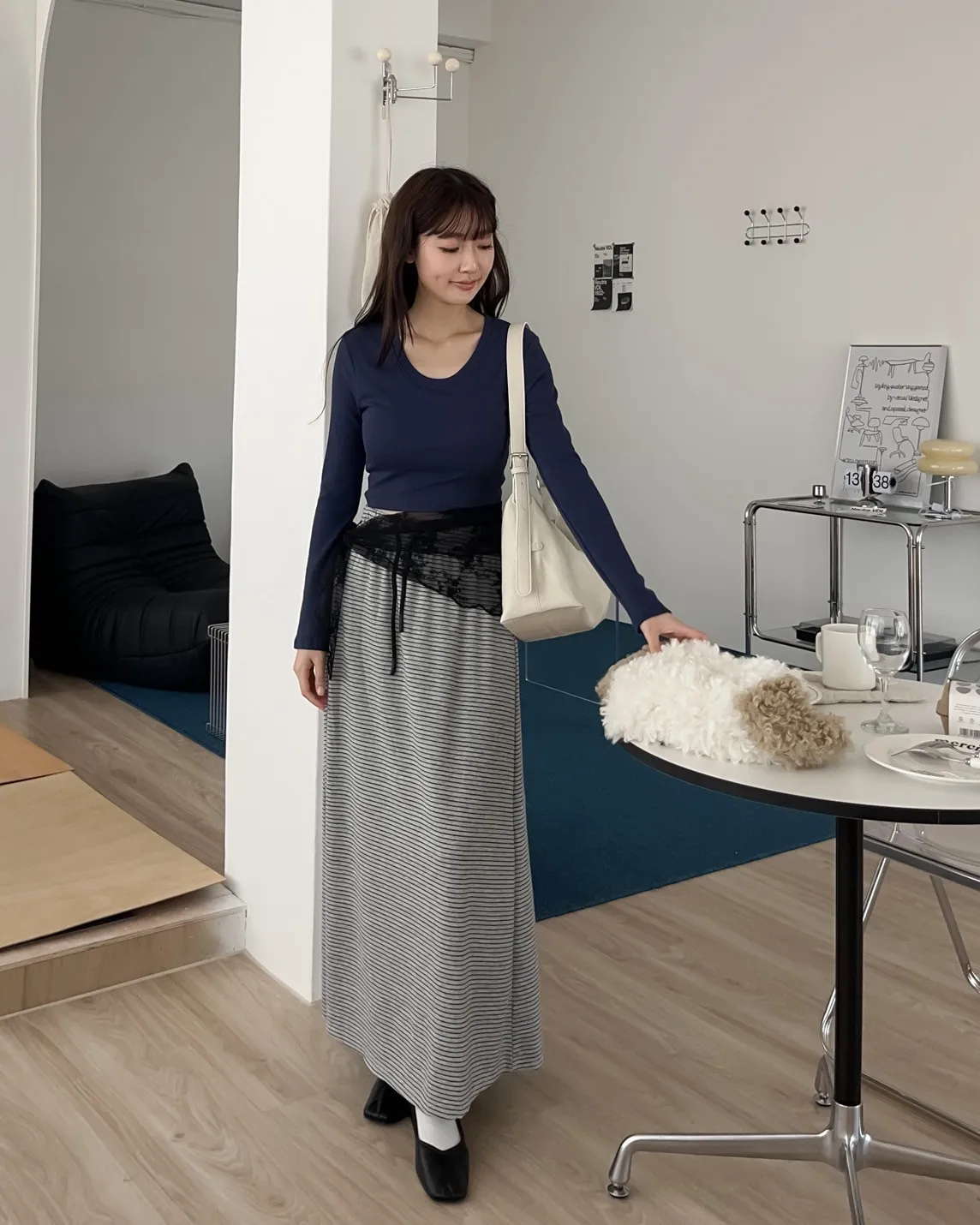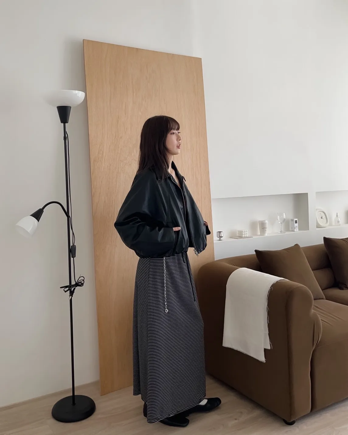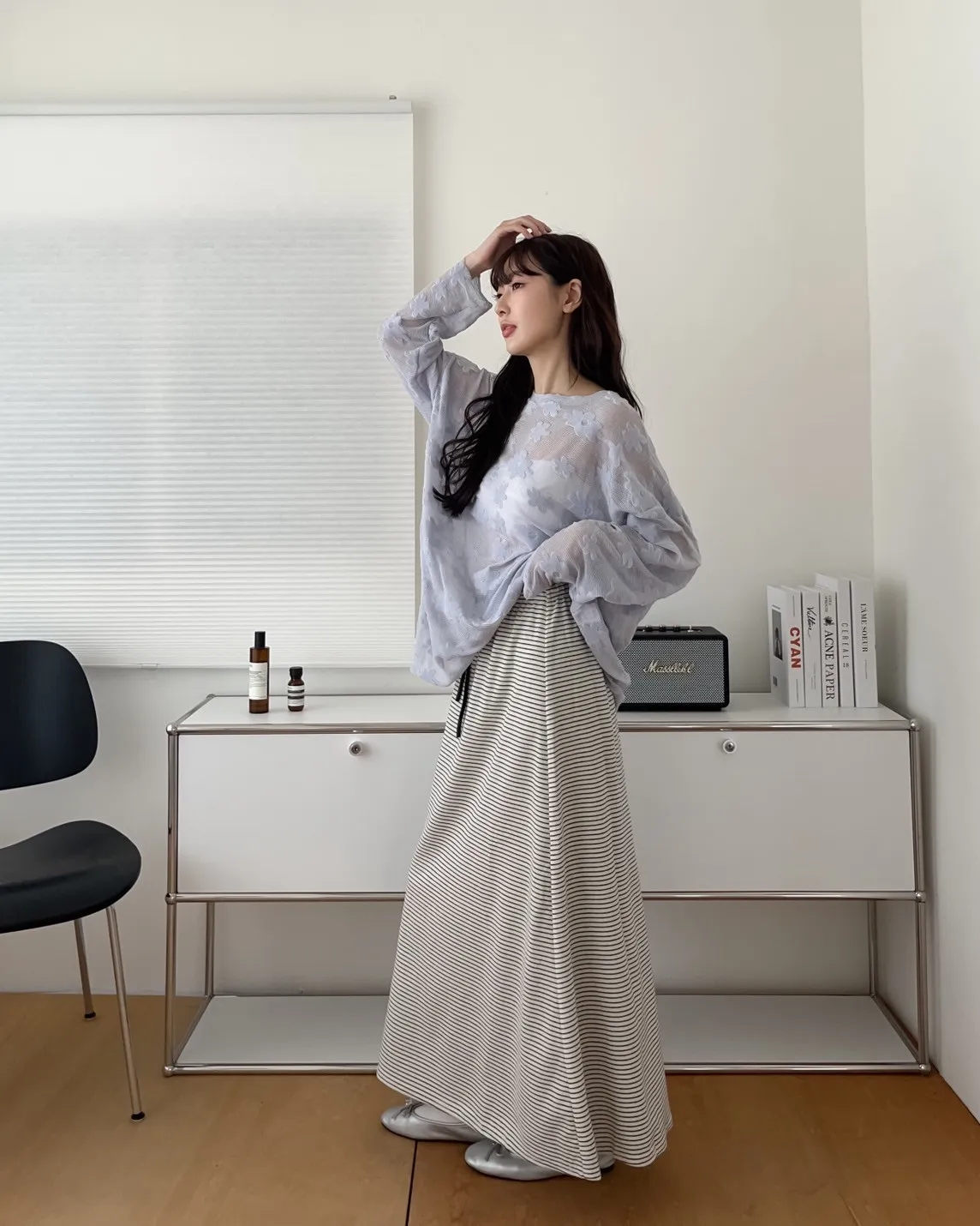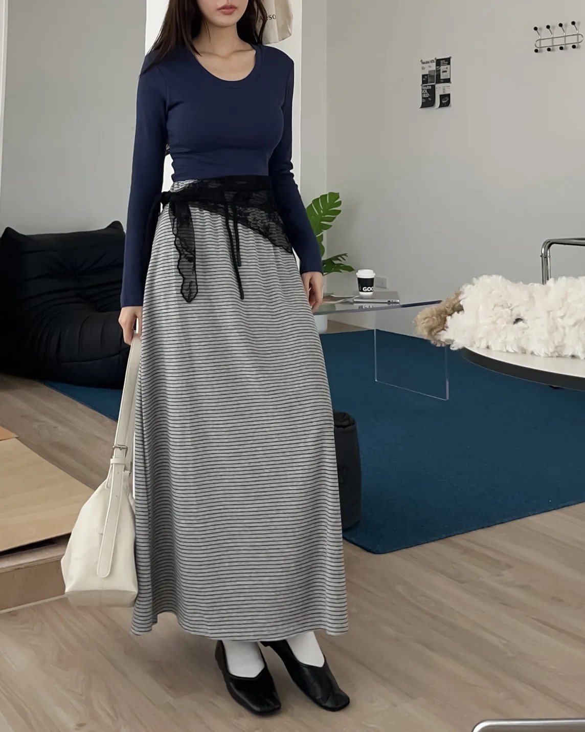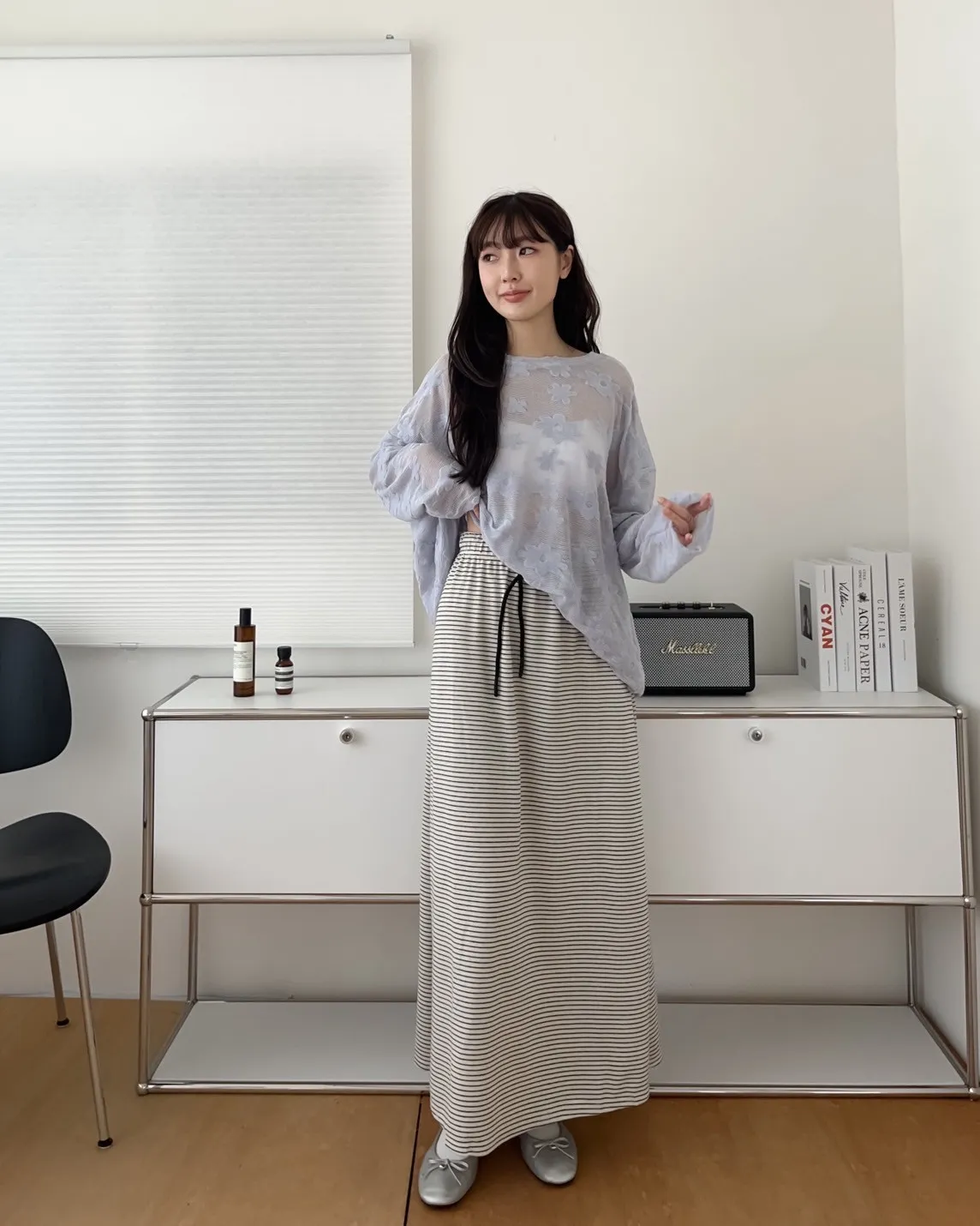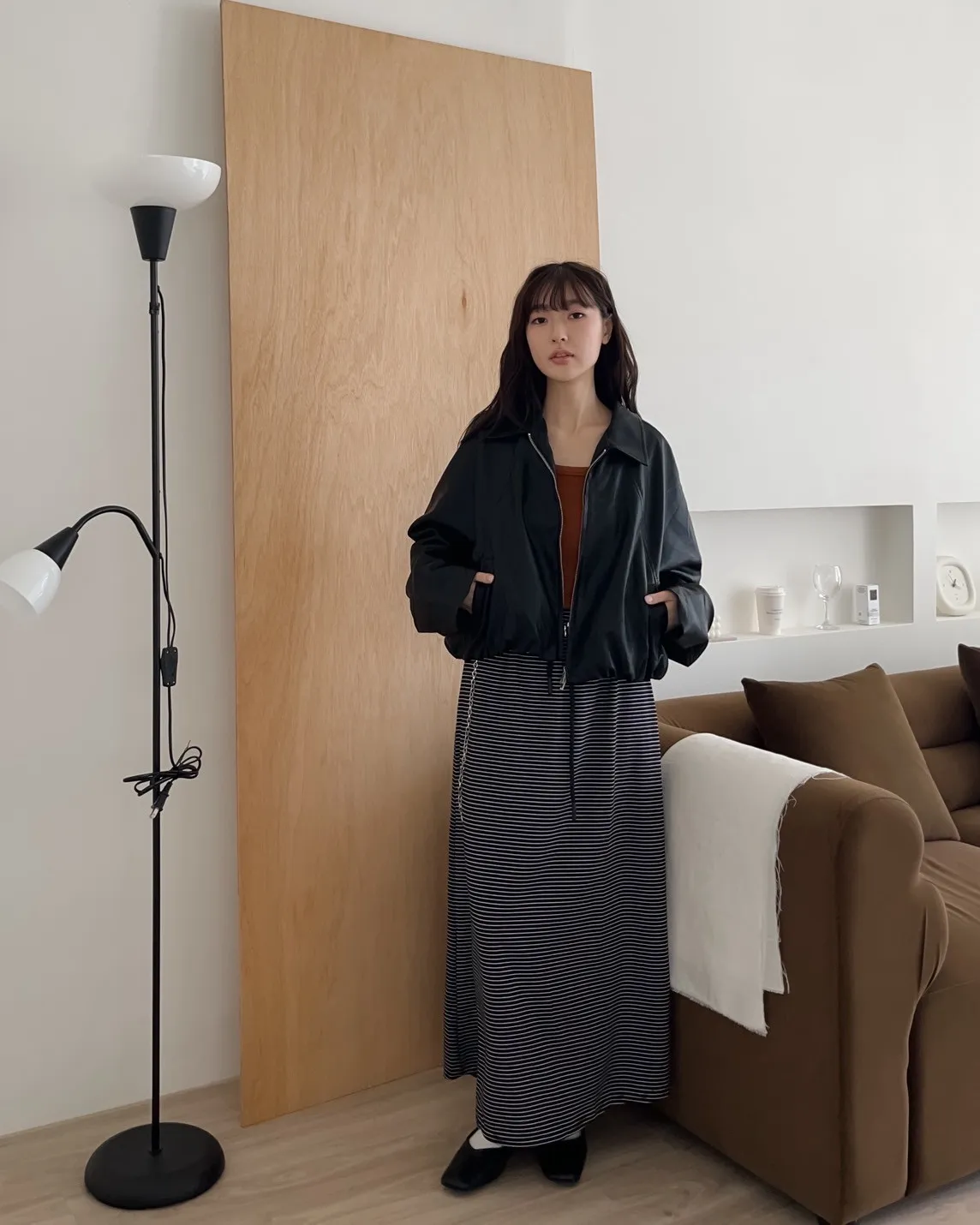 U0005想睡午覺條紋鬆緊A字裙(米白/灰/黑)(售完不補)