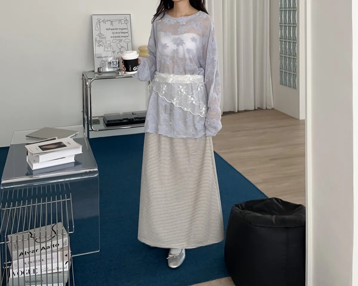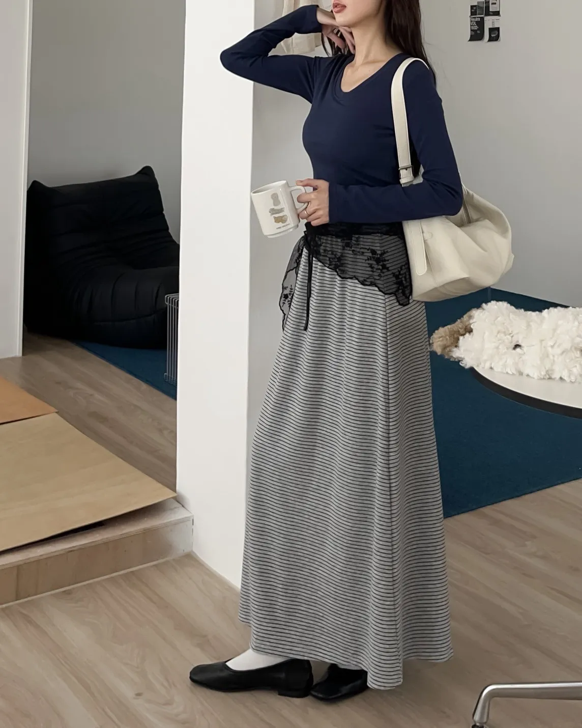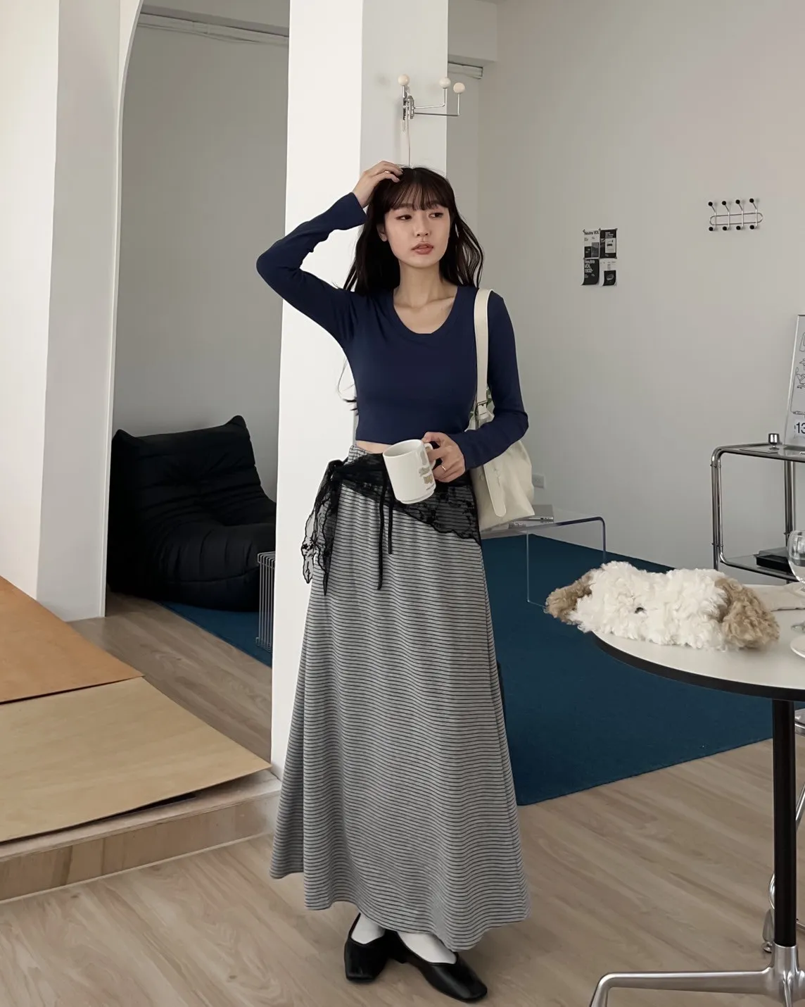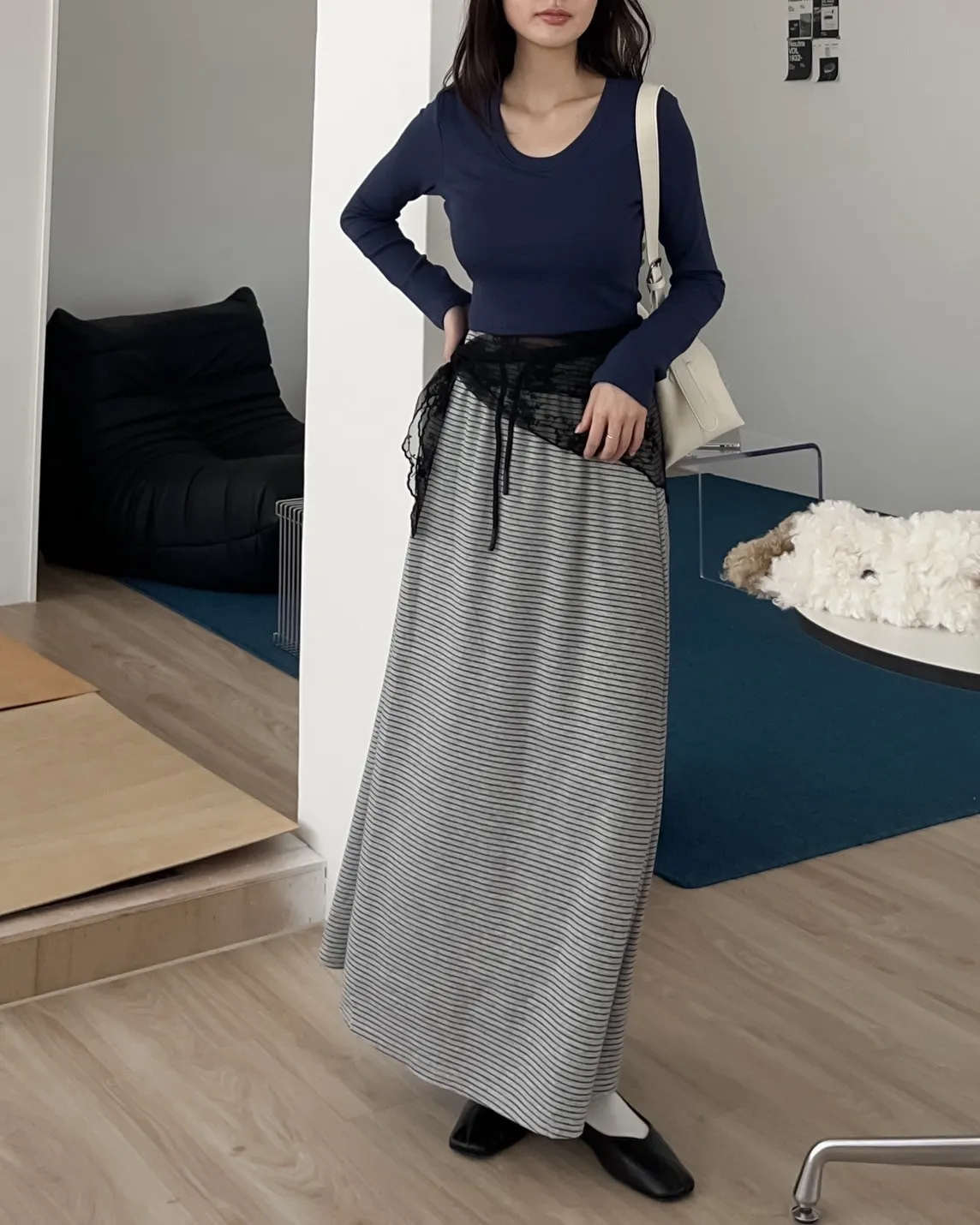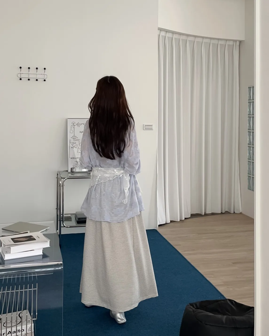 U0005想睡午覺條紋鬆緊A字裙(米白/灰/黑)(售完不補)