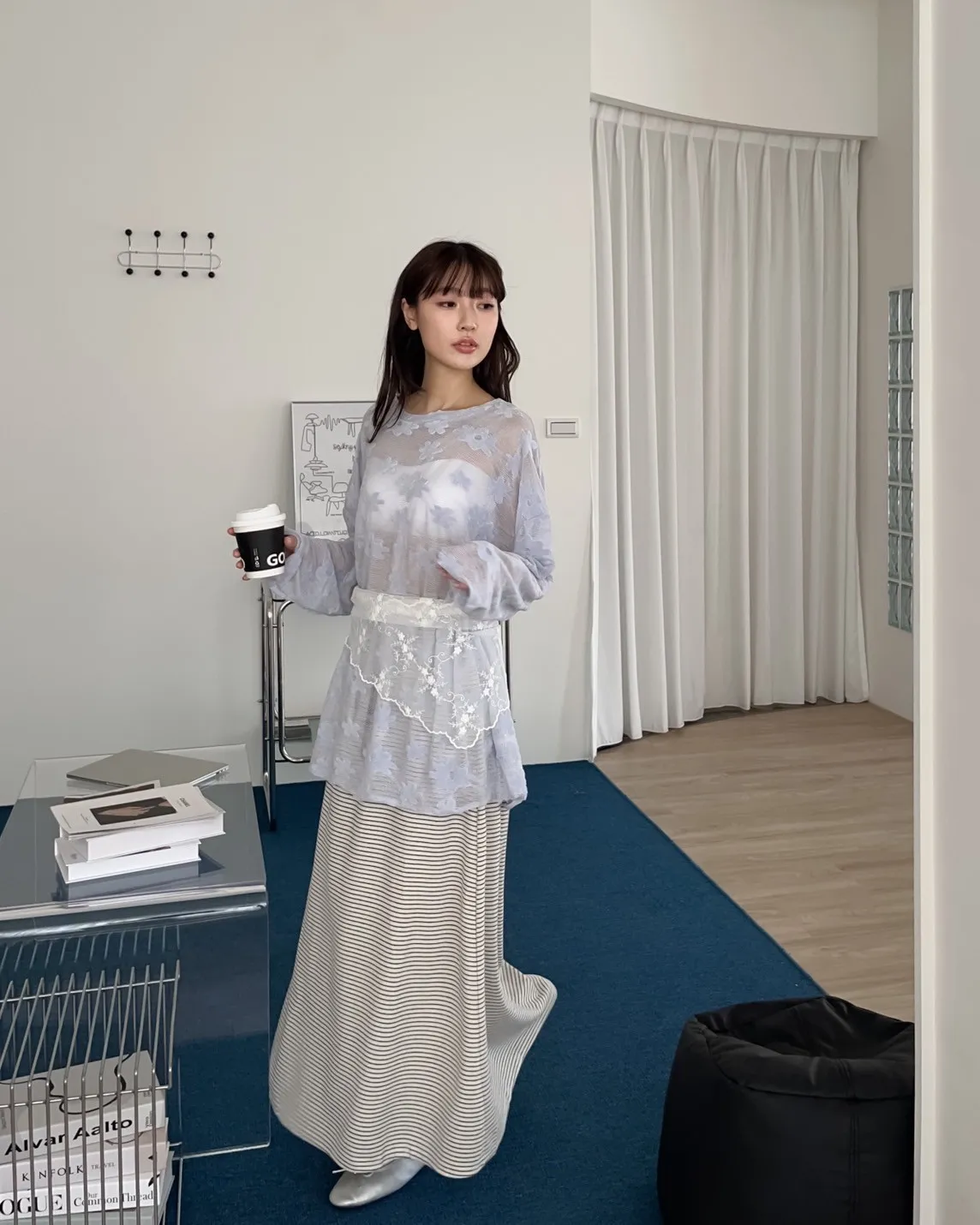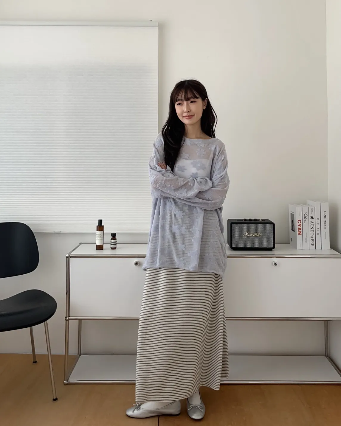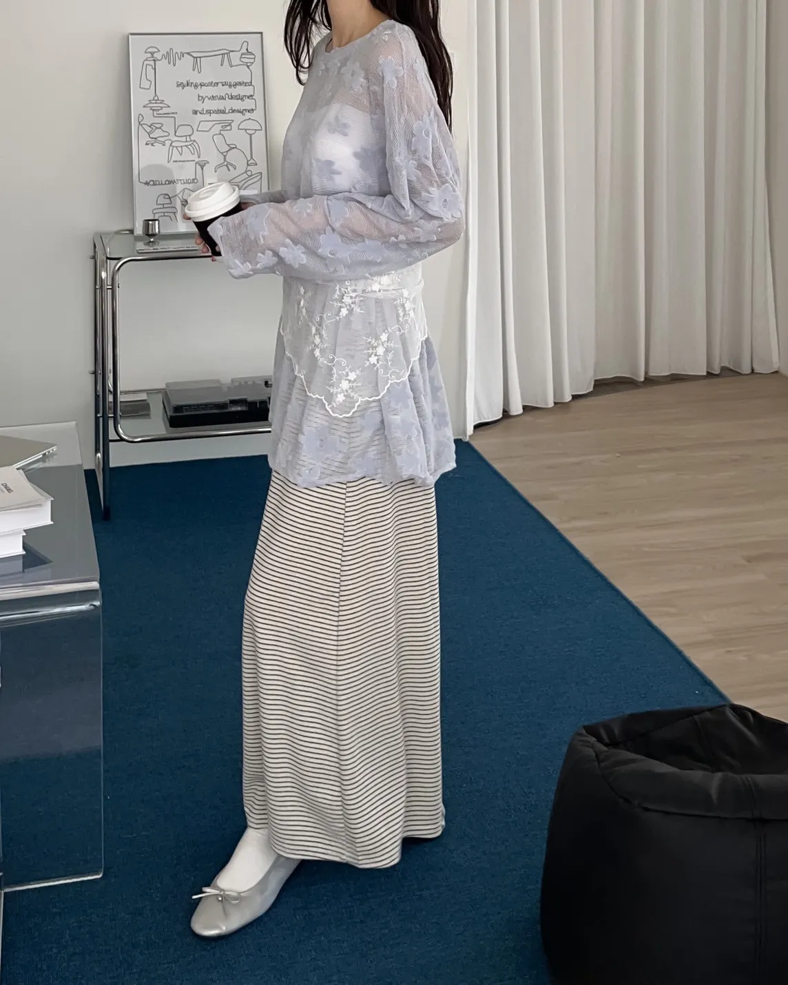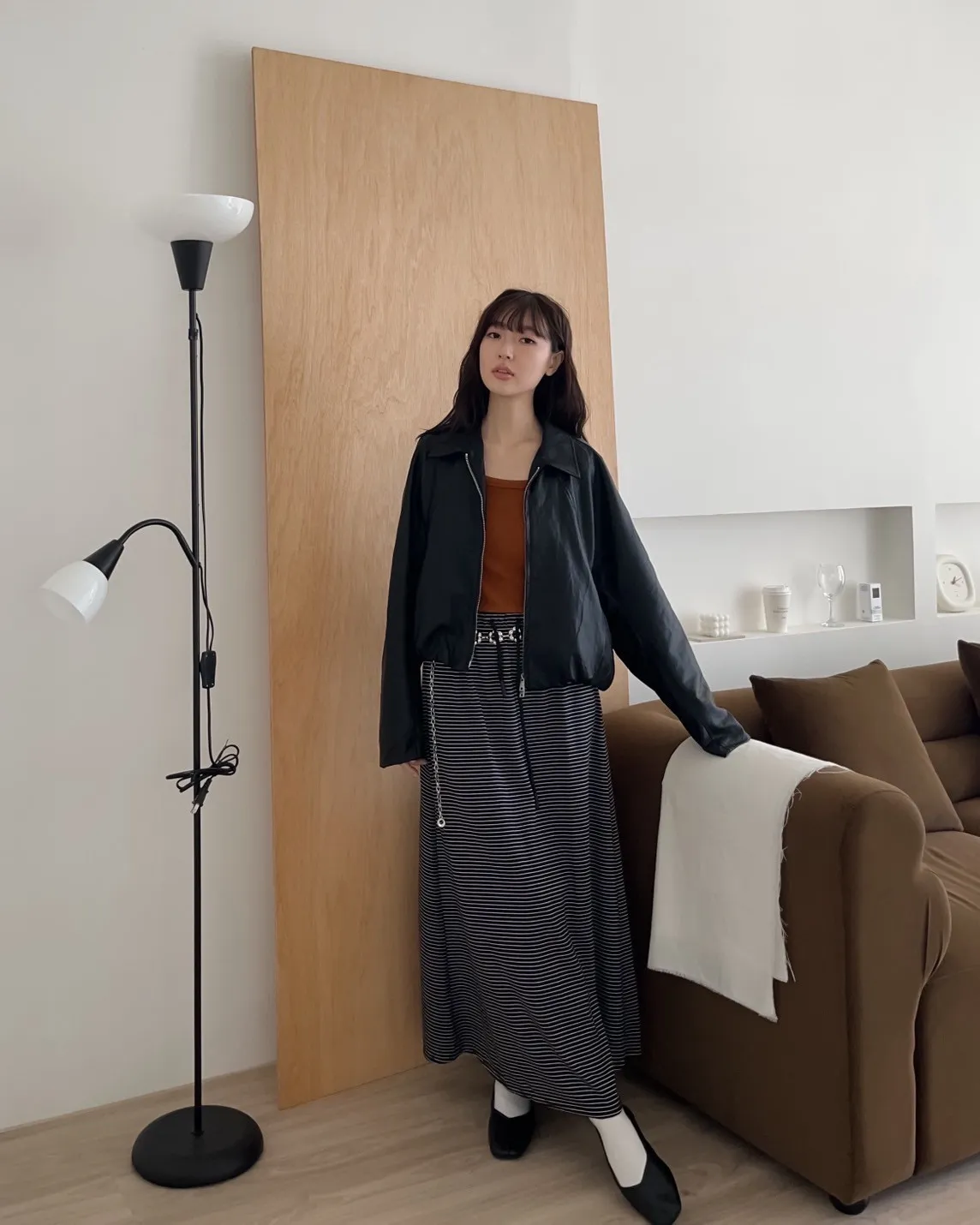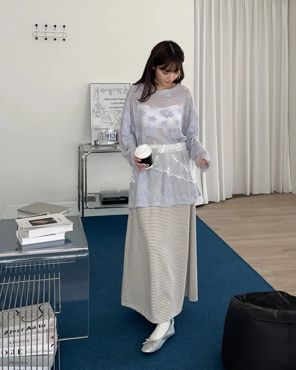 U0005想睡午覺條紋鬆緊A字裙(米白/灰/黑)(售完不補)