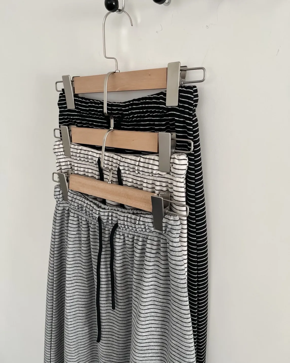 抽繩全鬆緊 建議尺寸S-L A字版型 無口袋 無內裡 表面短絨毛 有點像毛巾料 橫條紋