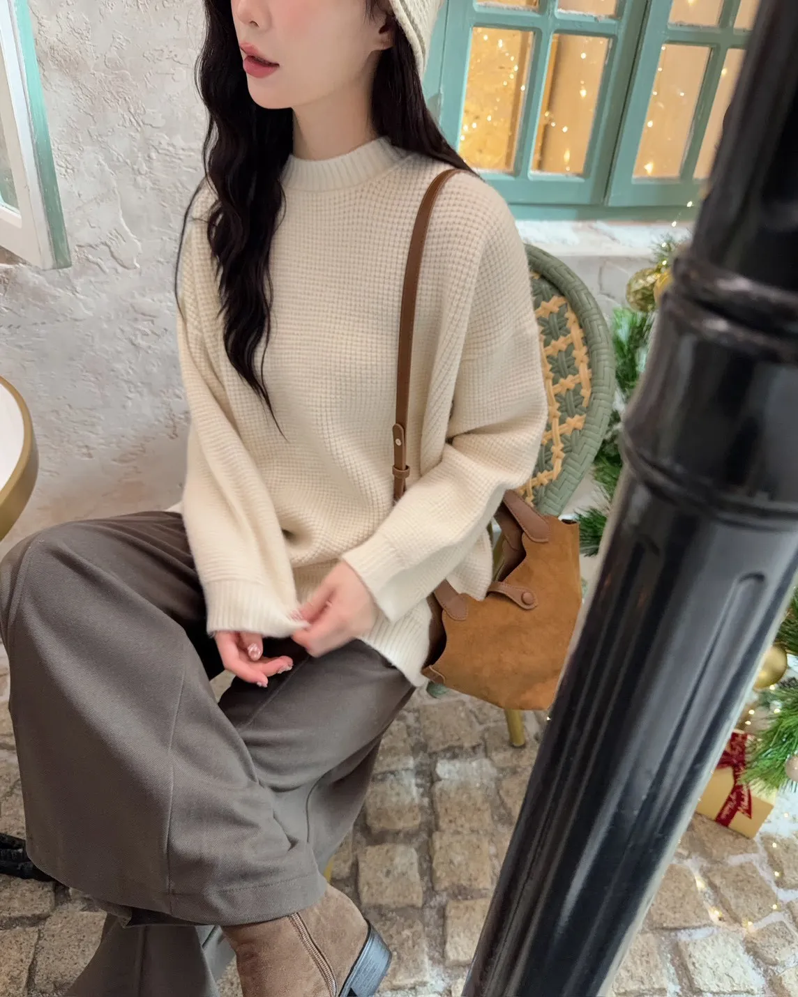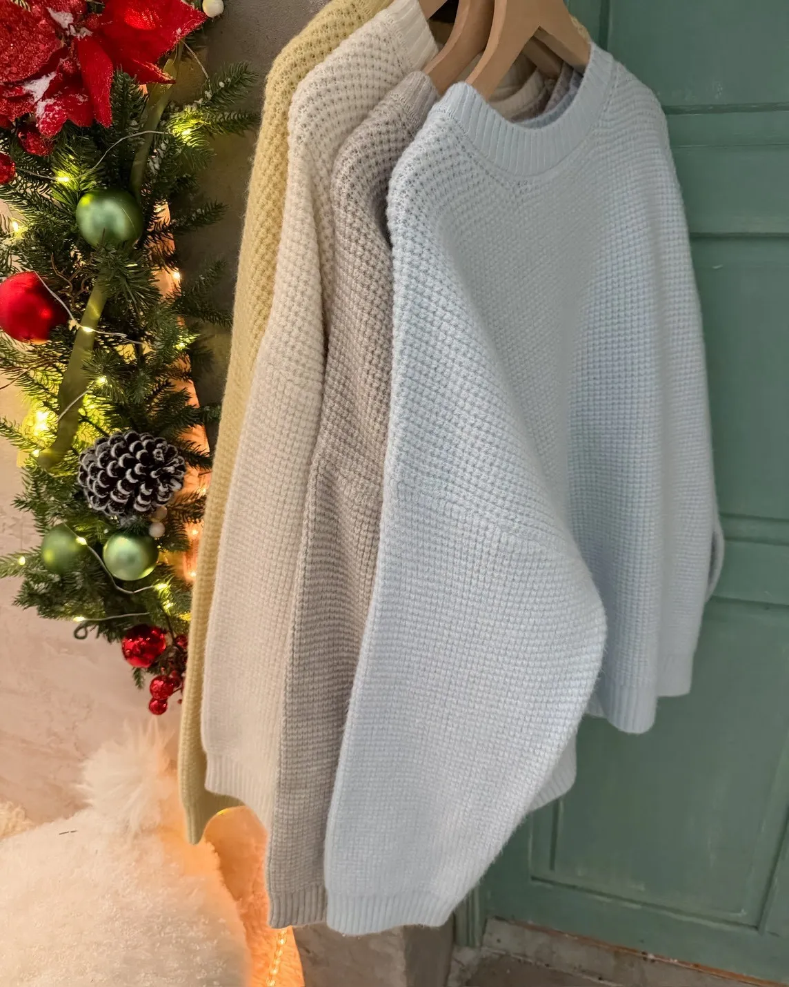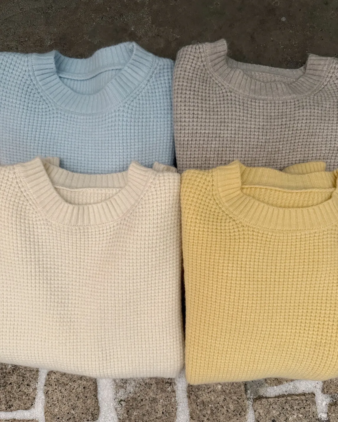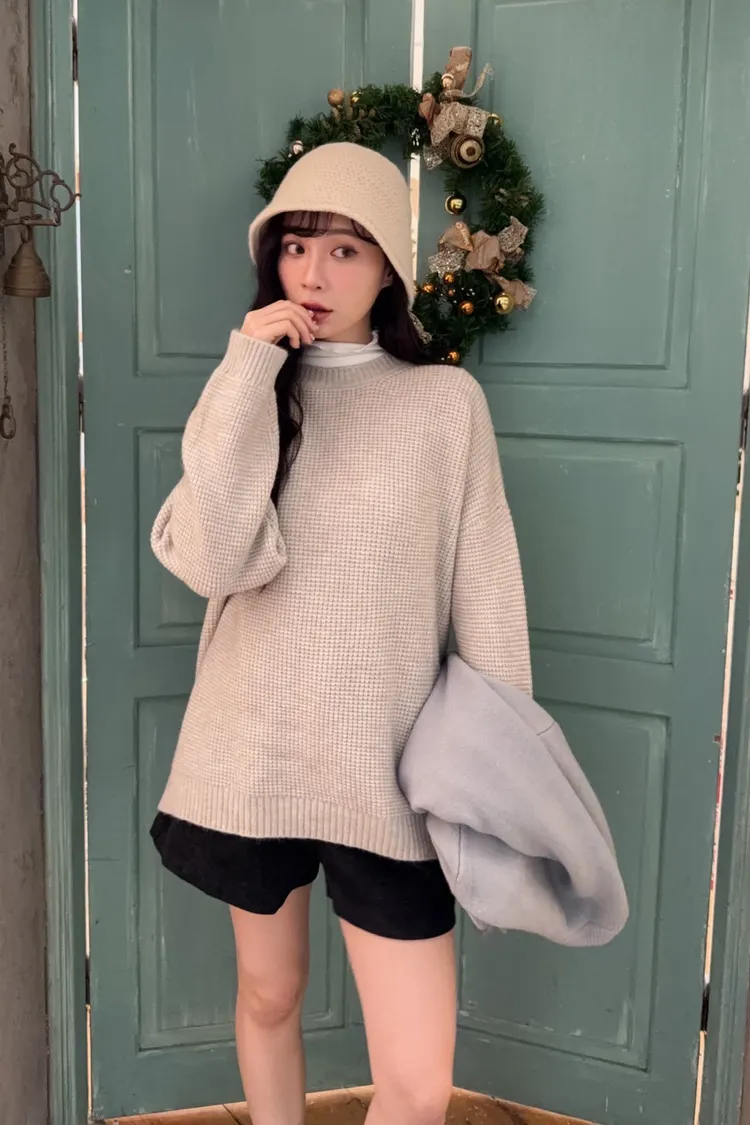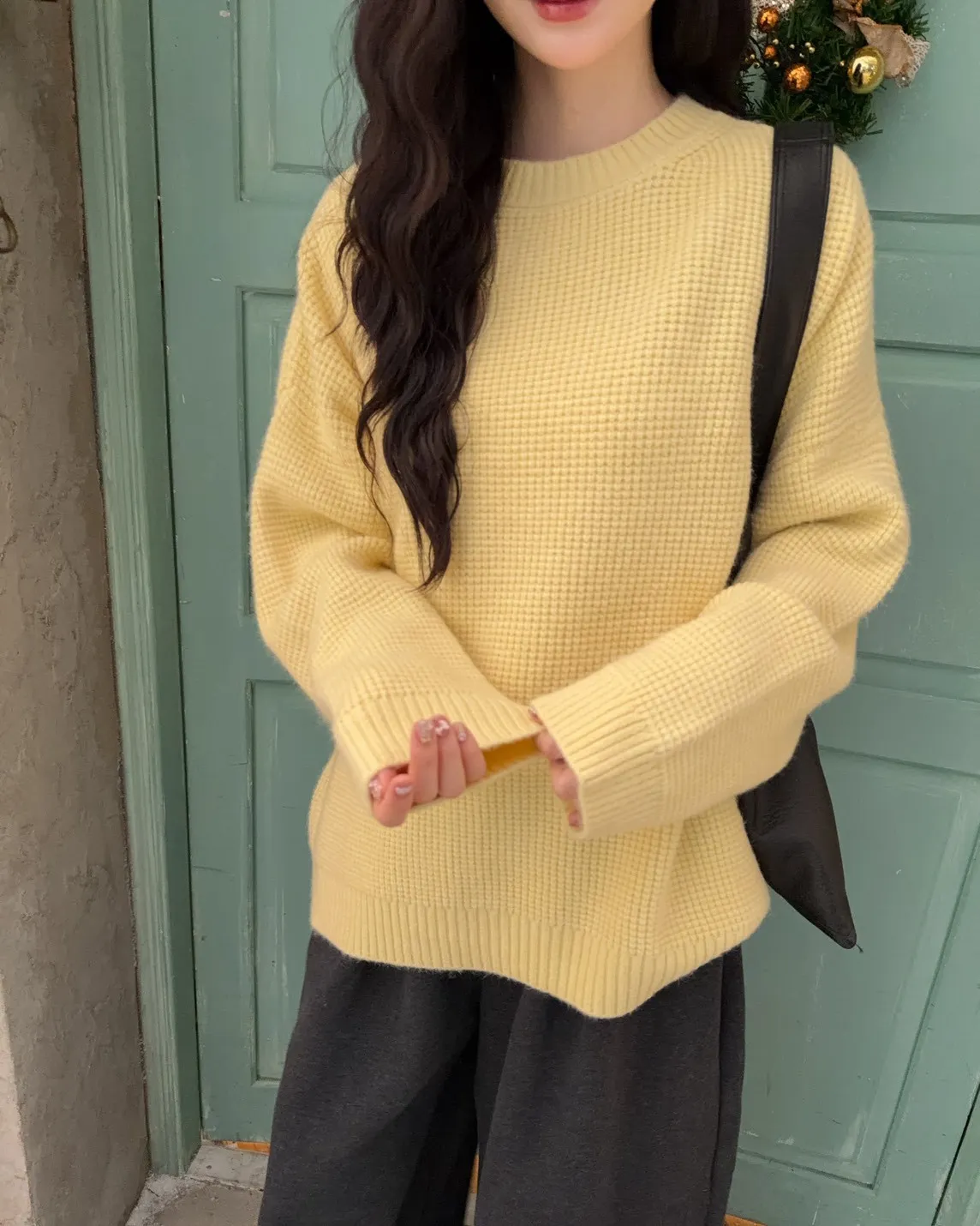 X0052鬆餅格寬鬆毛衣(米白/黃/淺藍/灰)