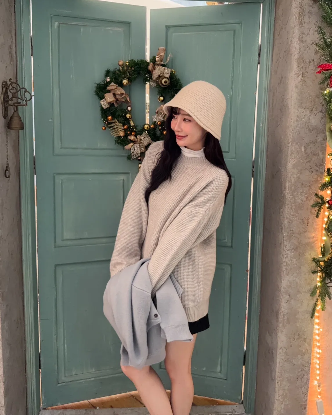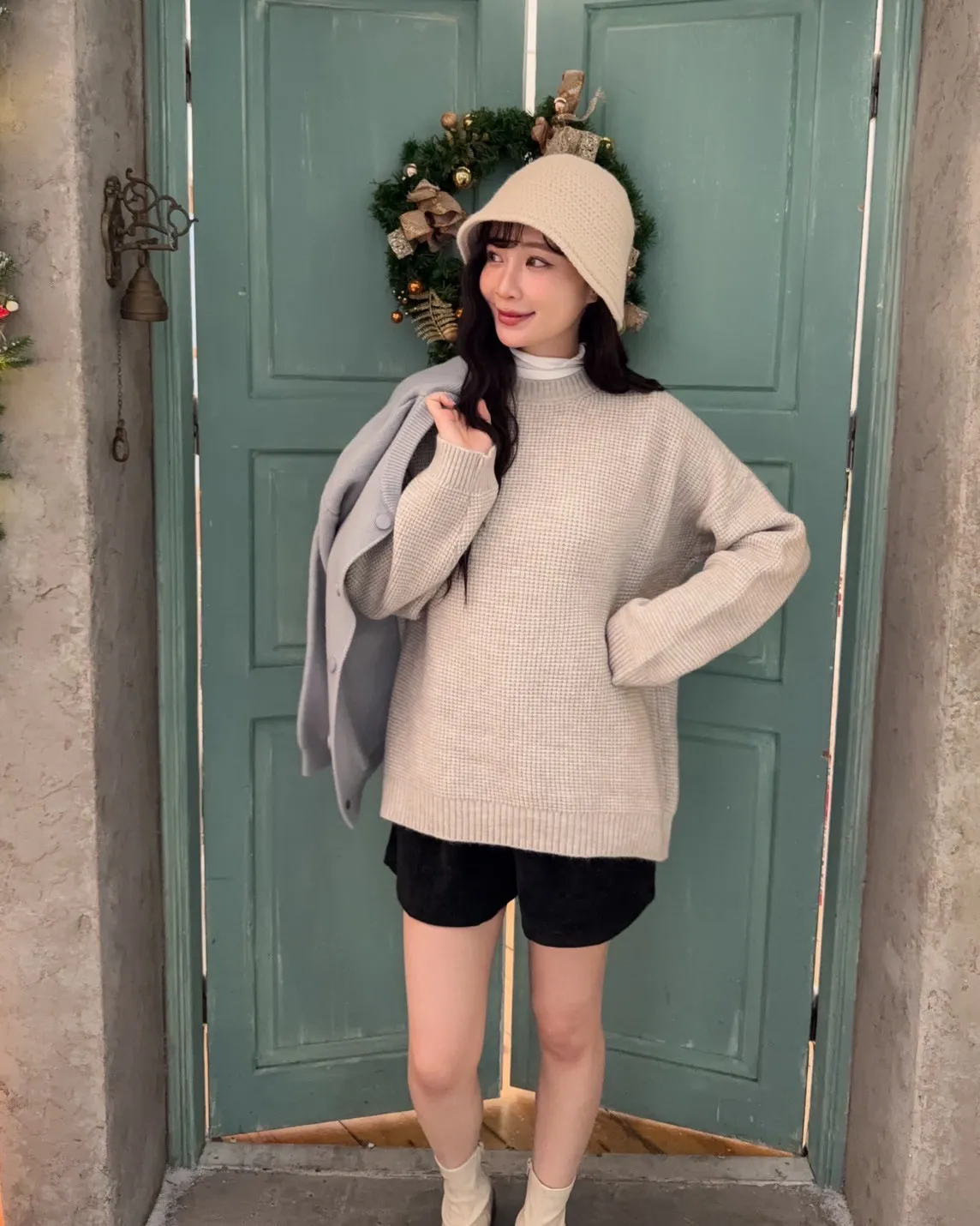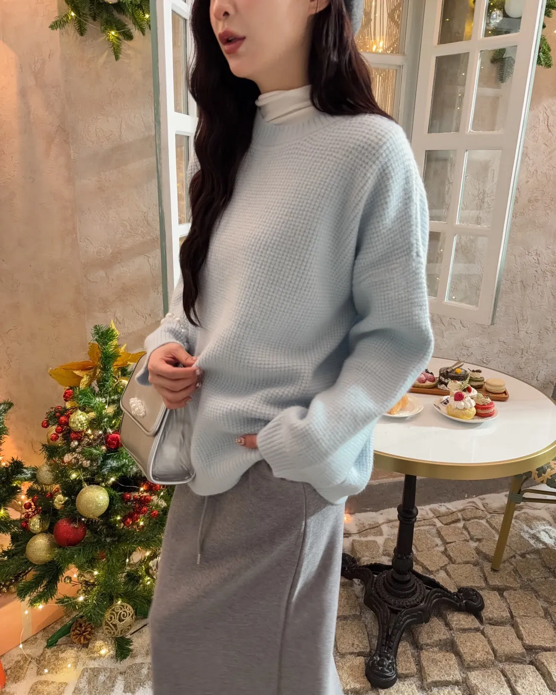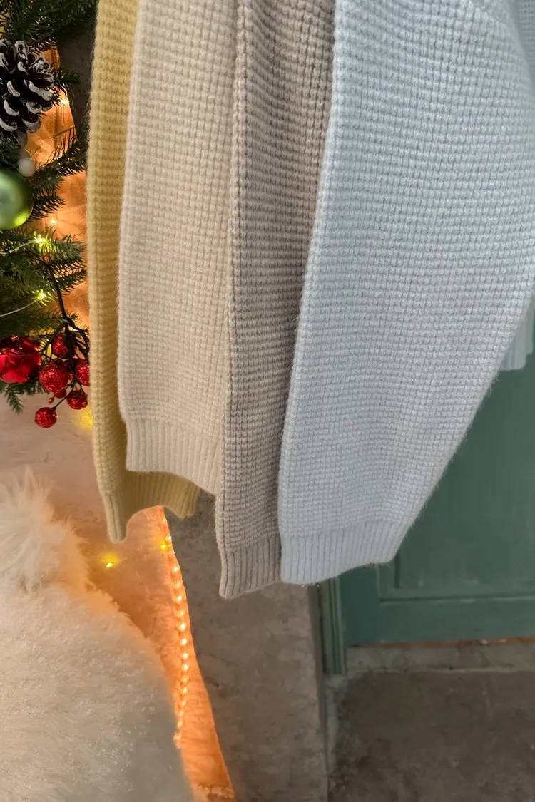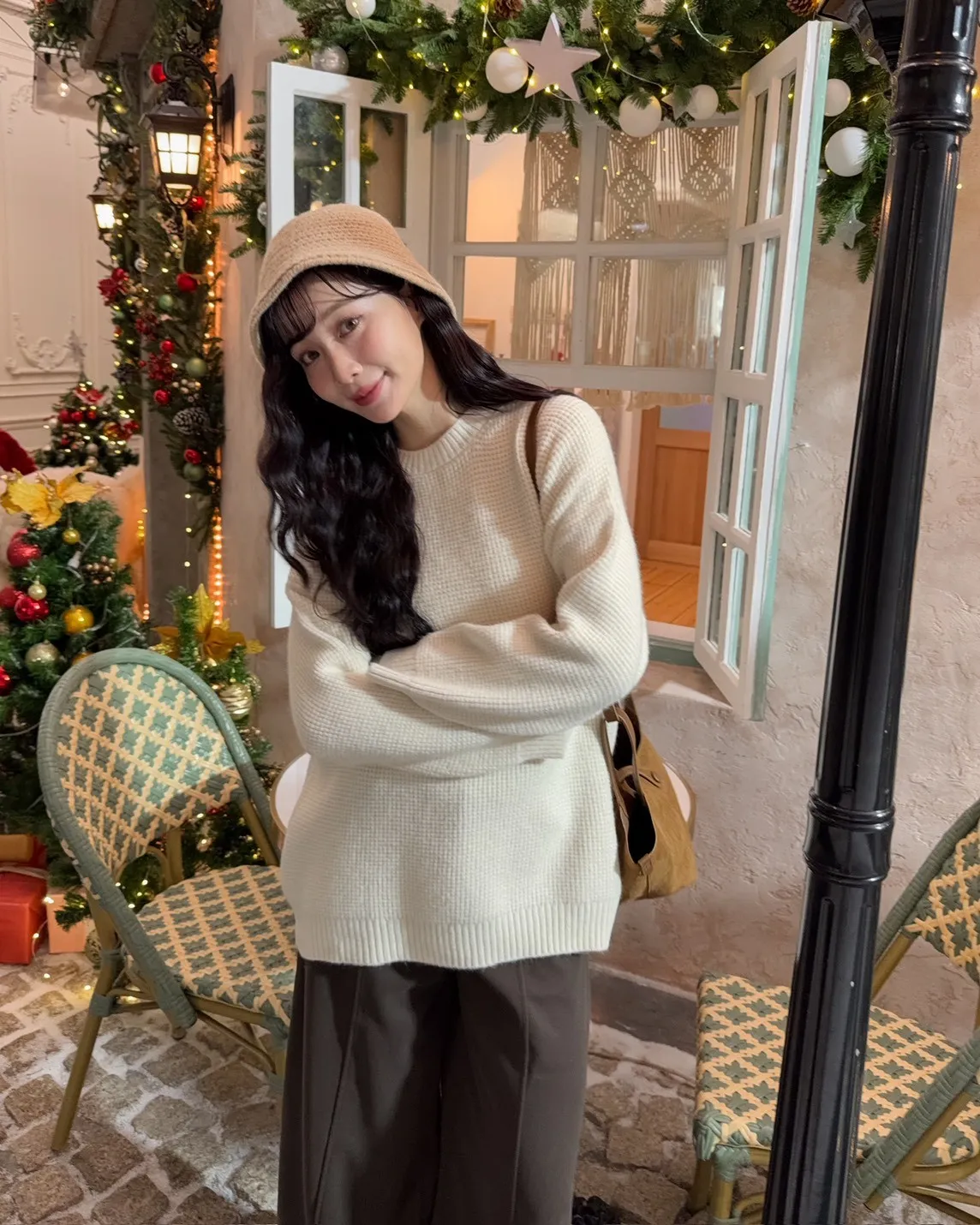 X0052鬆餅格寬鬆毛衣(米白/黃/淺藍/灰)