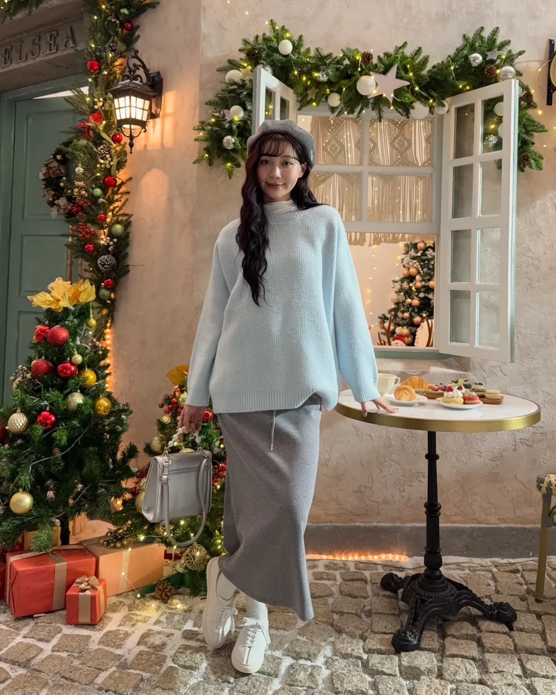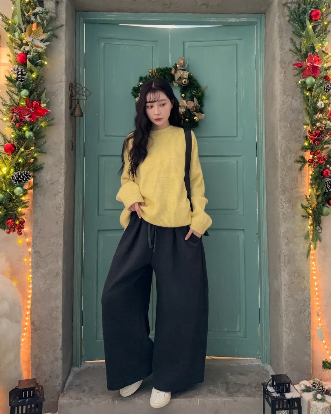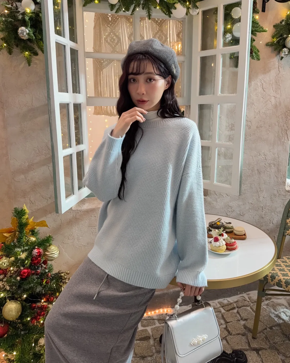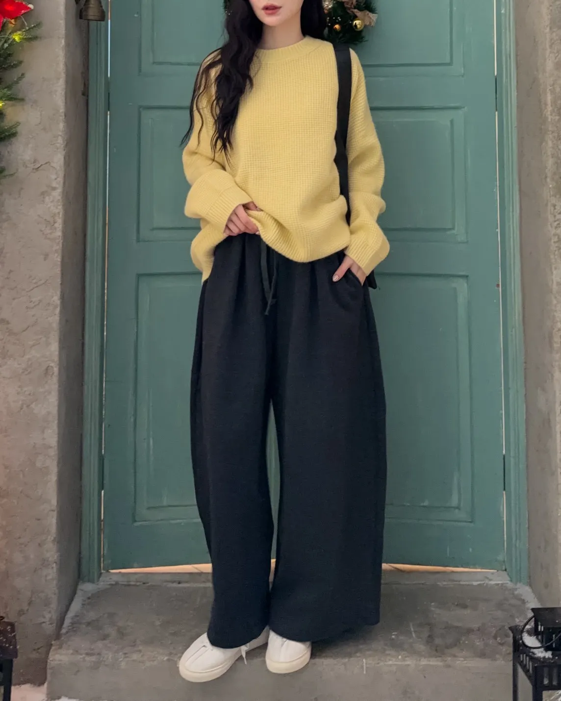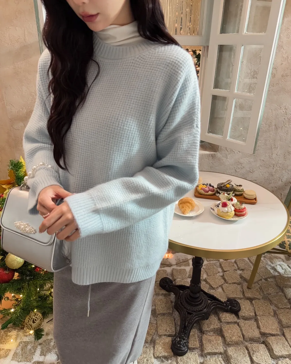 X0052鬆餅格寬鬆毛衣(米白/黃/淺藍/灰)