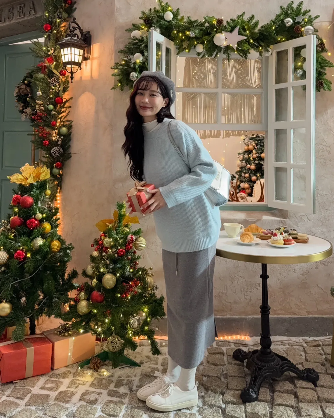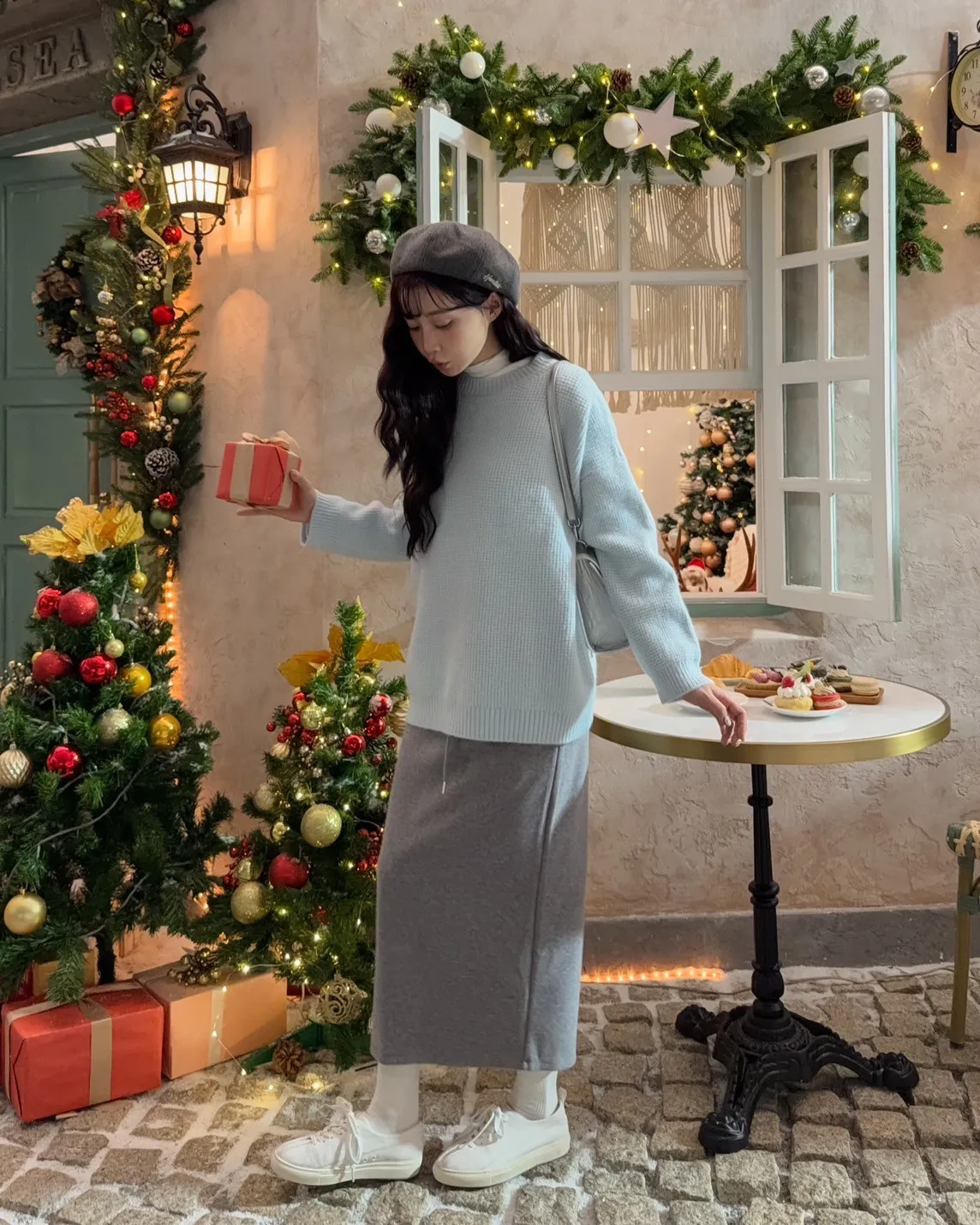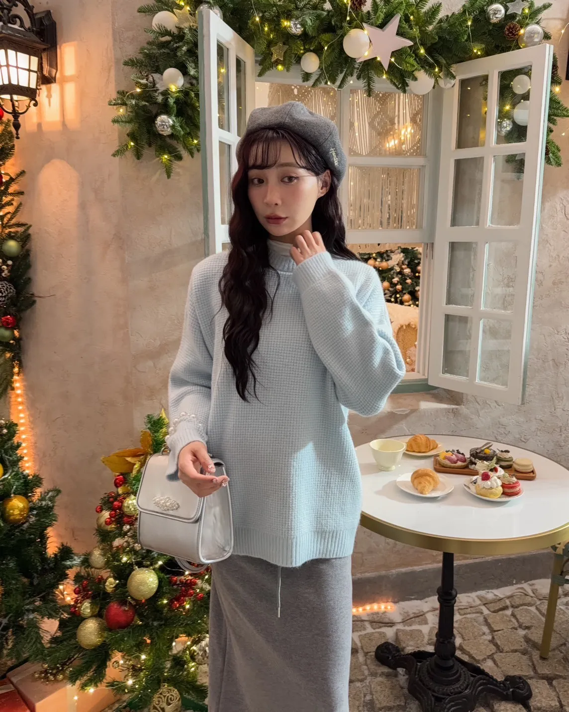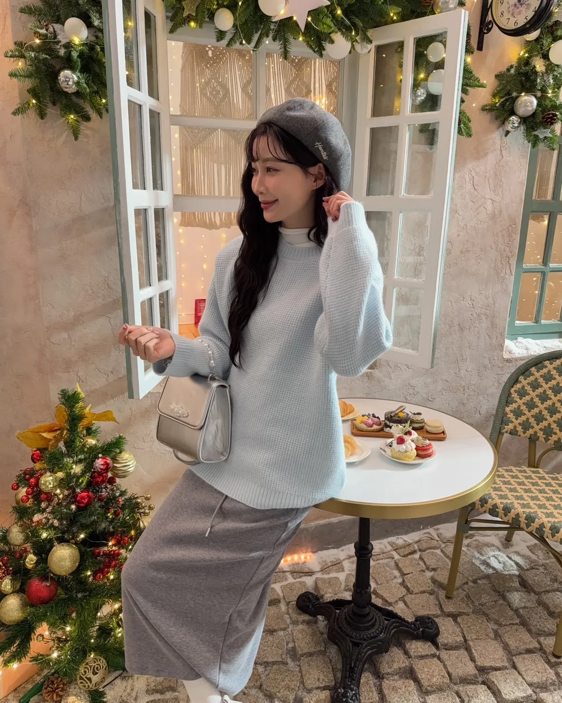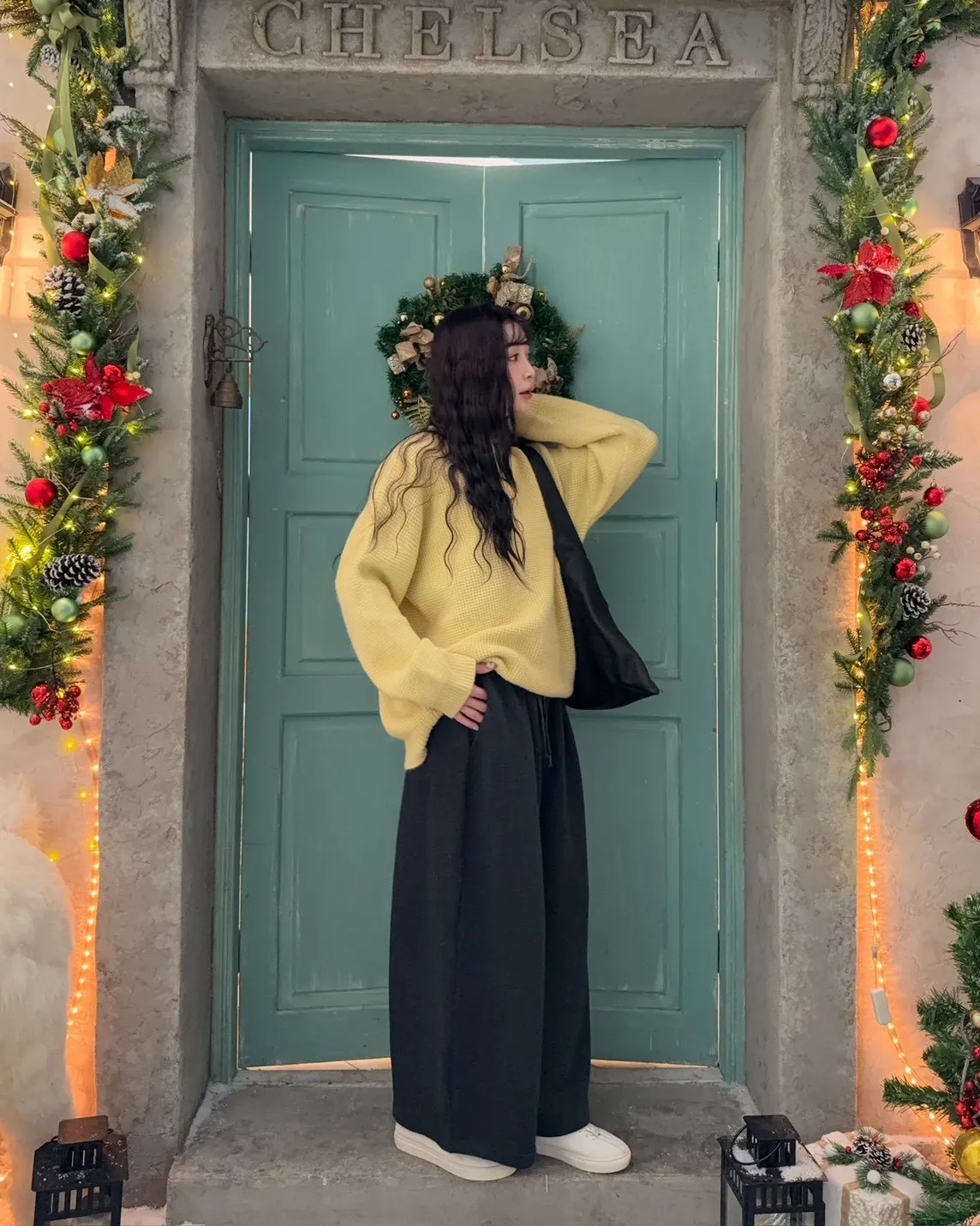 X0052鬆餅格寬鬆毛衣(米白/黃/淺藍/灰)