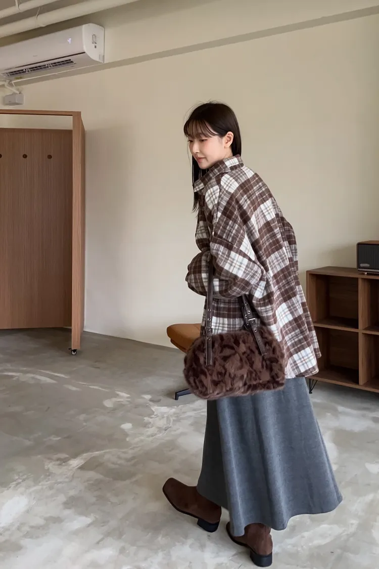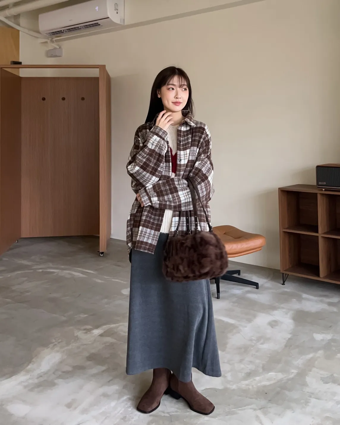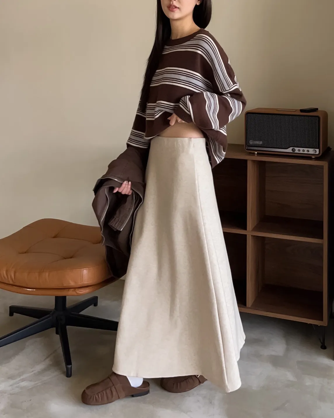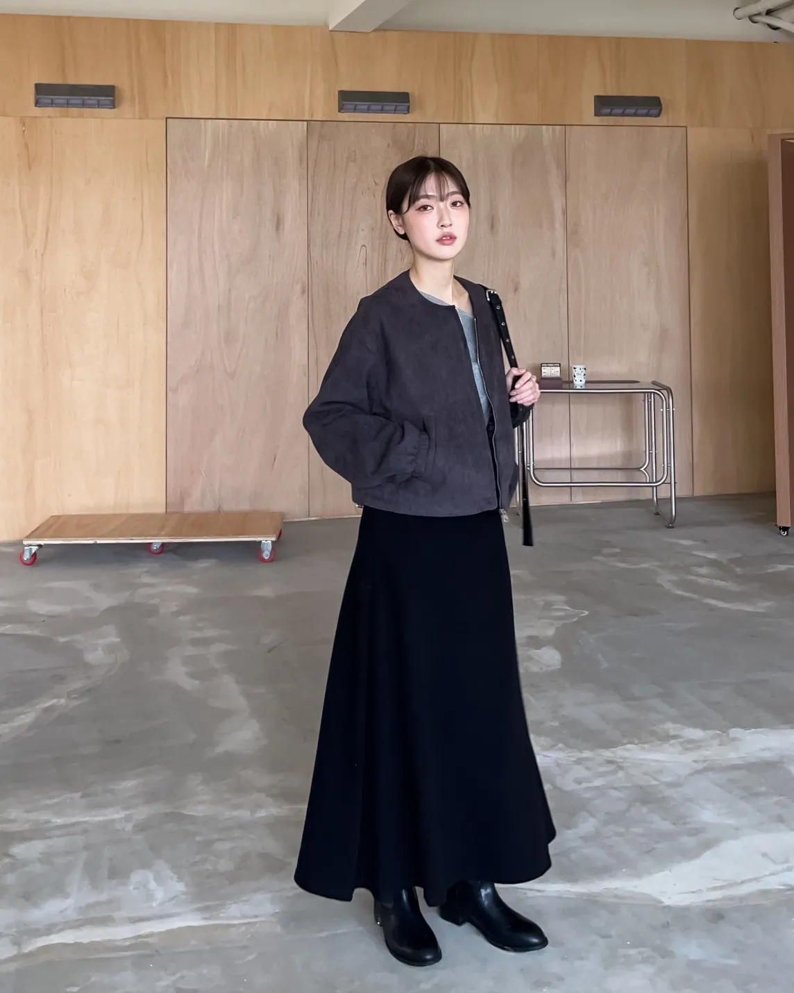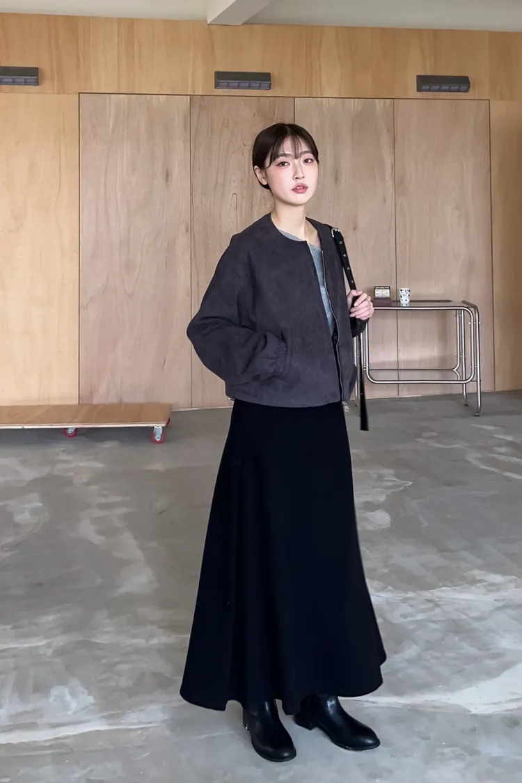 W0013衣櫃要有百搭傘擺毛呢裙(杏/灰/黑)