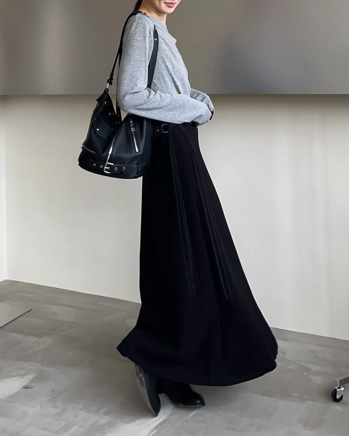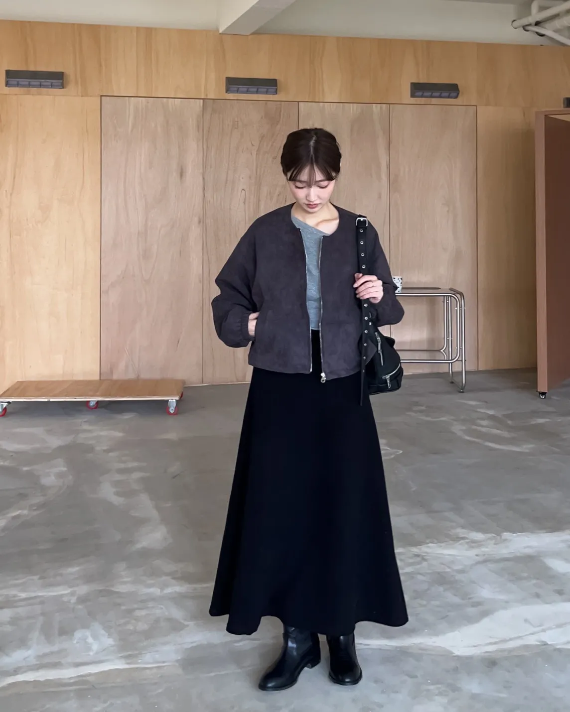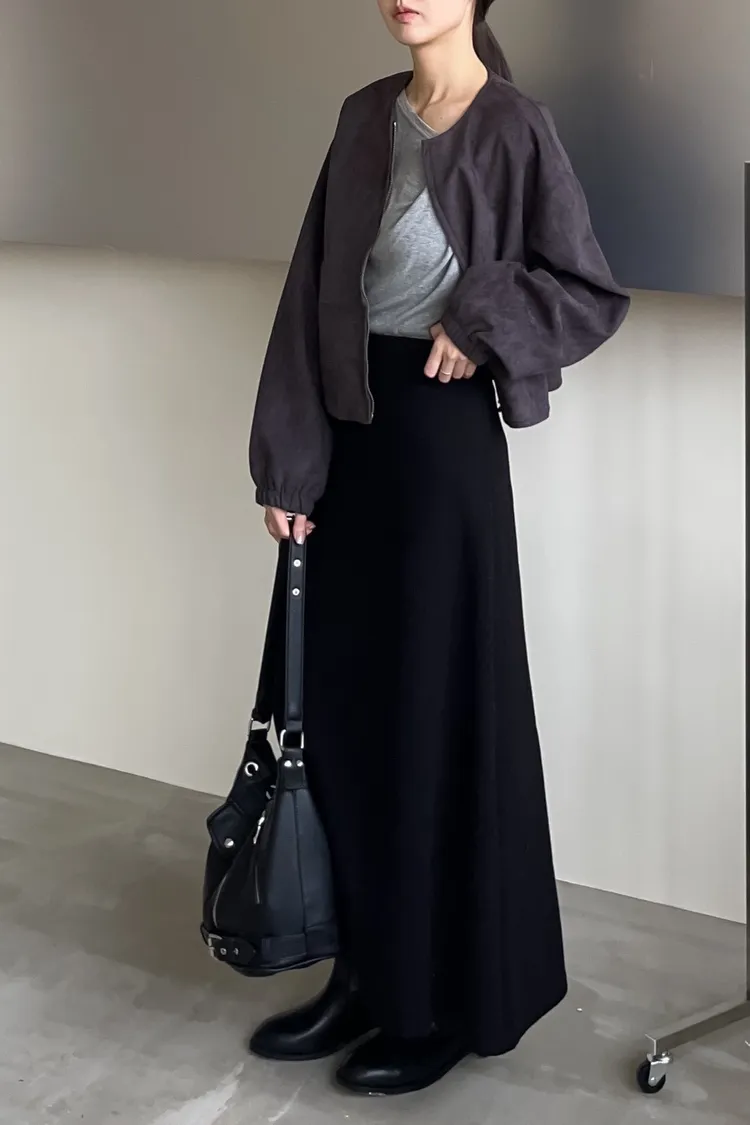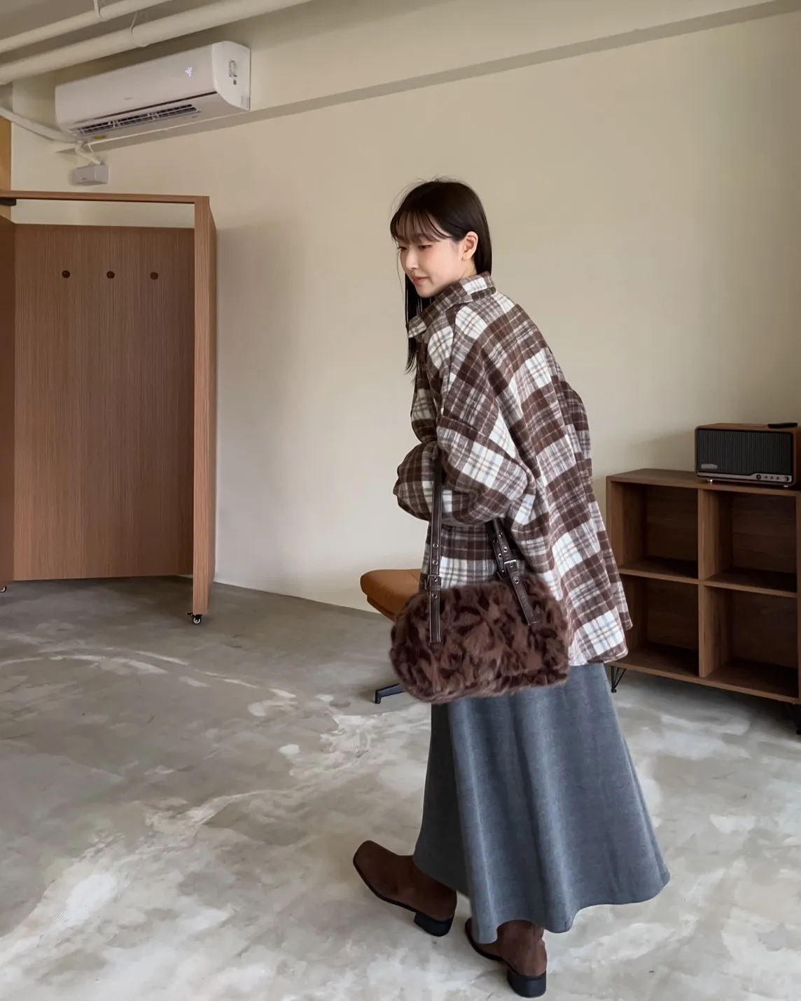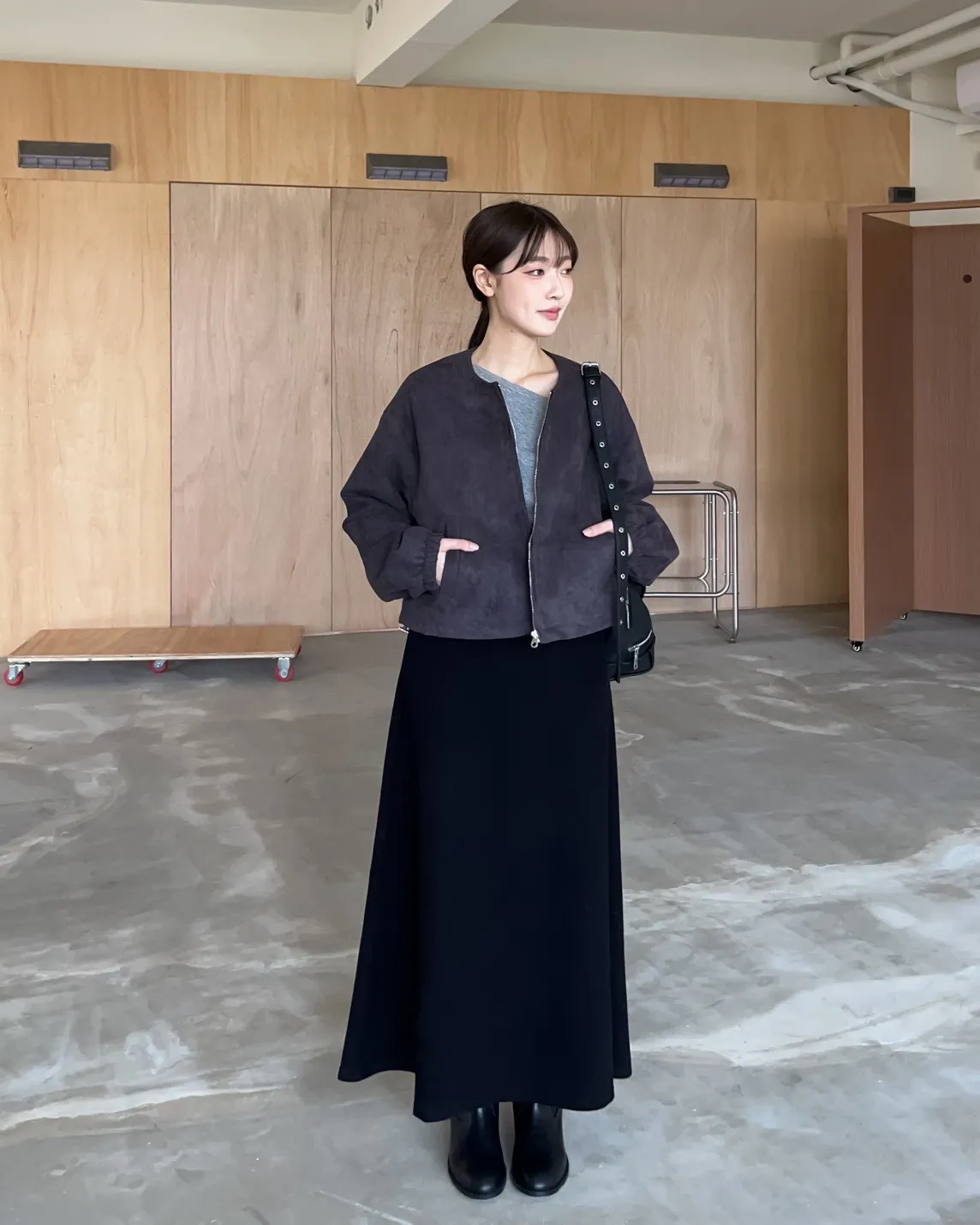 W0013衣櫃要有百搭傘擺毛呢裙(杏/灰/黑)