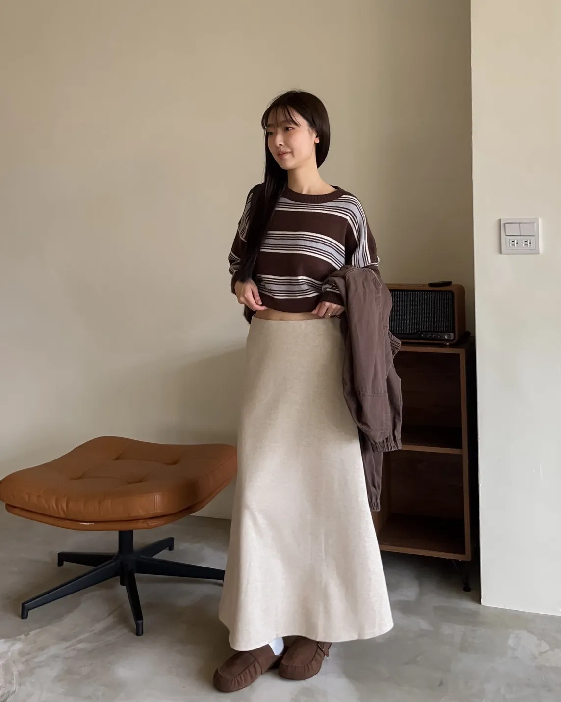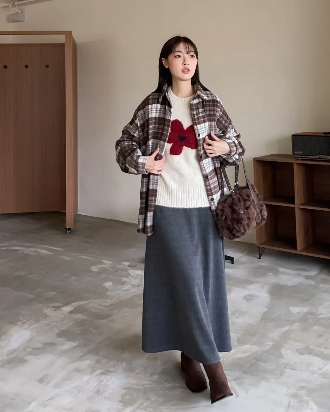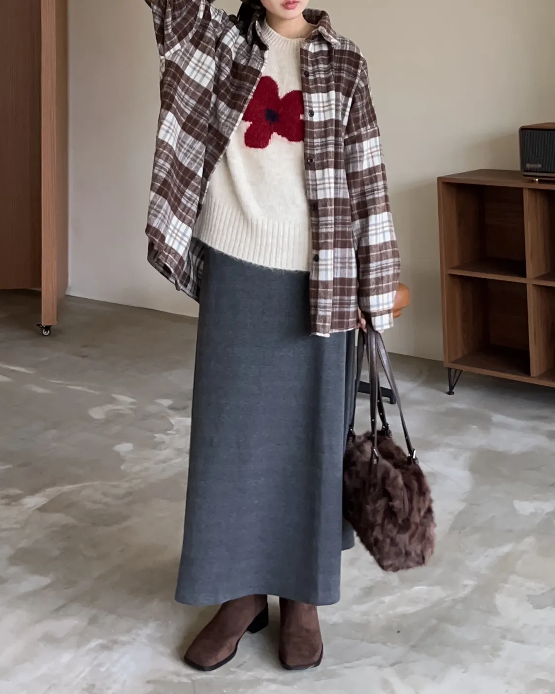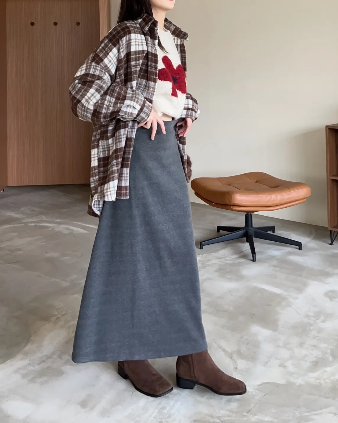 全鬆緊 建議尺寸S-L 無口袋 無內裡 魚尾裙擺 毛呢無彈性 顏色適合秋冬好搭!
