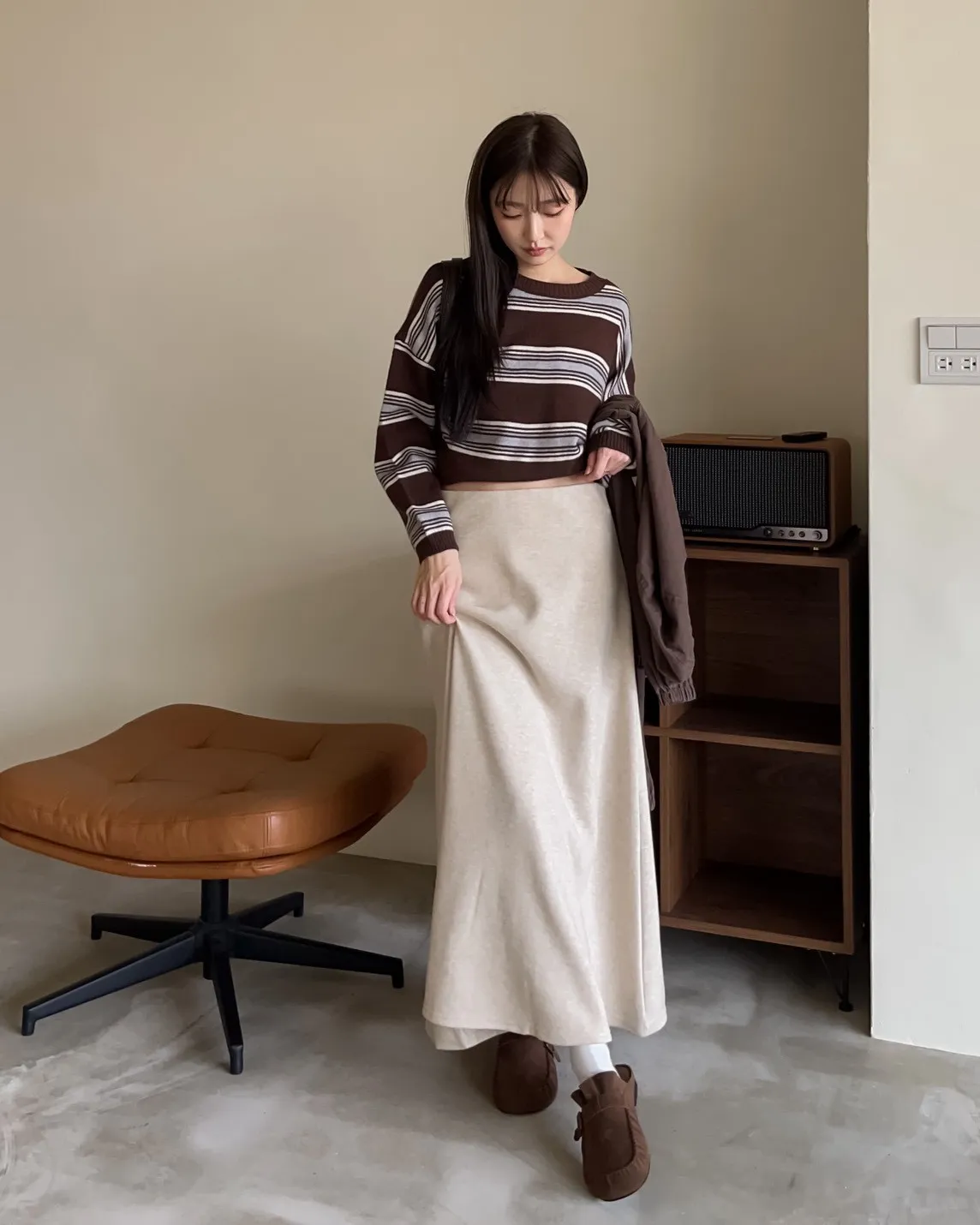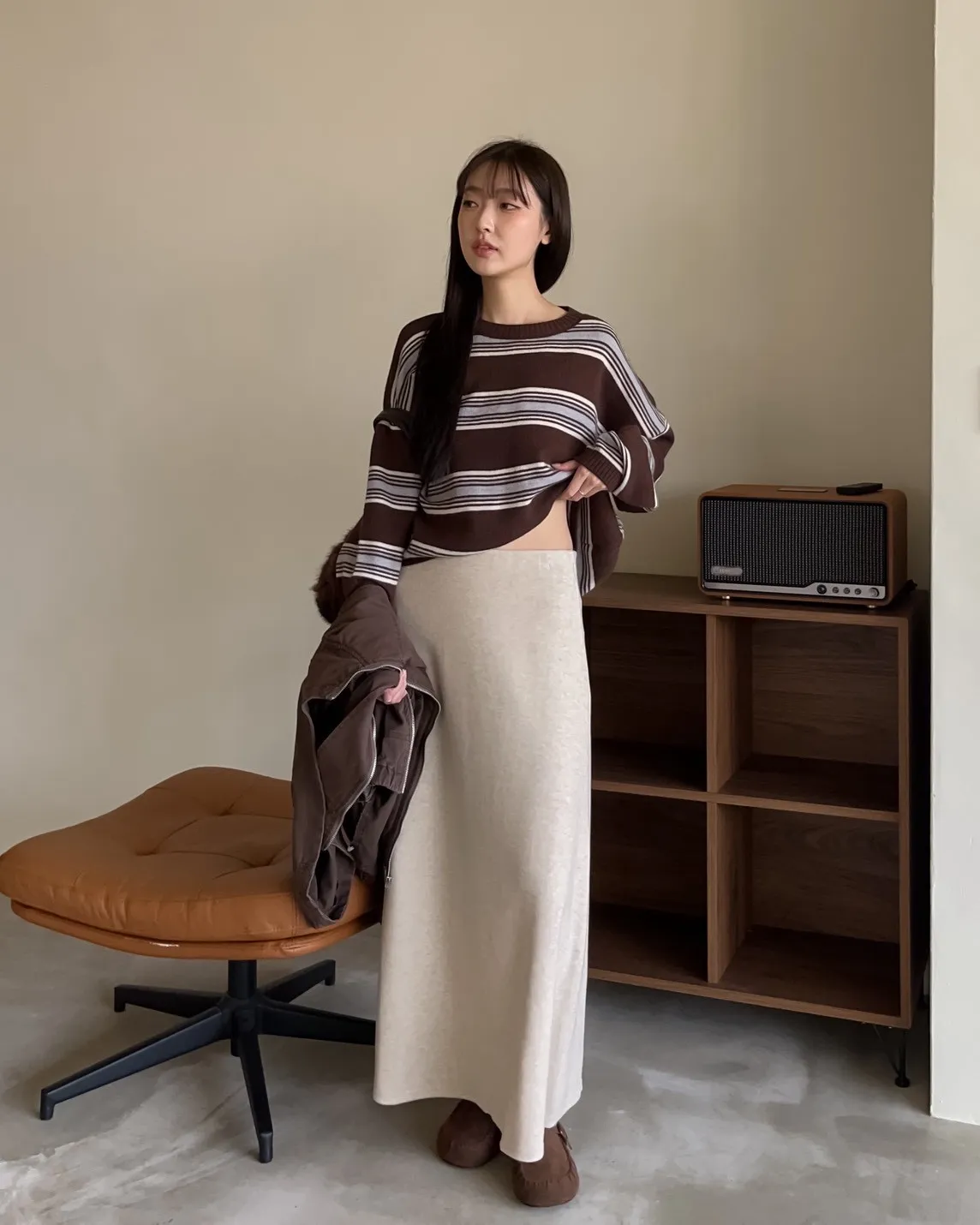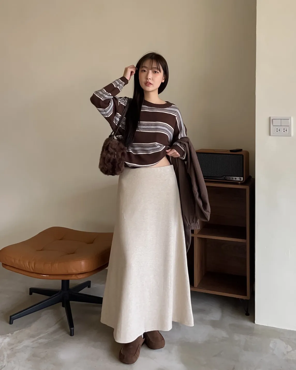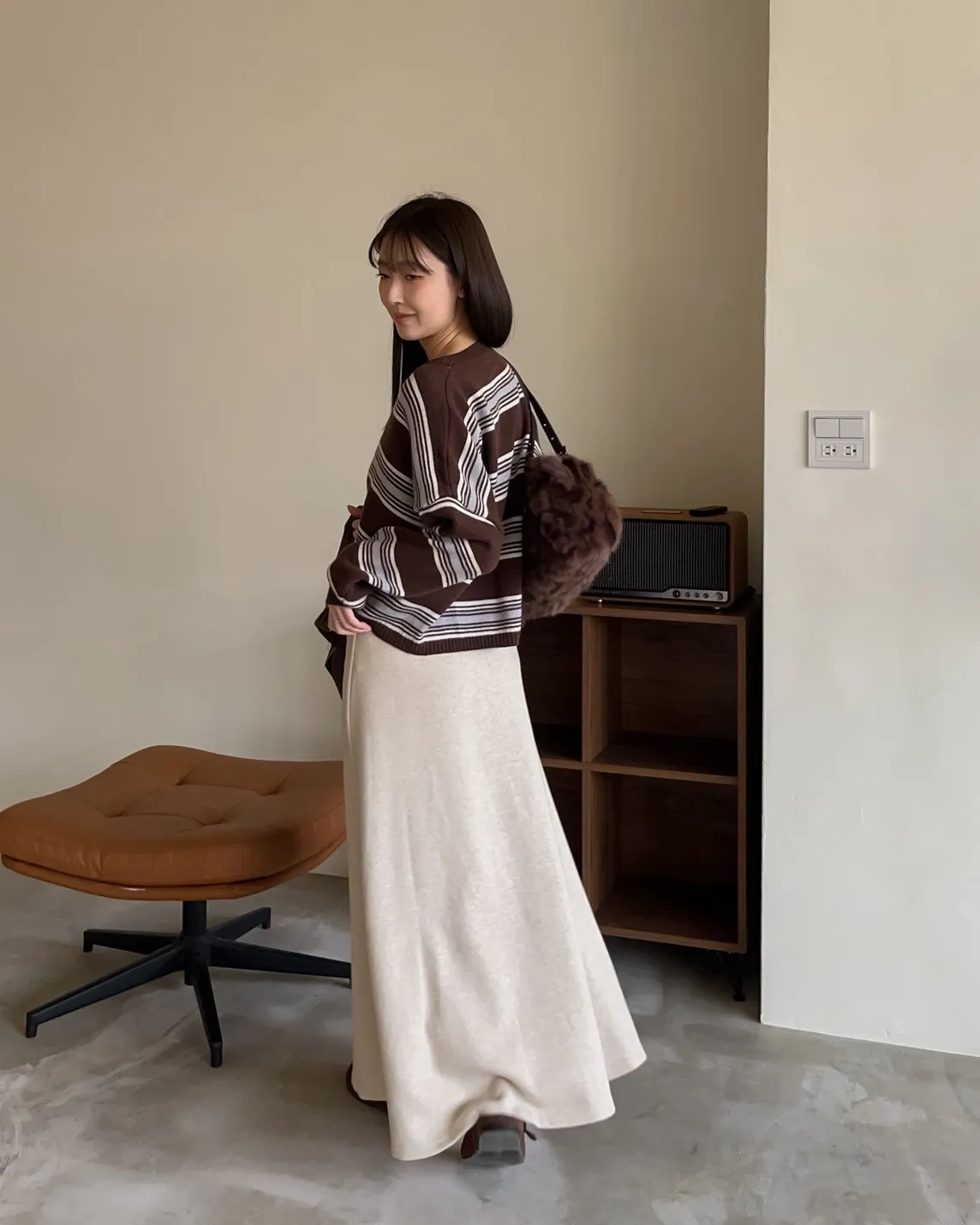 全鬆緊 建議尺寸S-L 無口袋 無內裡 魚尾裙擺 毛呢無彈性 顏色適合秋冬好搭!