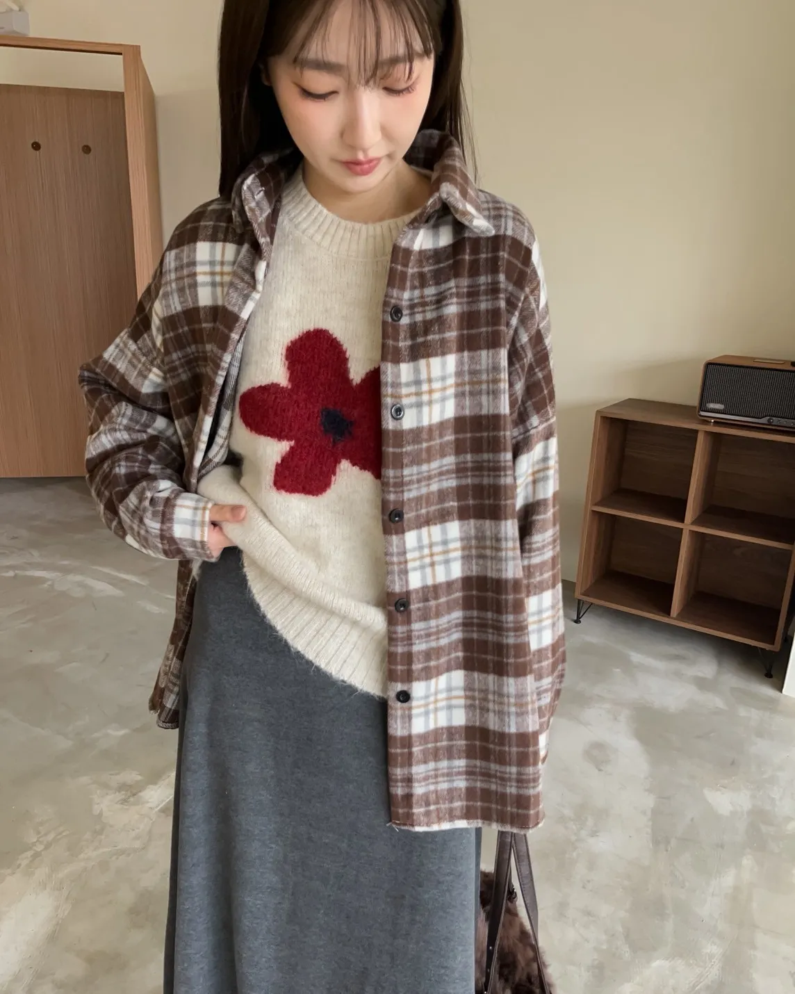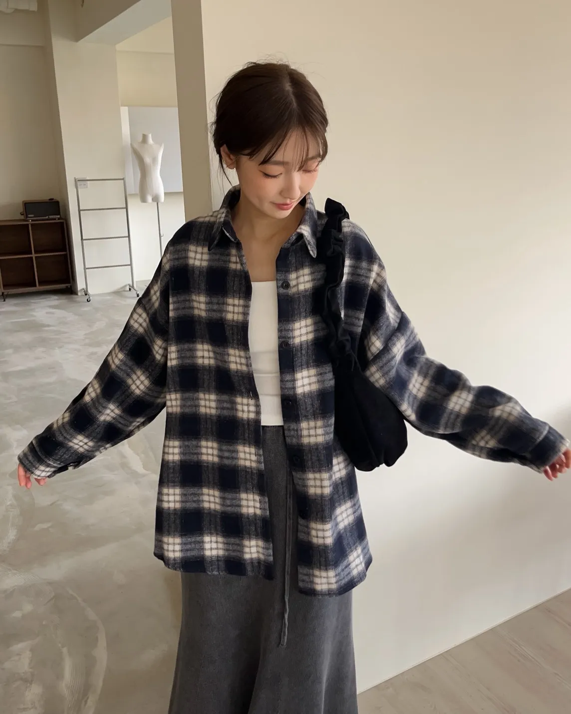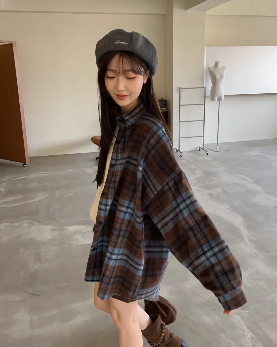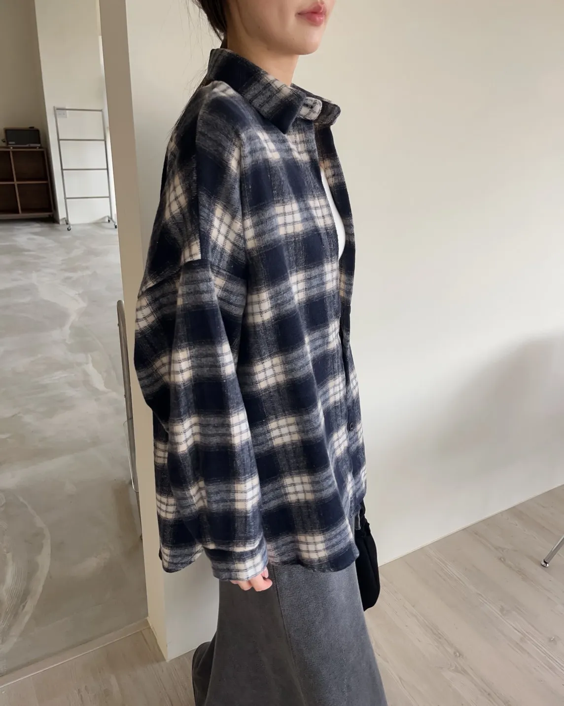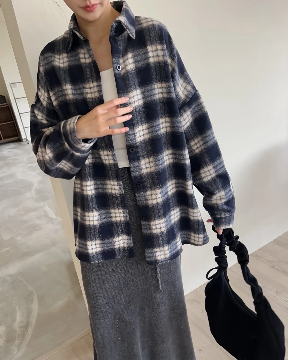 W0003格子控!!大件圓弧絨毛襯衫(淺咖啡/深咖啡/深灰)