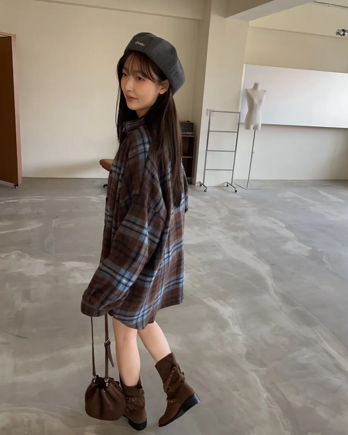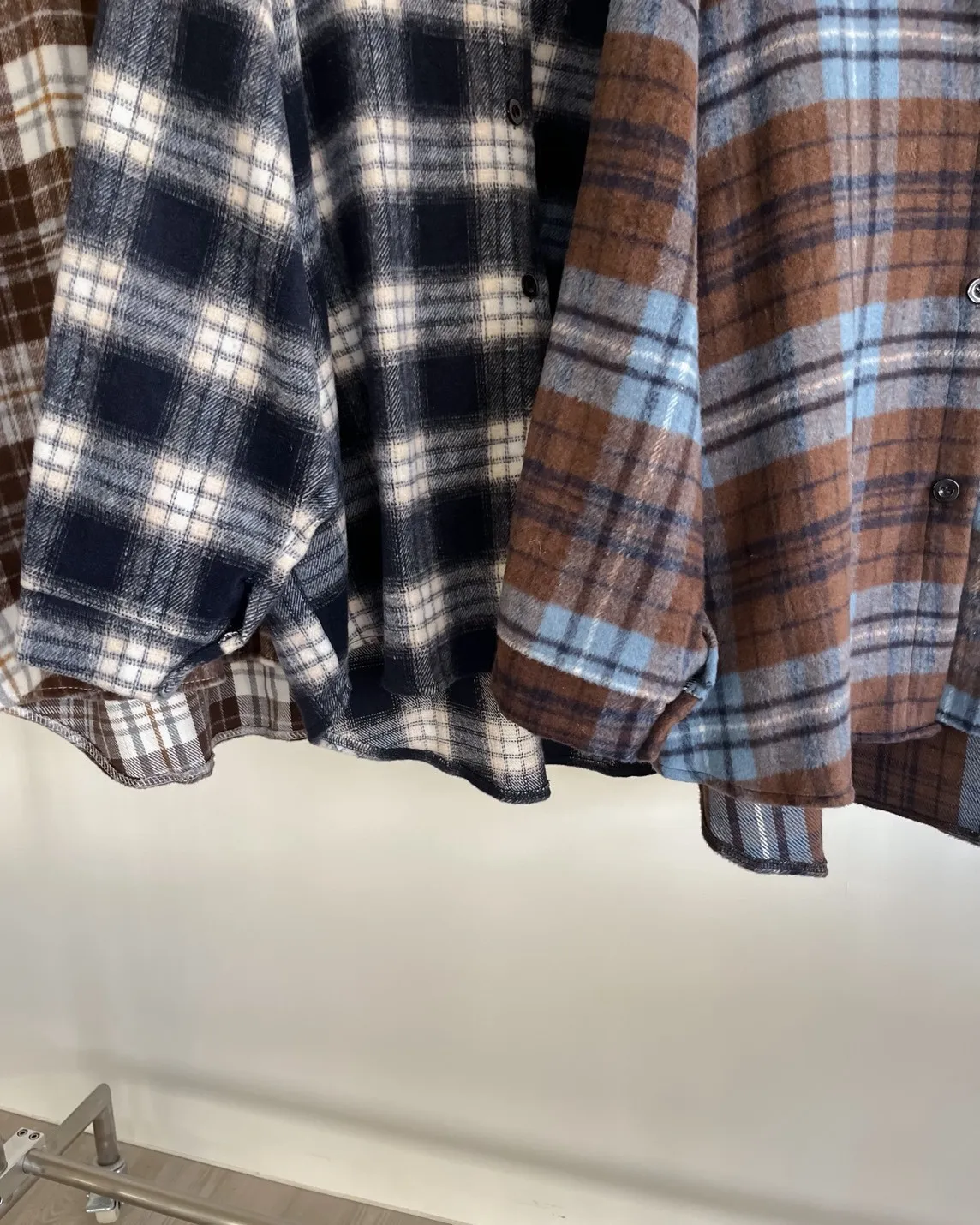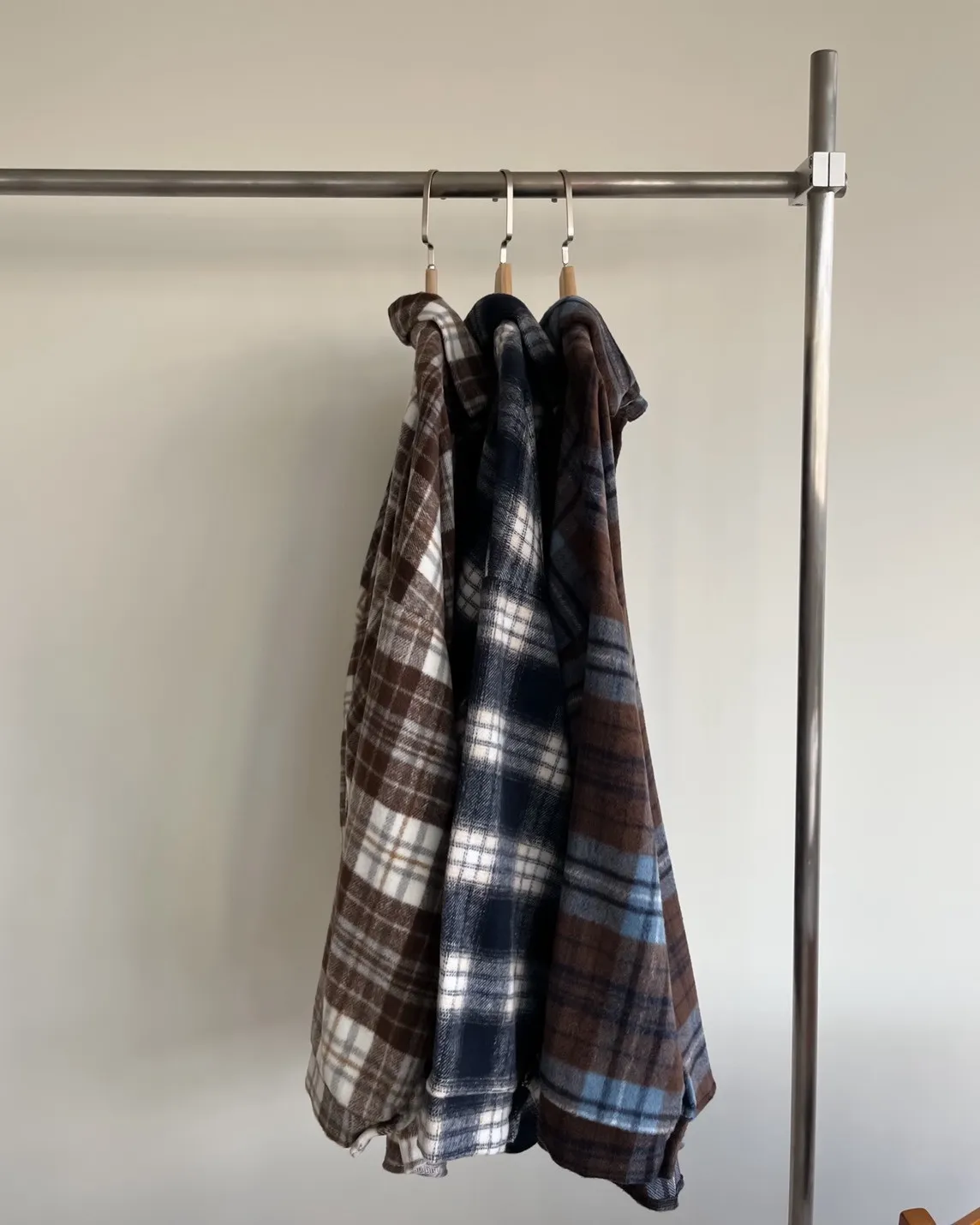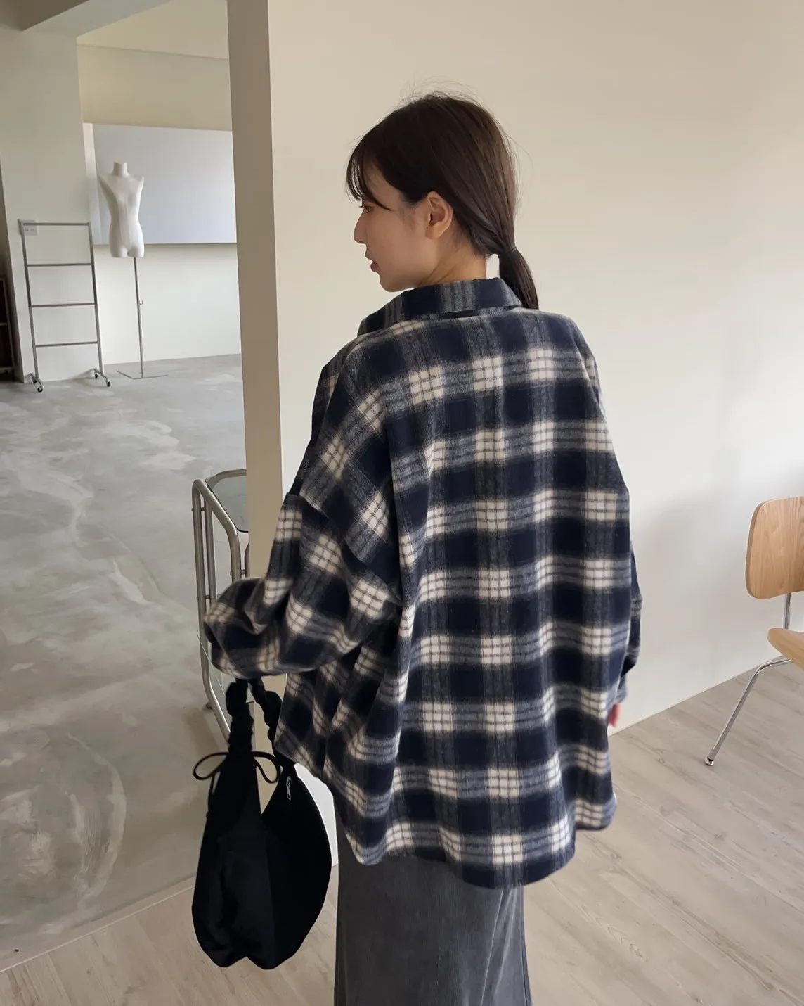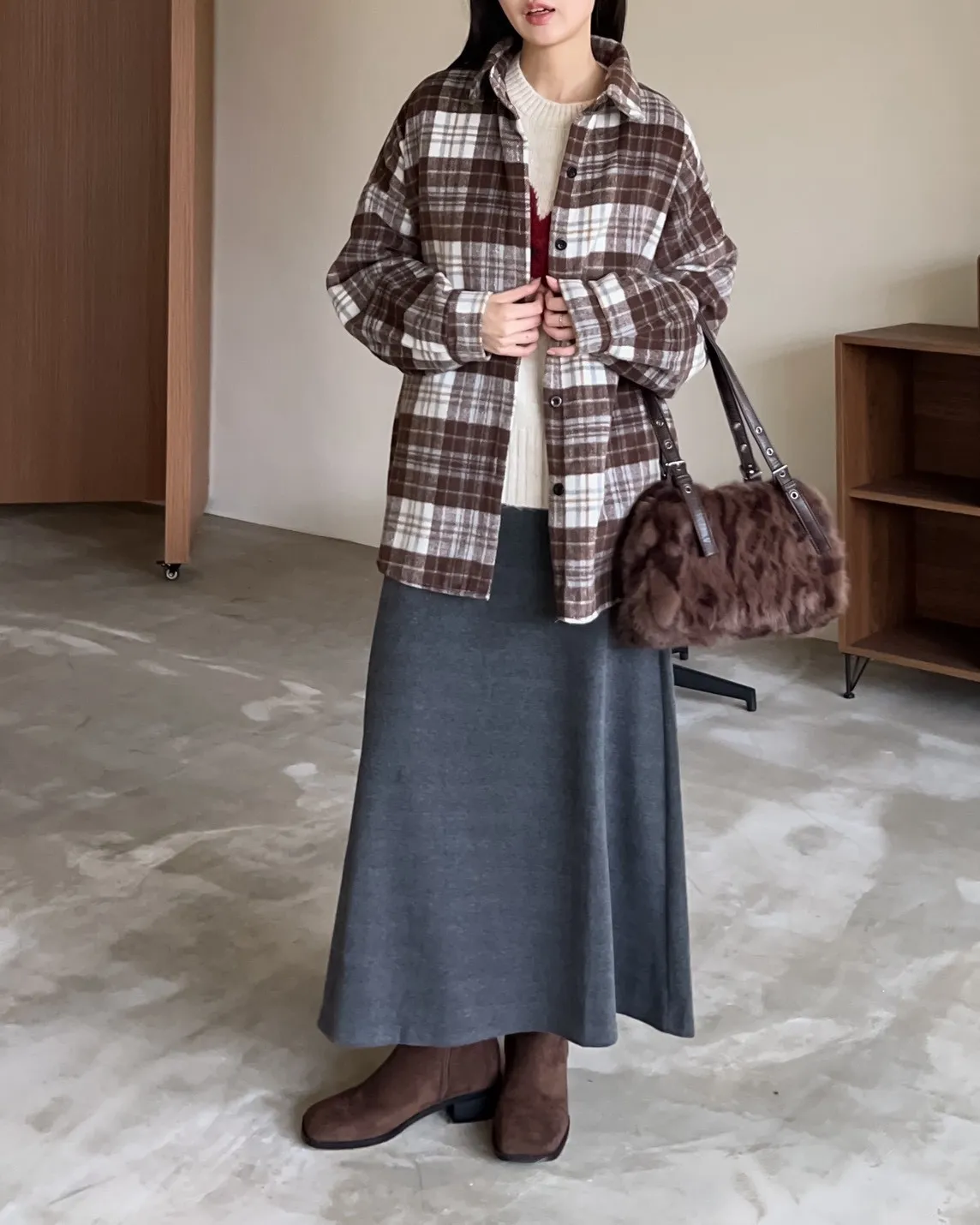 W0003格子控!!大件圓弧絨毛襯衫(淺咖啡/深咖啡/深灰)