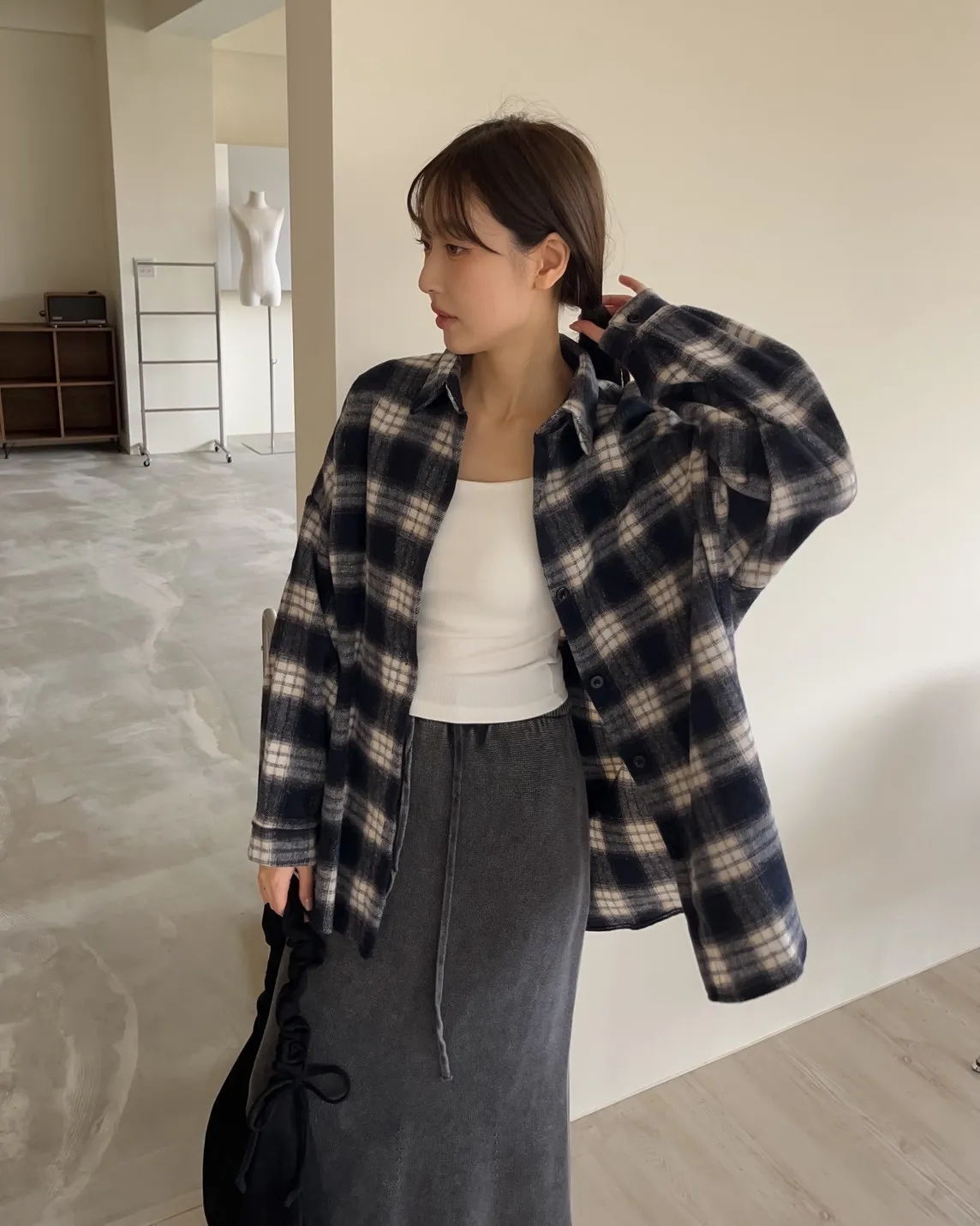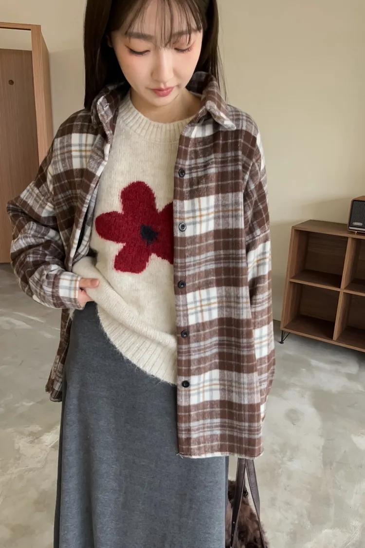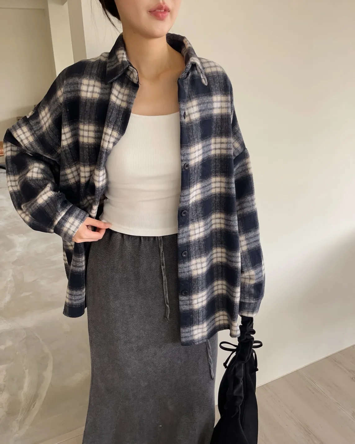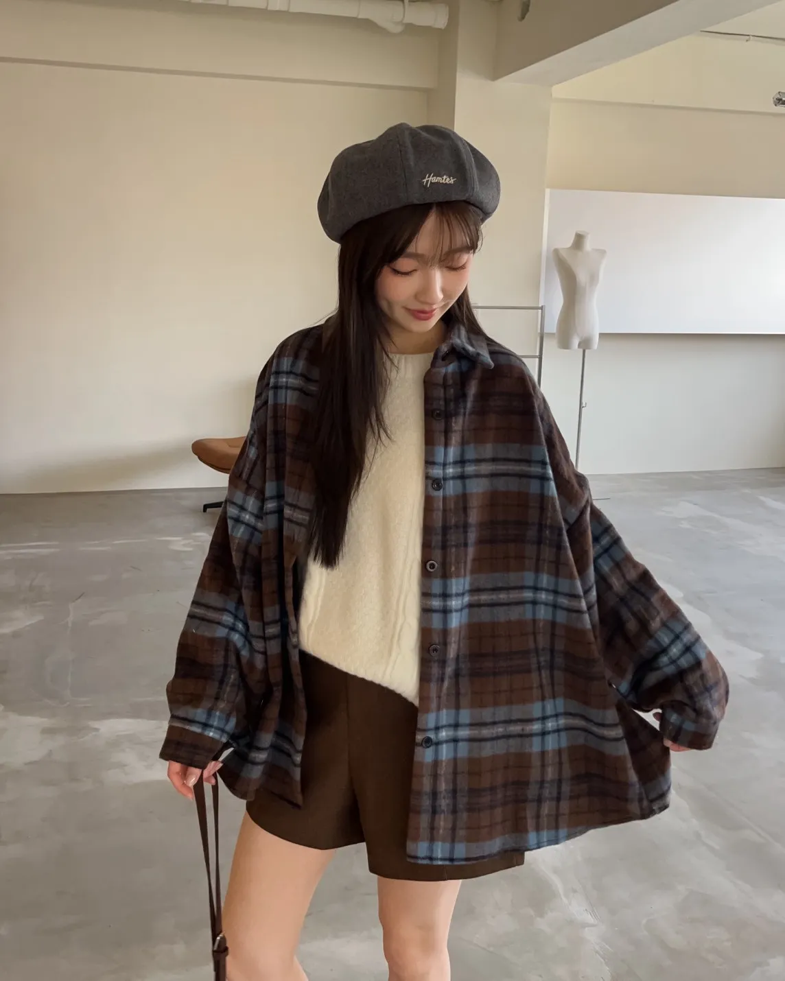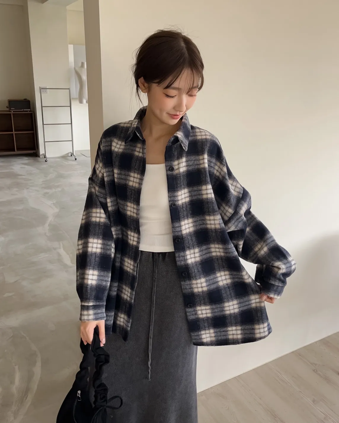 W0003格子控!!大件圓弧絨毛襯衫(淺咖啡/深咖啡/深灰)