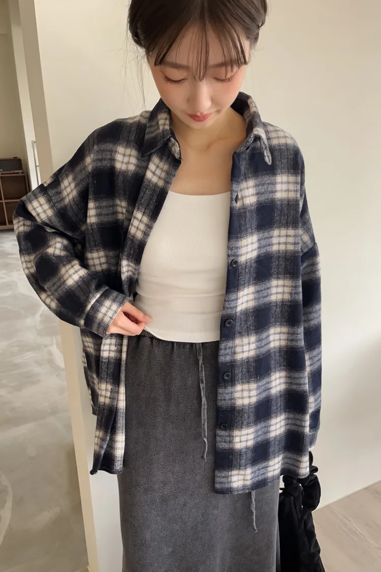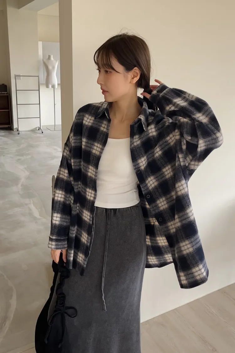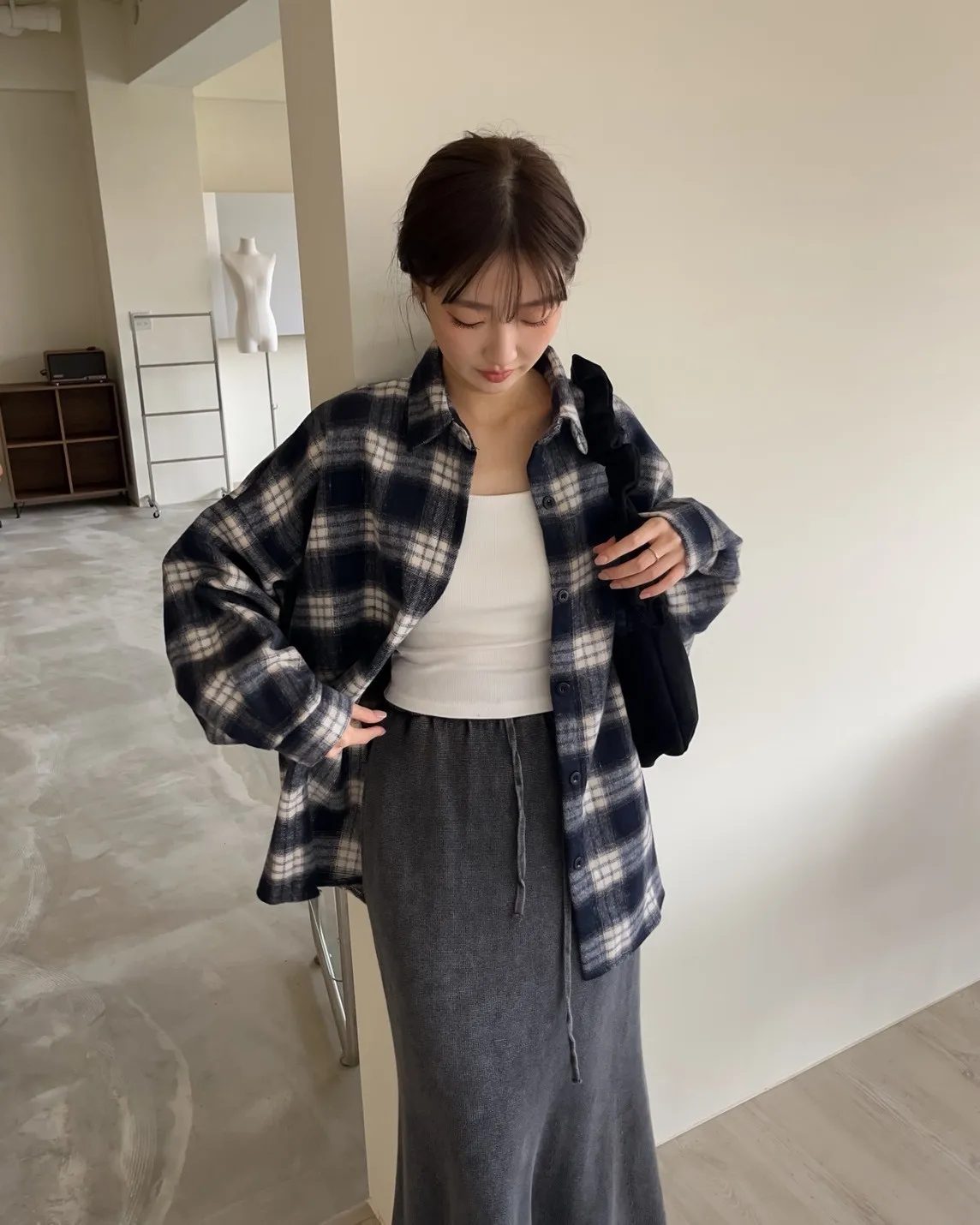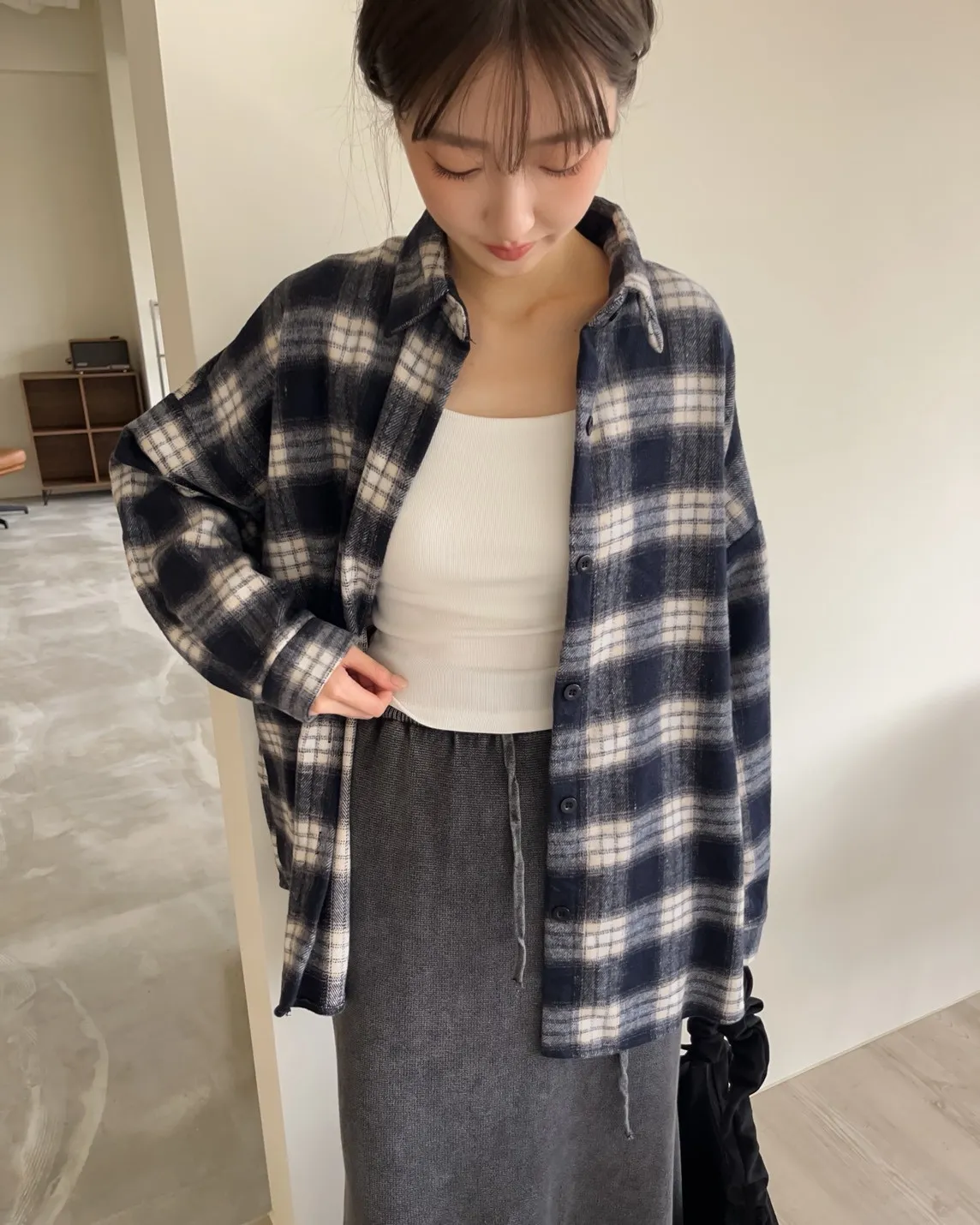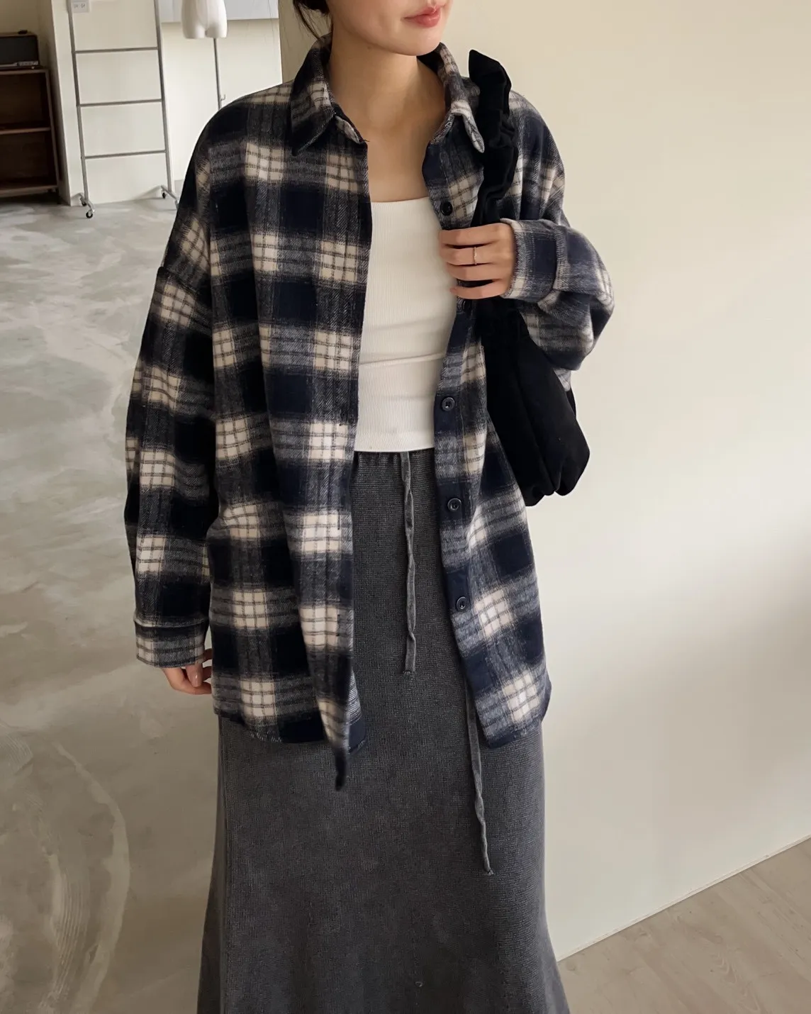 W0003格子控!!大件圓弧絨毛襯衫(淺咖啡/深咖啡/深灰)