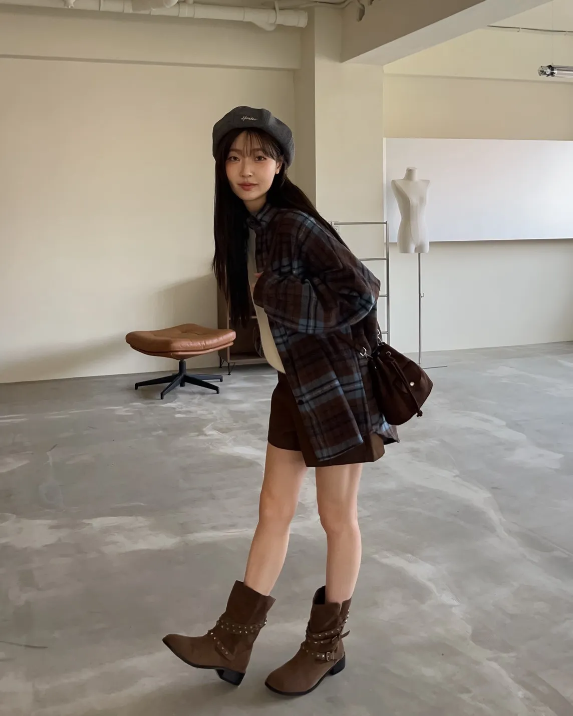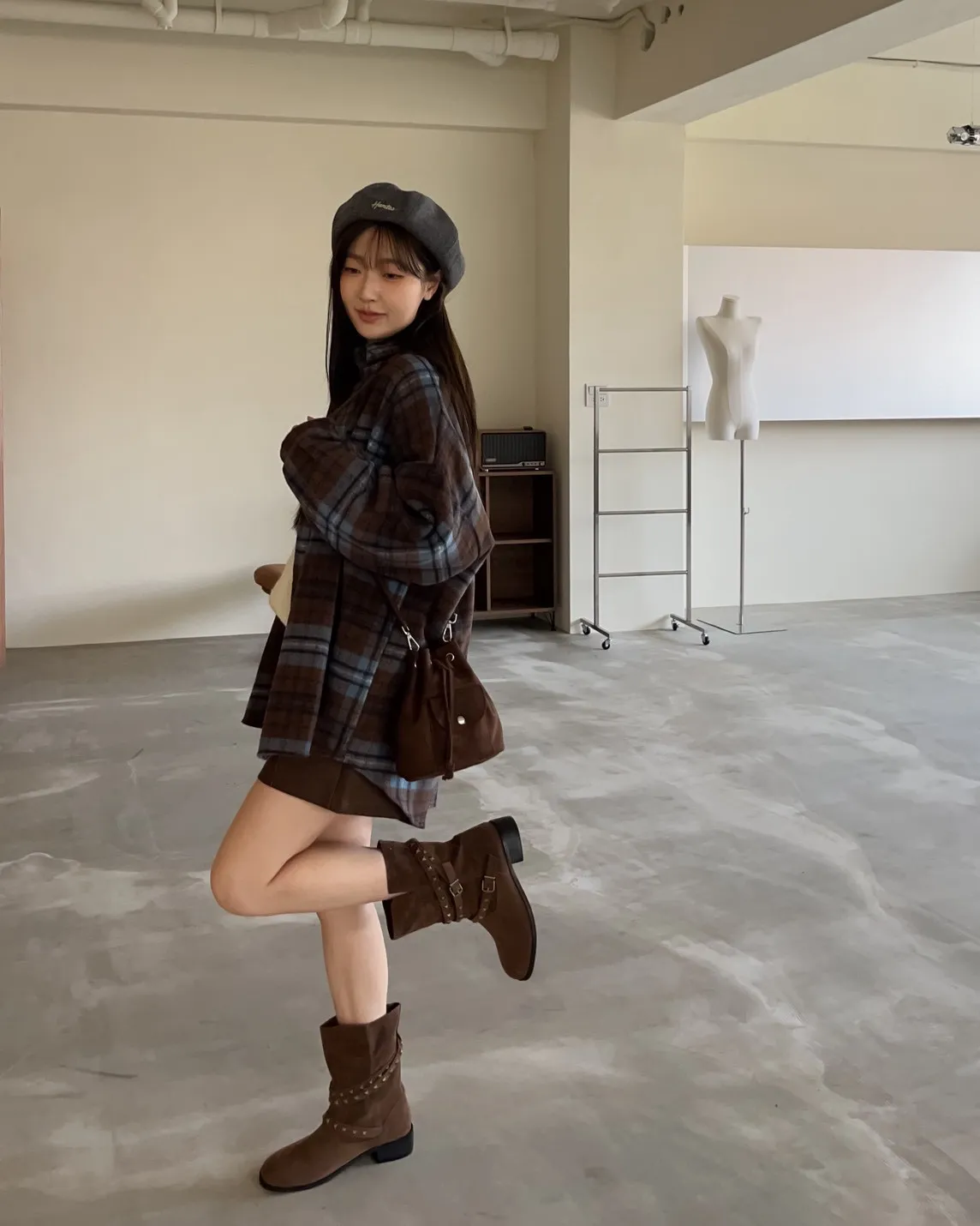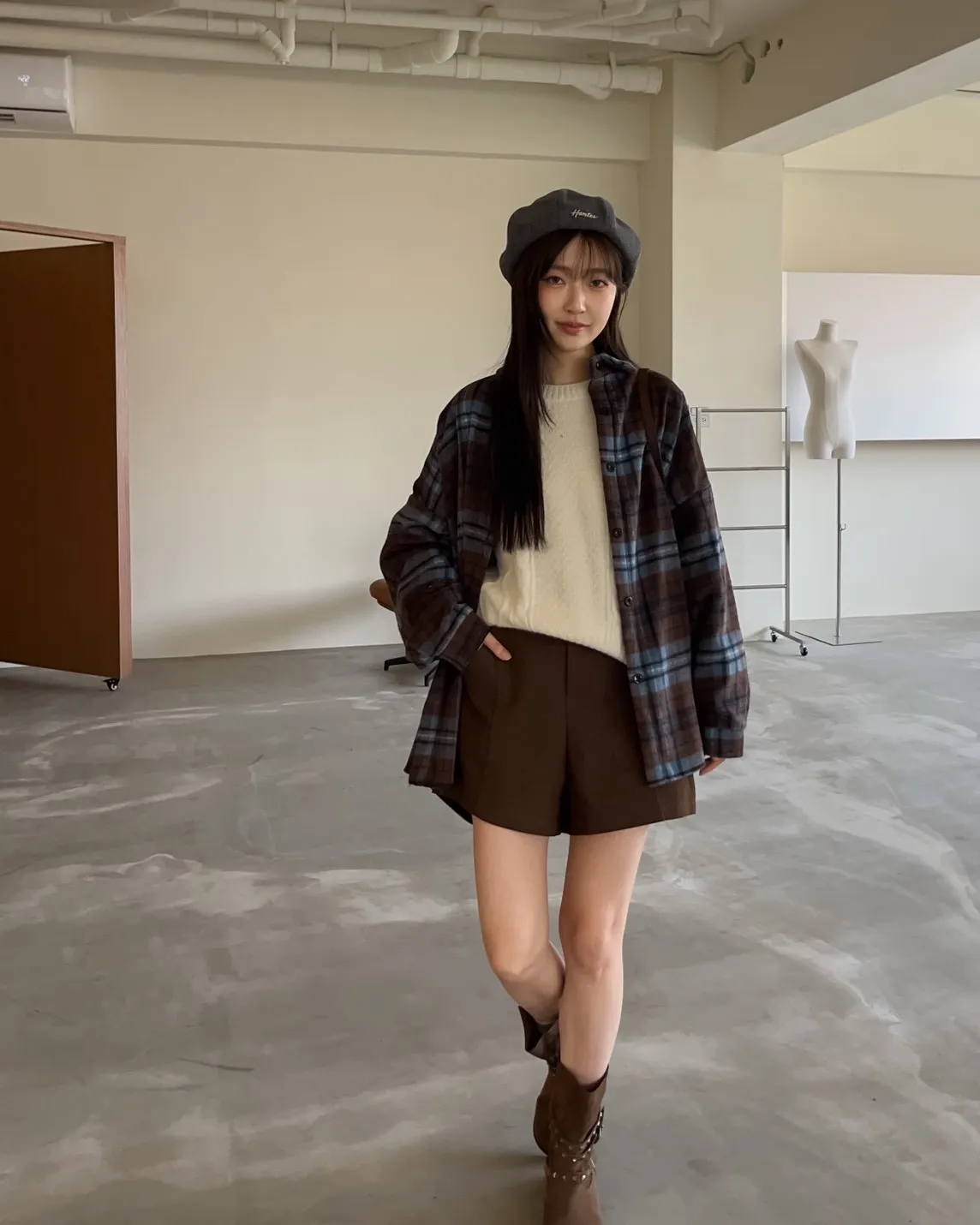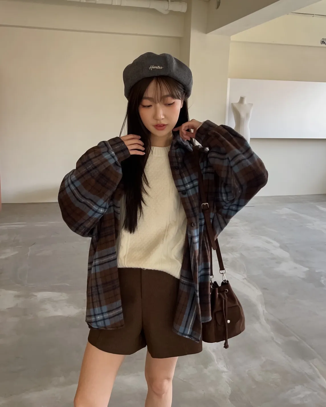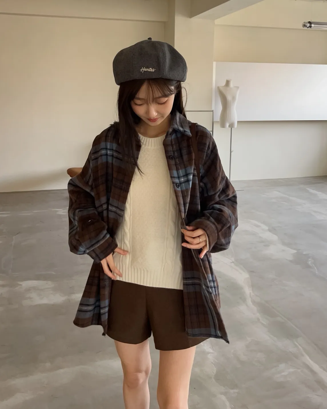 W0003格子控!!大件圓弧絨毛襯衫(淺咖啡/深咖啡/深灰)