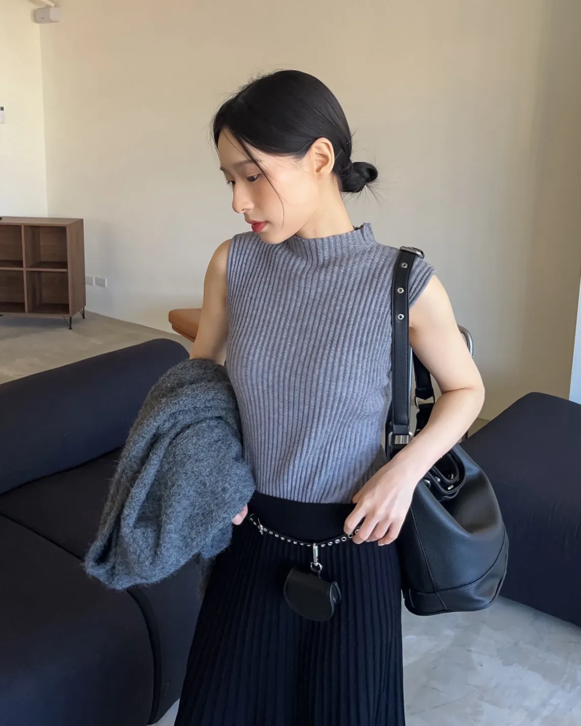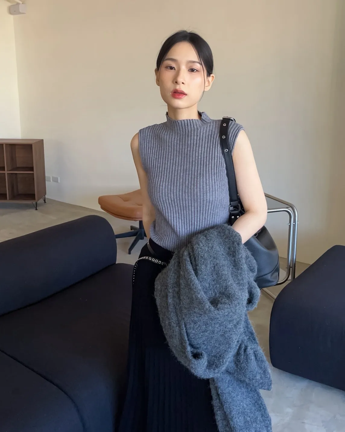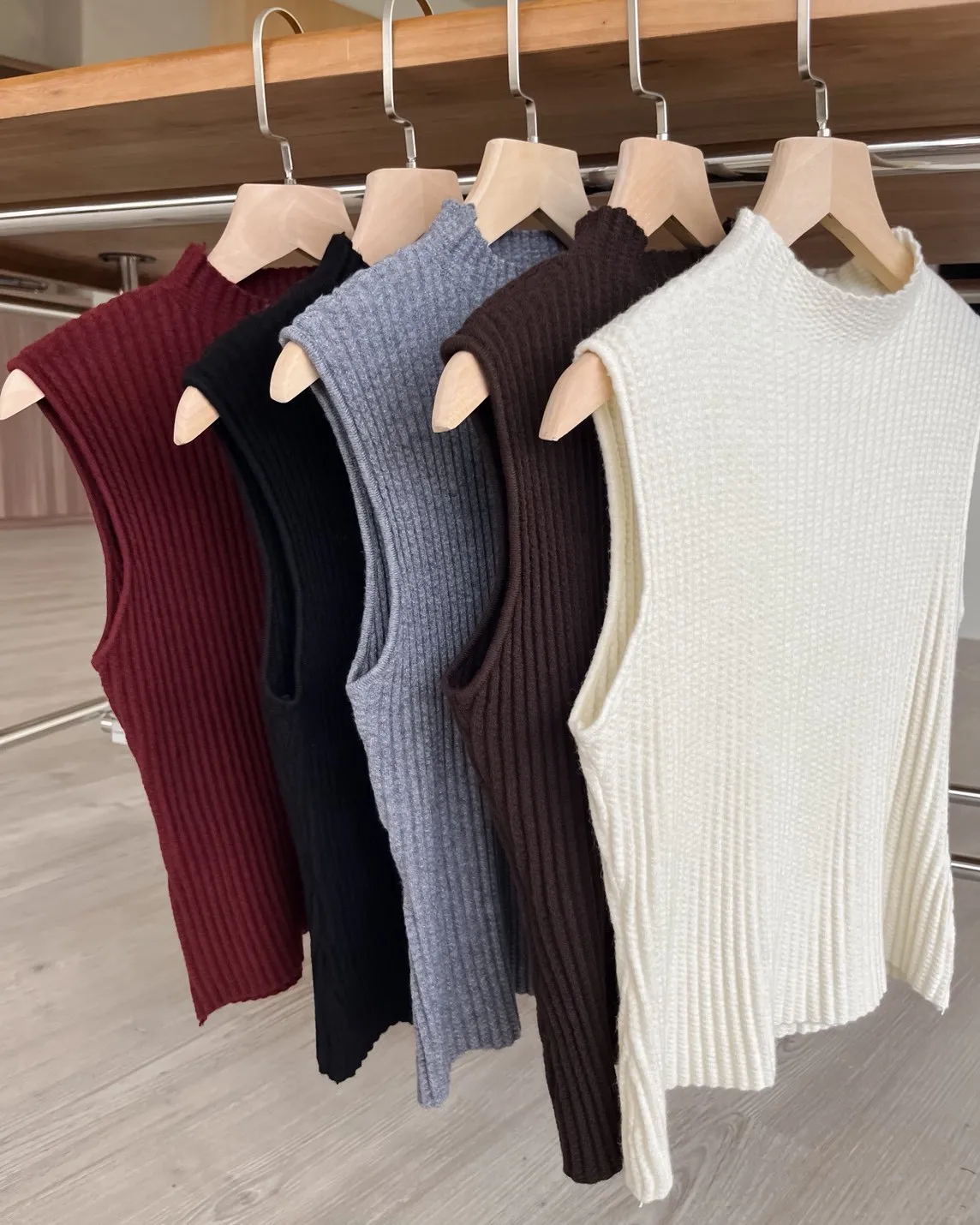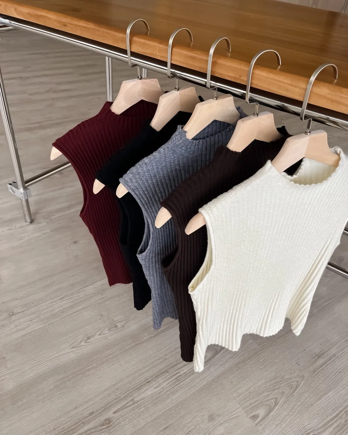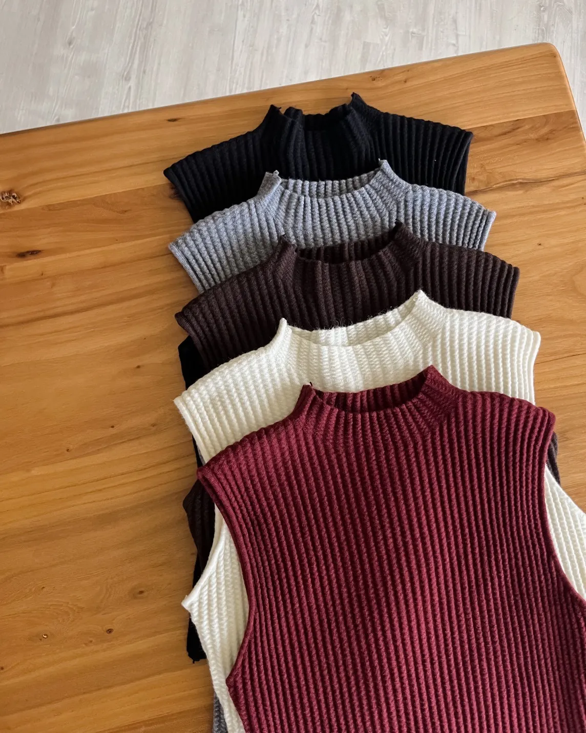 W0022螺旋麵坑紋立領針織背心(米/灰/咖啡/紅/黑)
