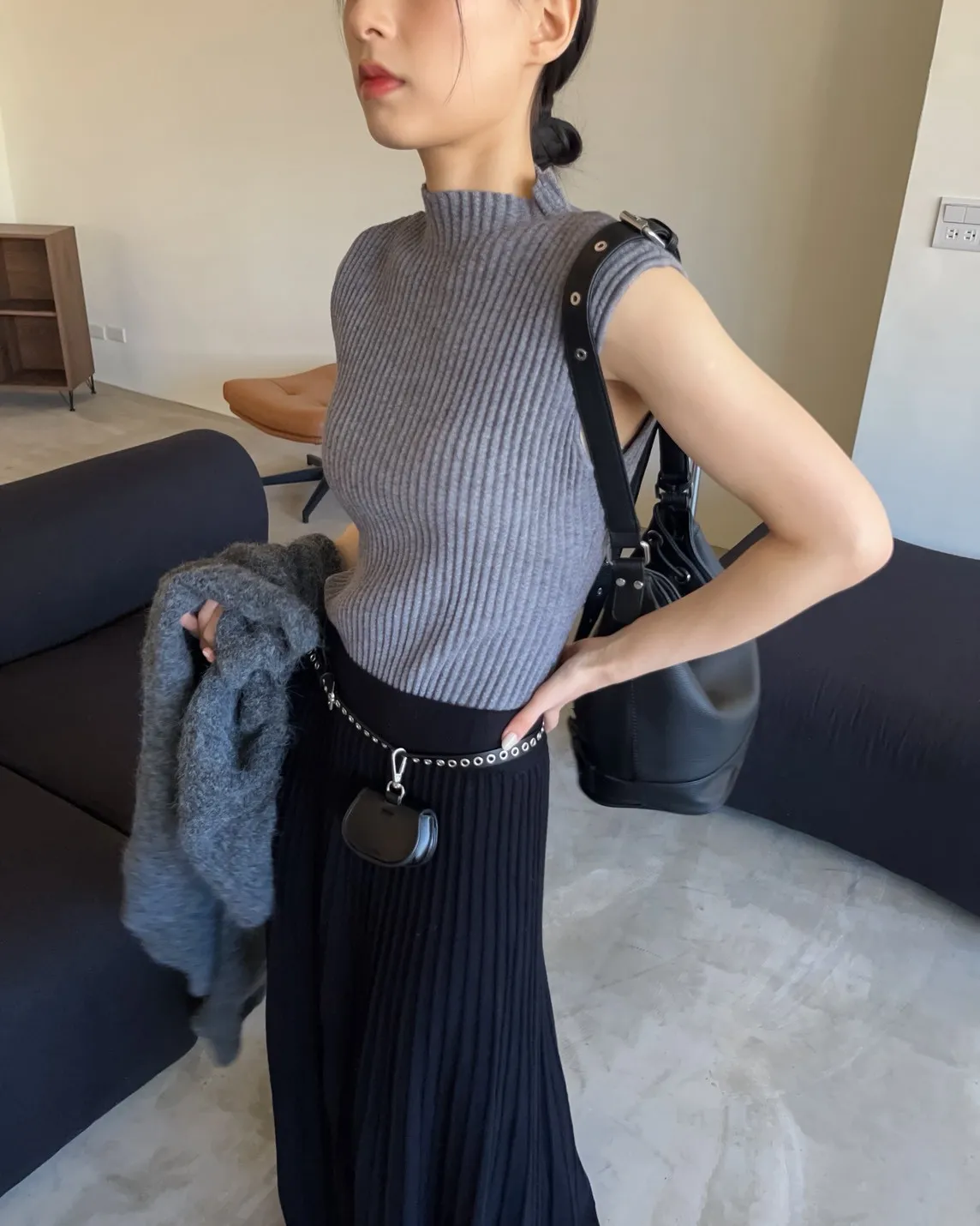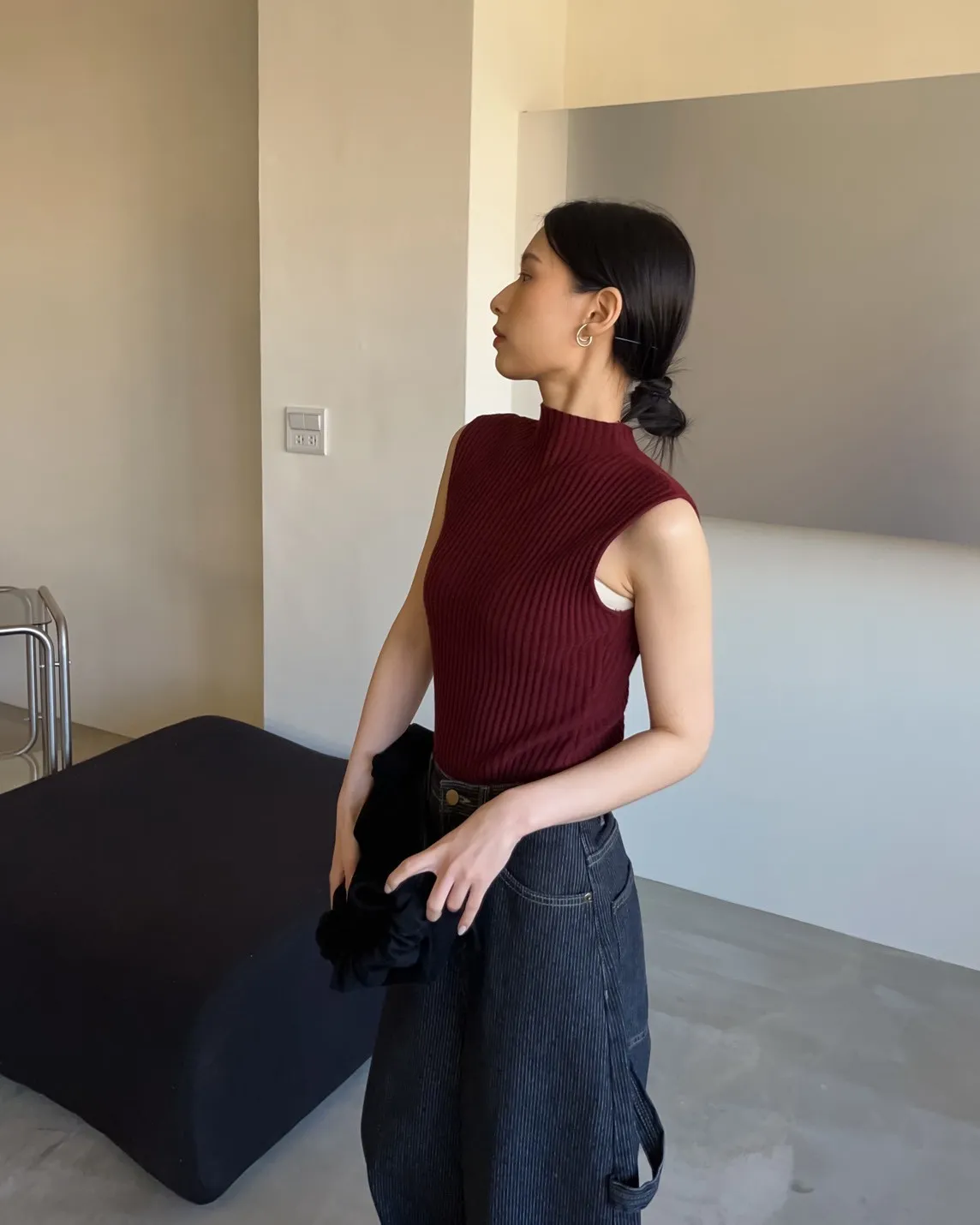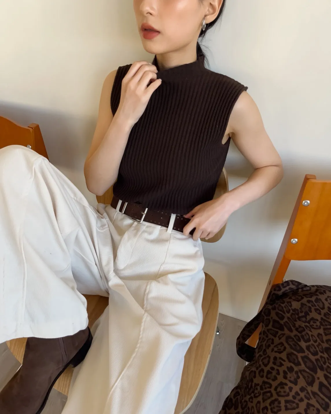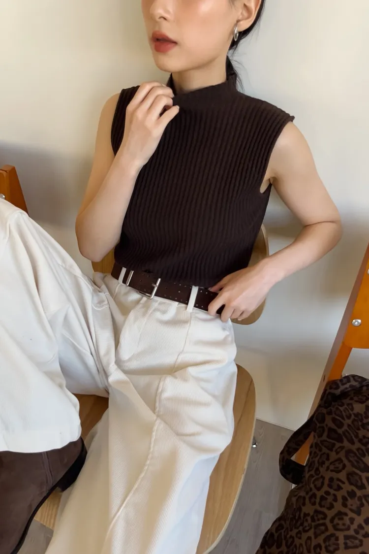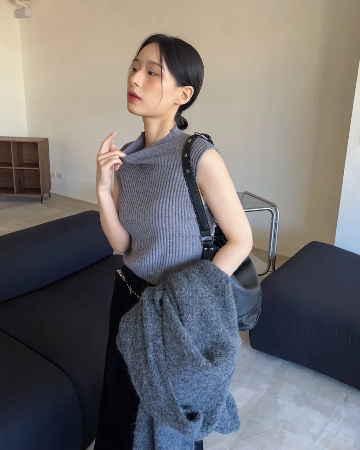 W0022螺旋麵坑紋立領針織背心(米/灰/咖啡/紅/黑)