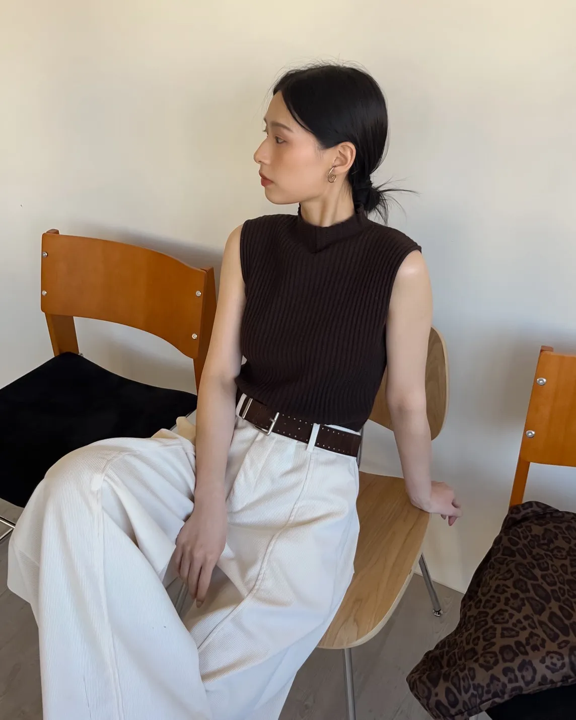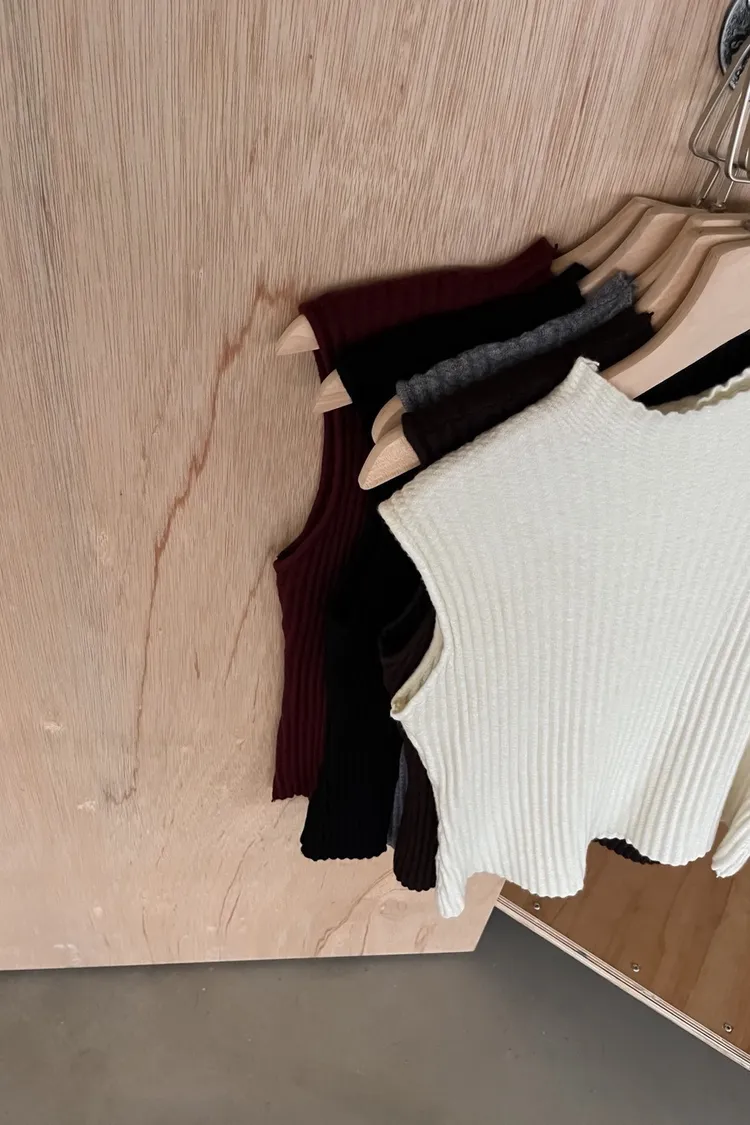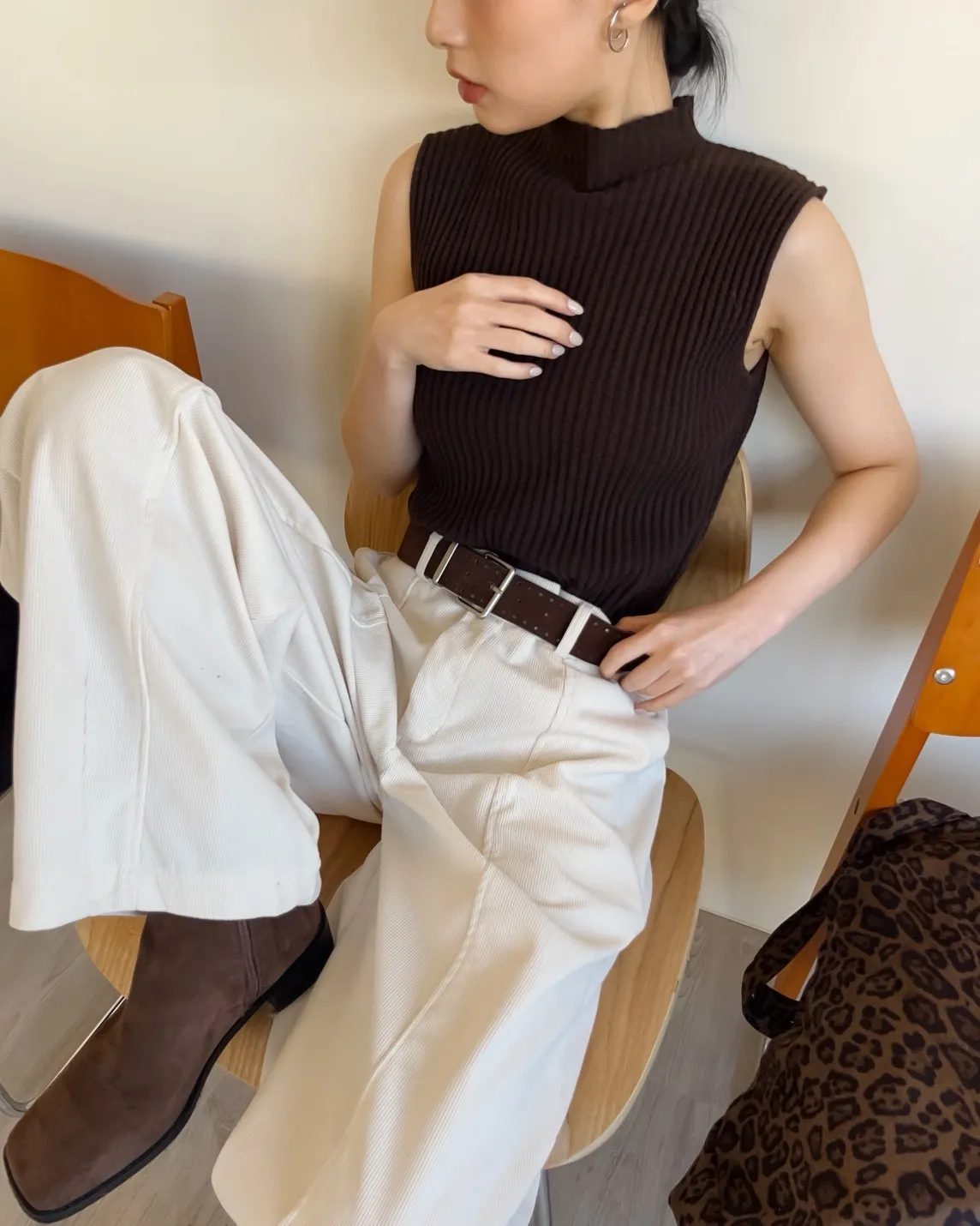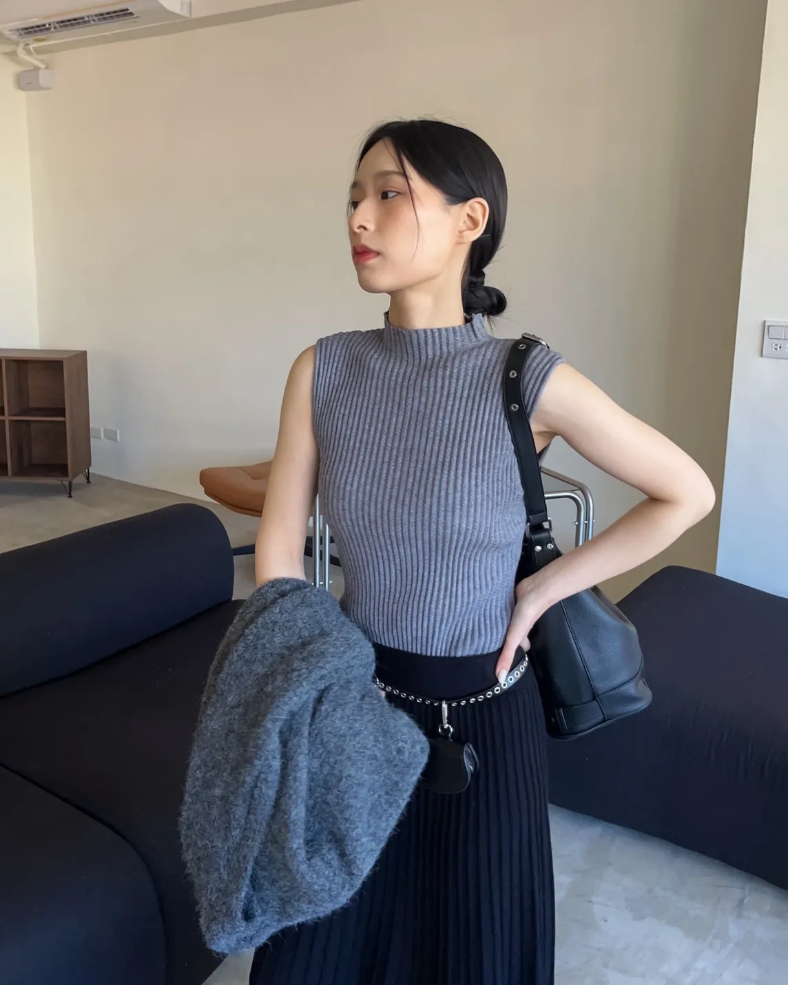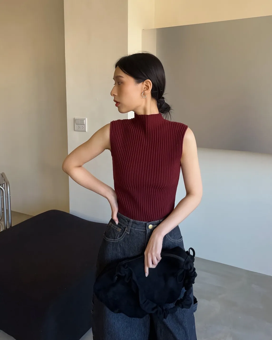 W0022螺旋麵坑紋立領針織背心(米/灰/咖啡/紅/黑)