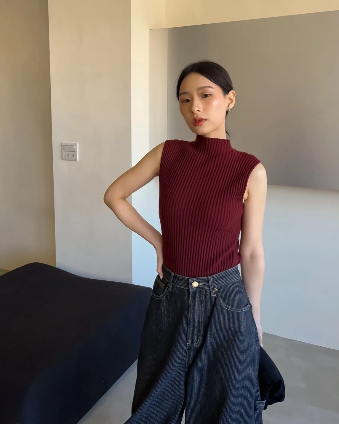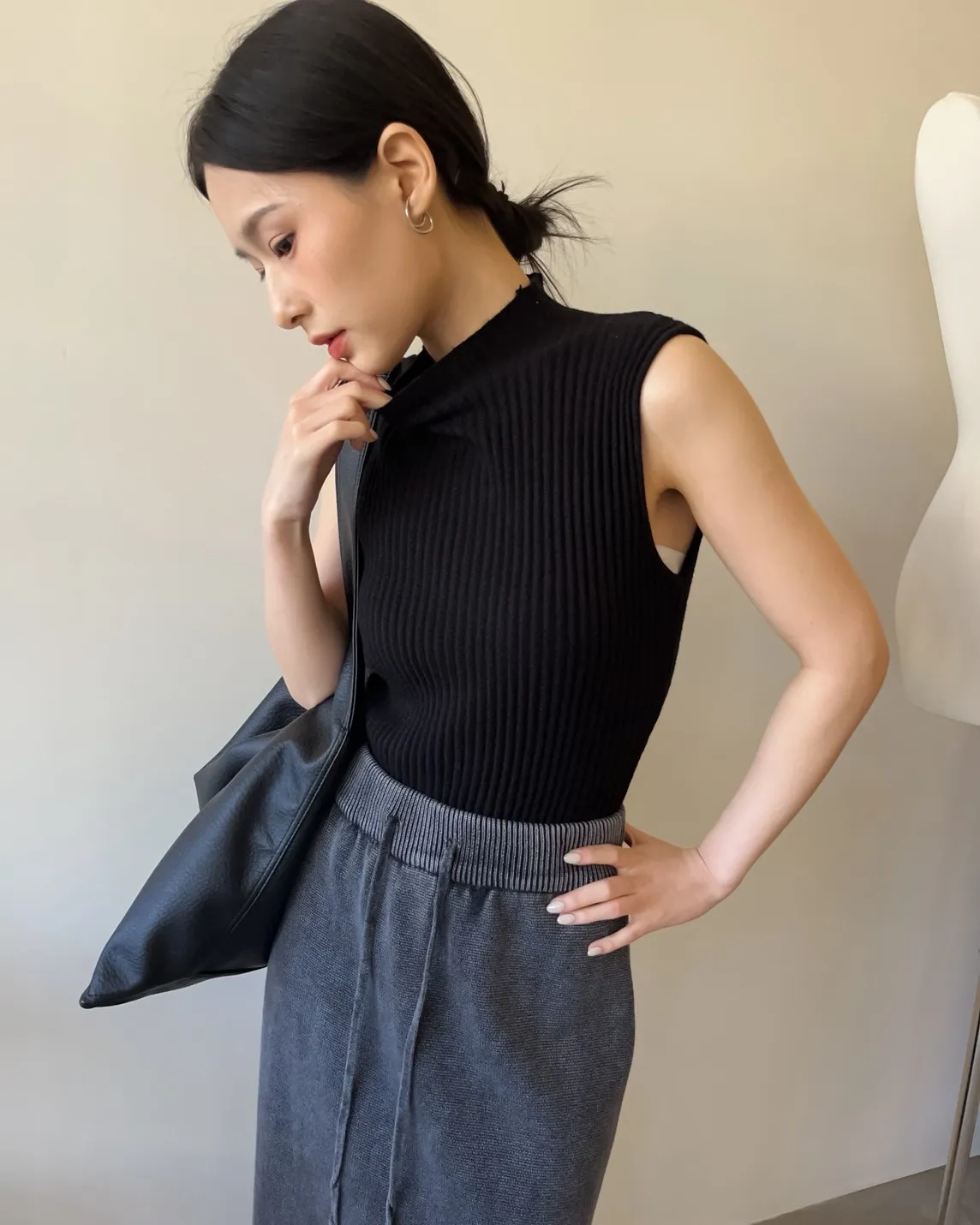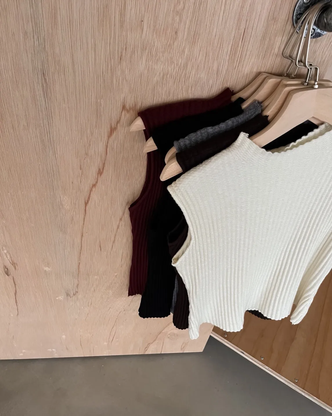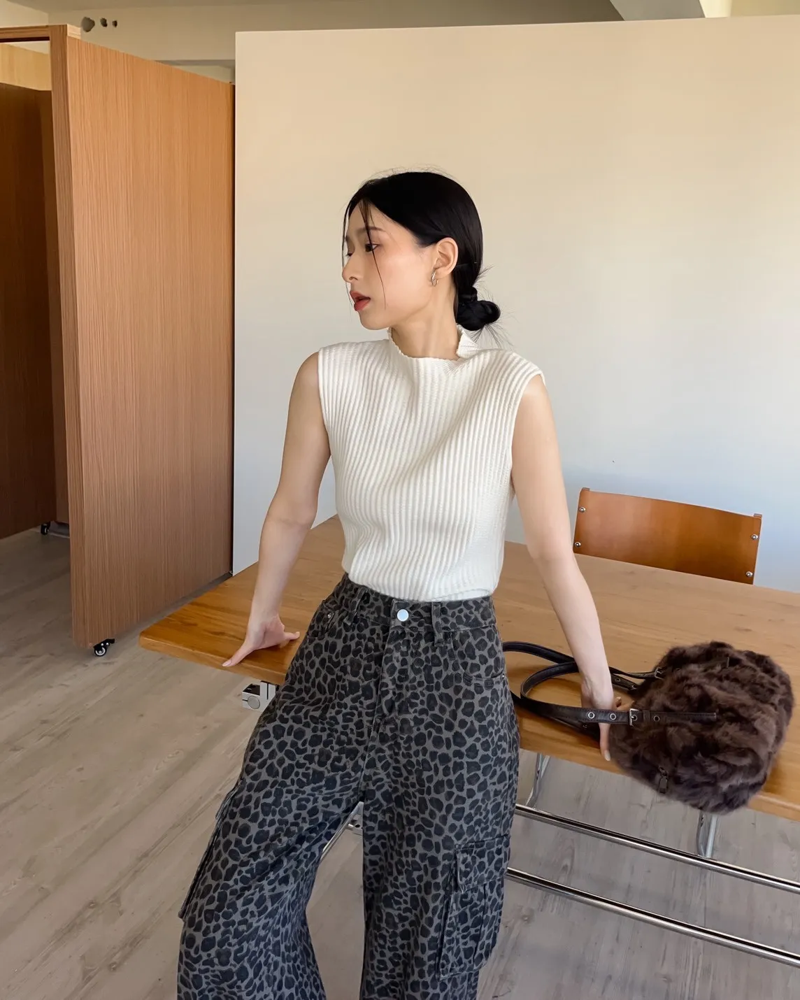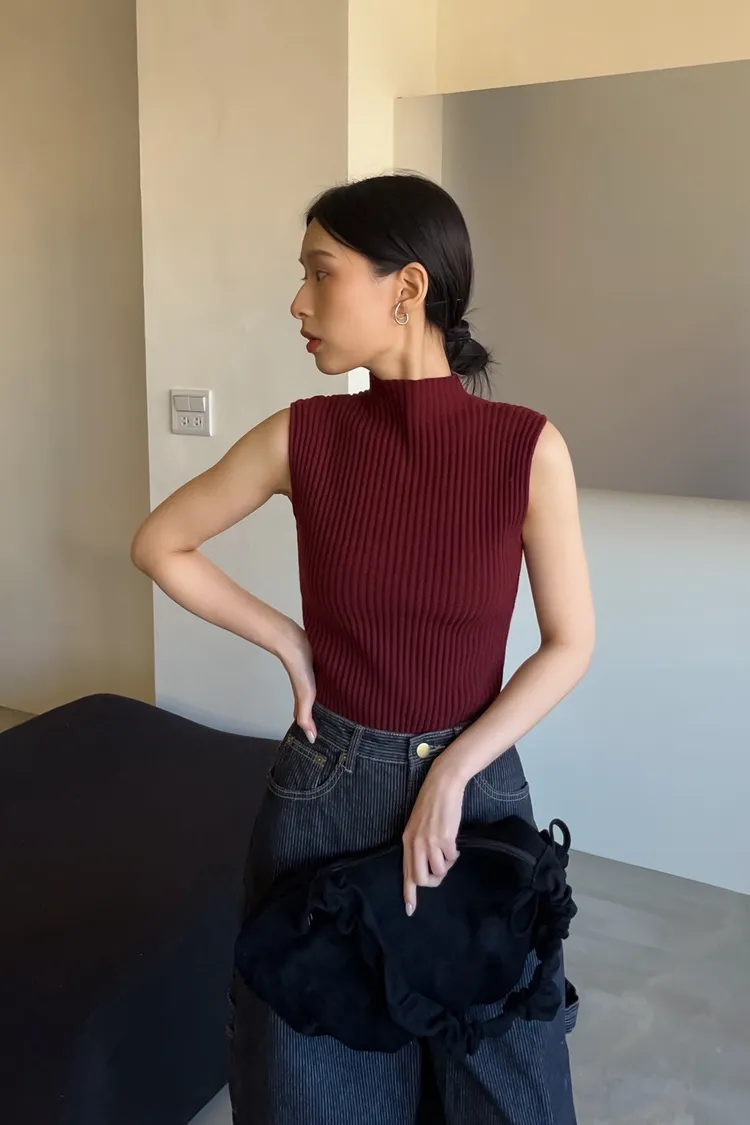 W0022螺旋麵坑紋立領針織背心(米/灰/咖啡/紅/黑)