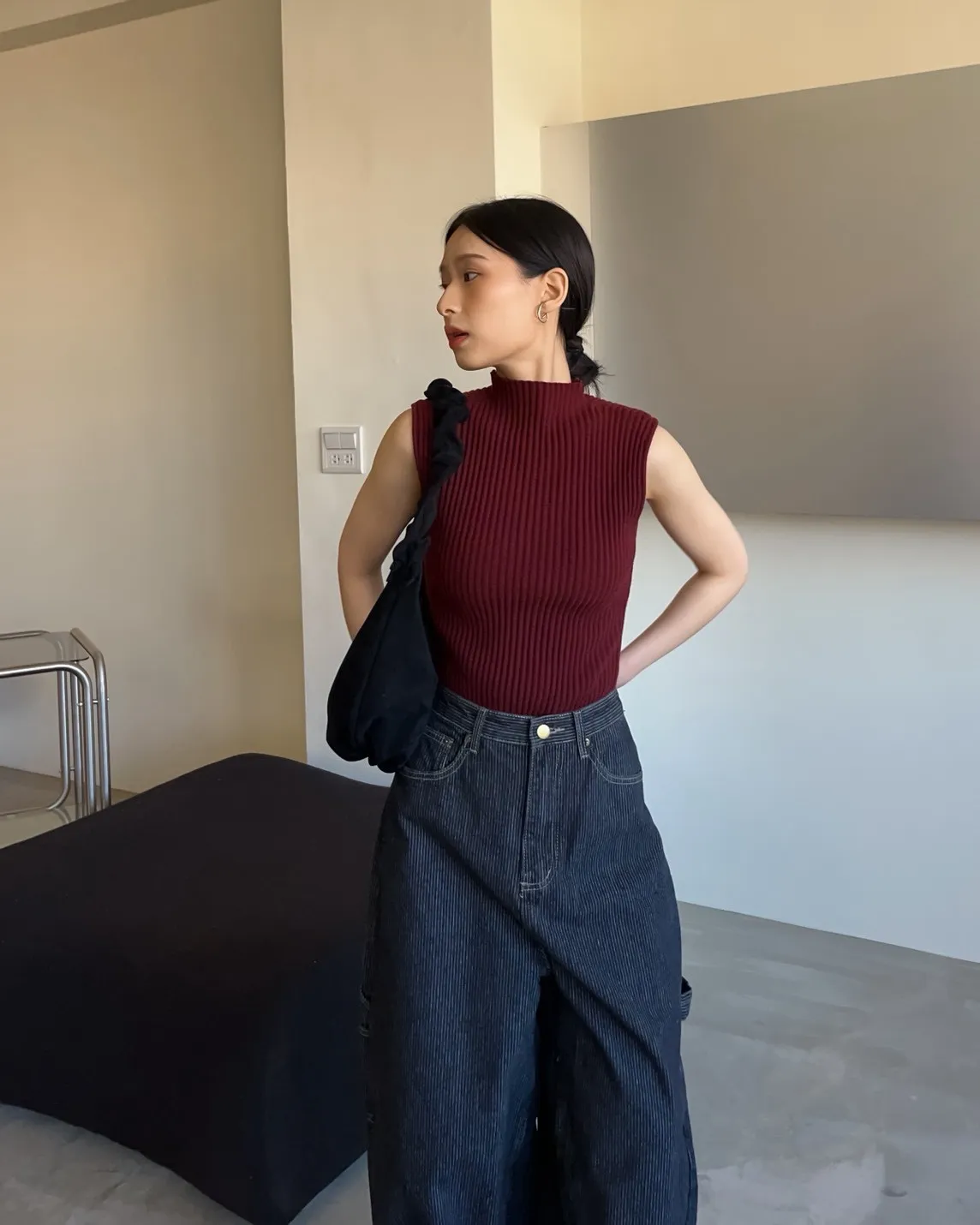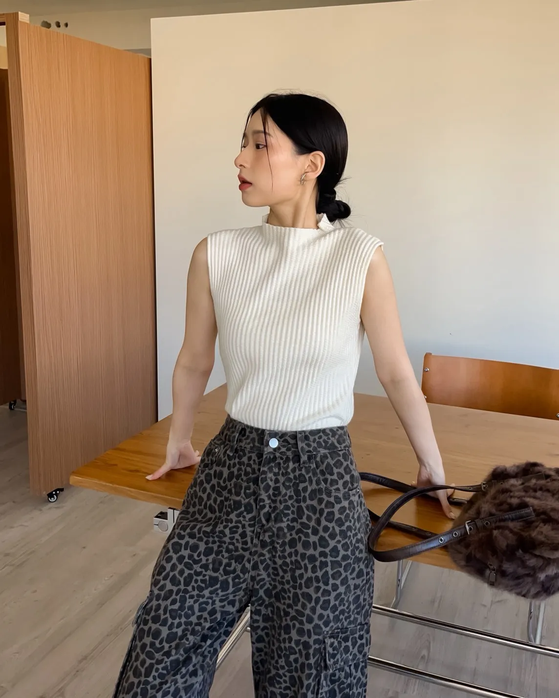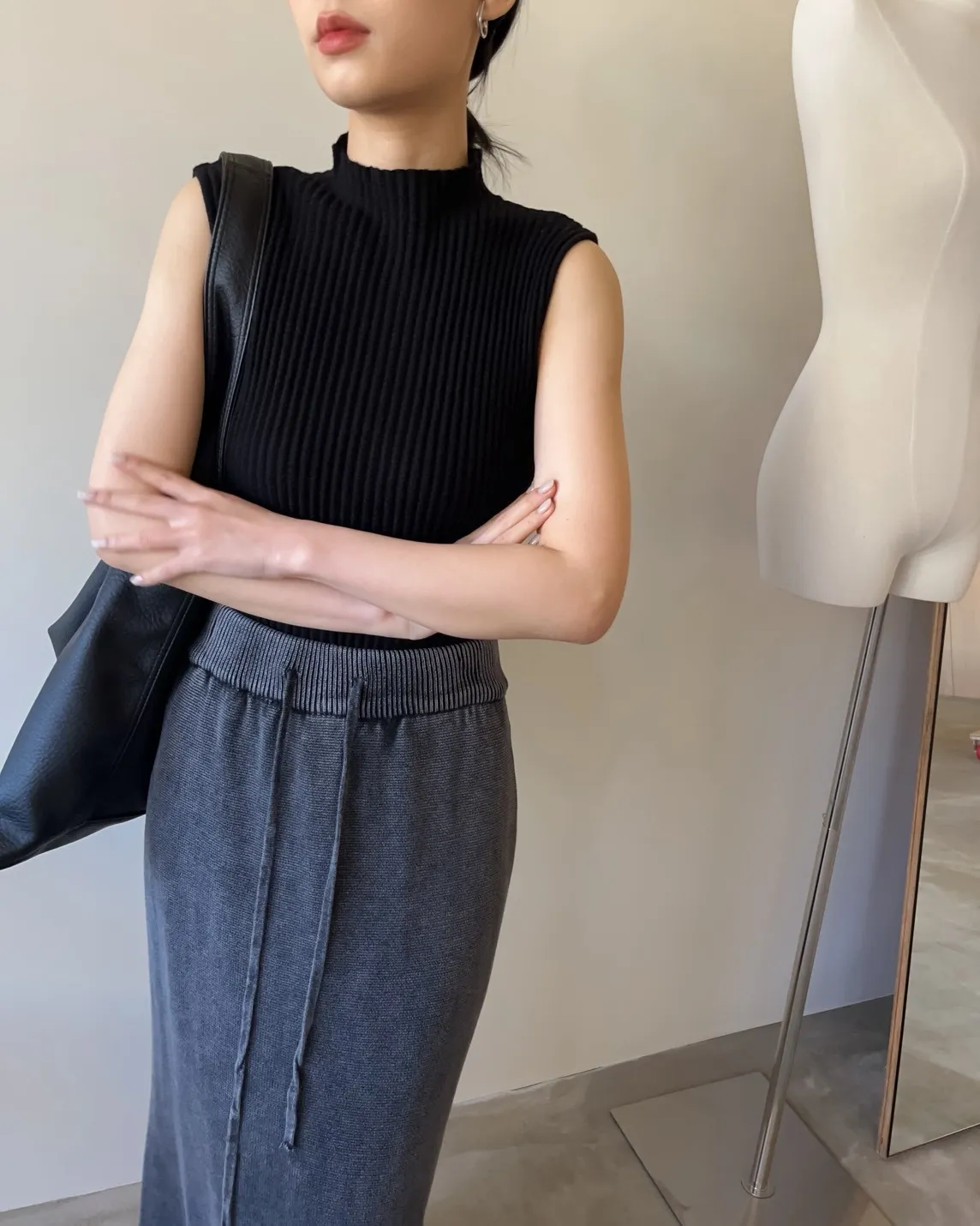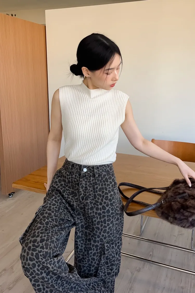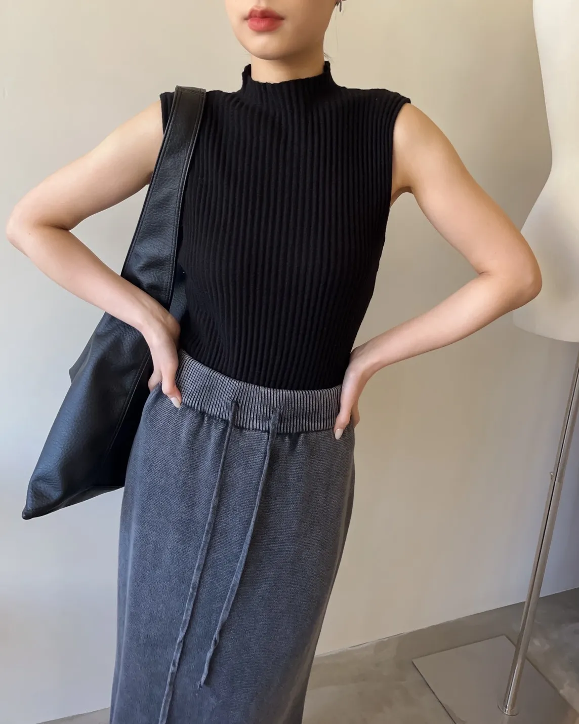 W0022螺旋麵坑紋立領針織背心(米/灰/咖啡/紅/黑)