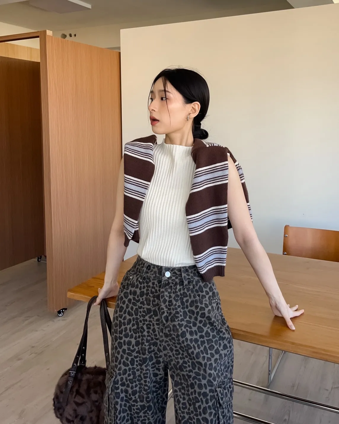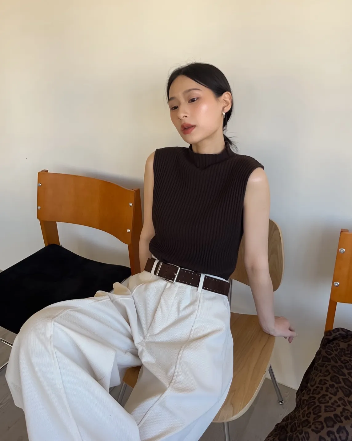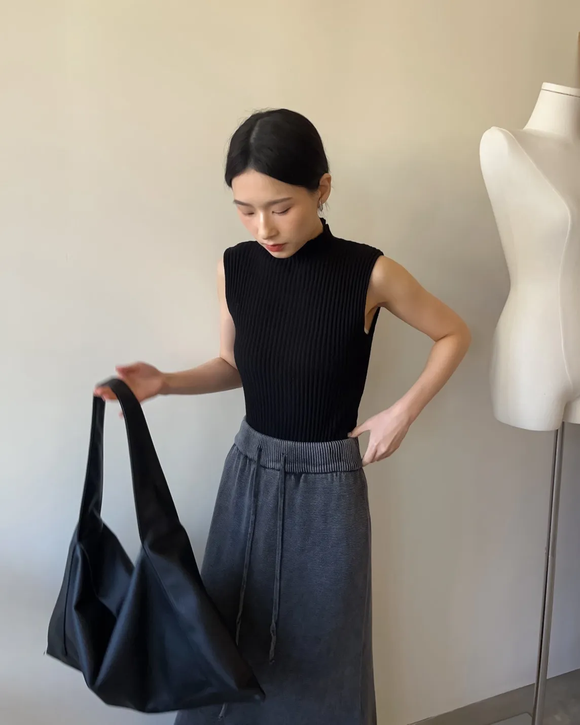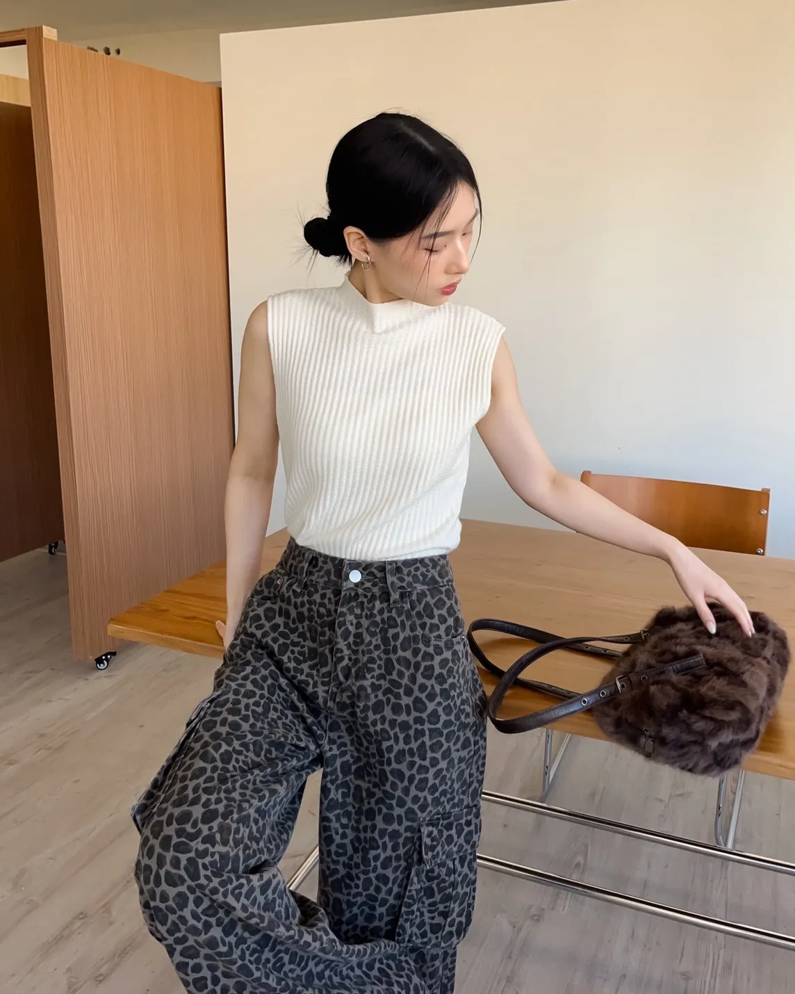 W0022螺旋麵坑紋立領針織背心(米/灰/咖啡/紅/黑)