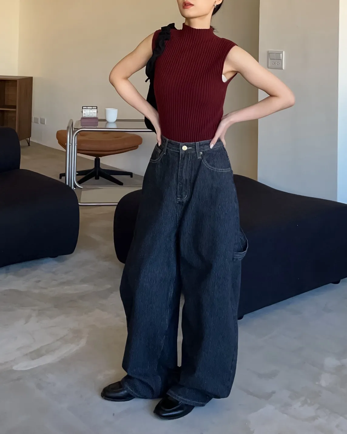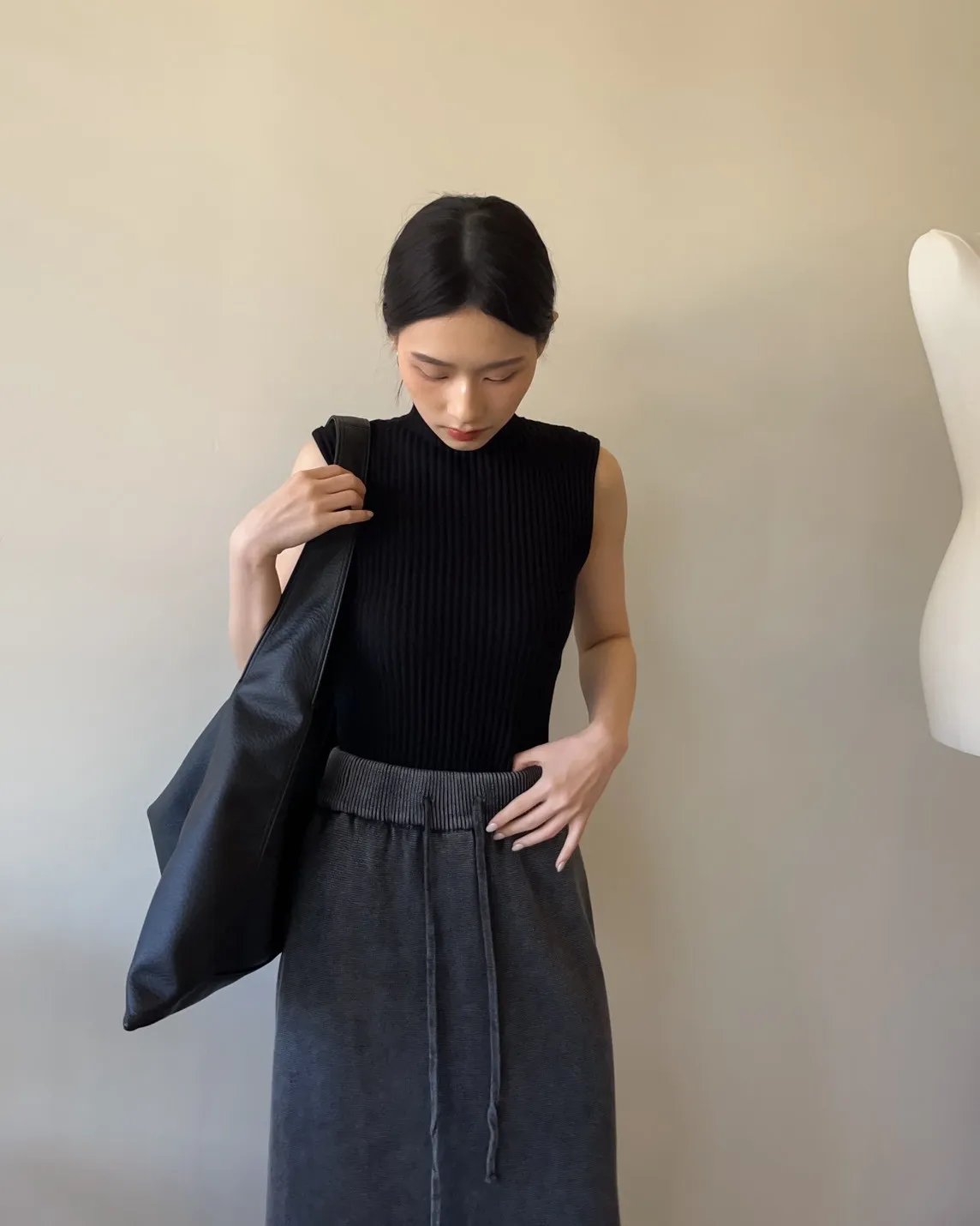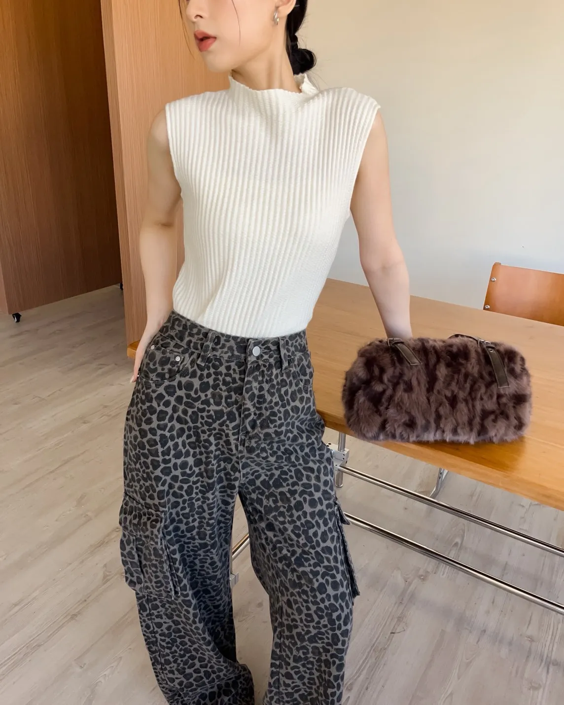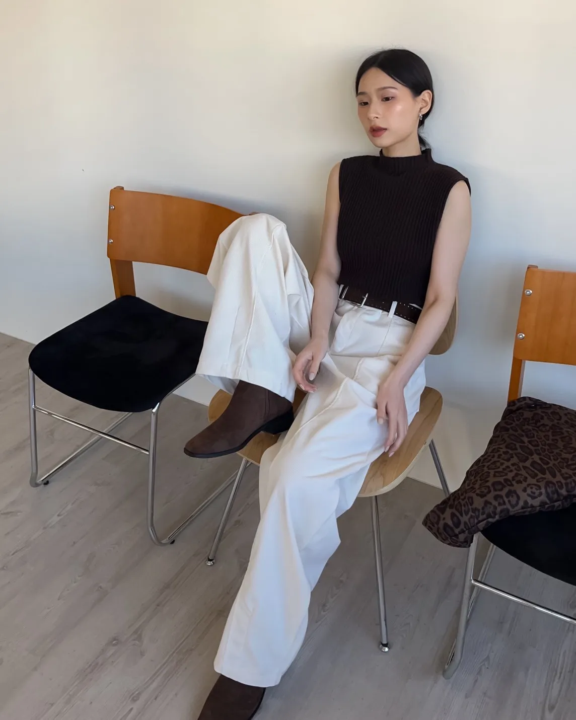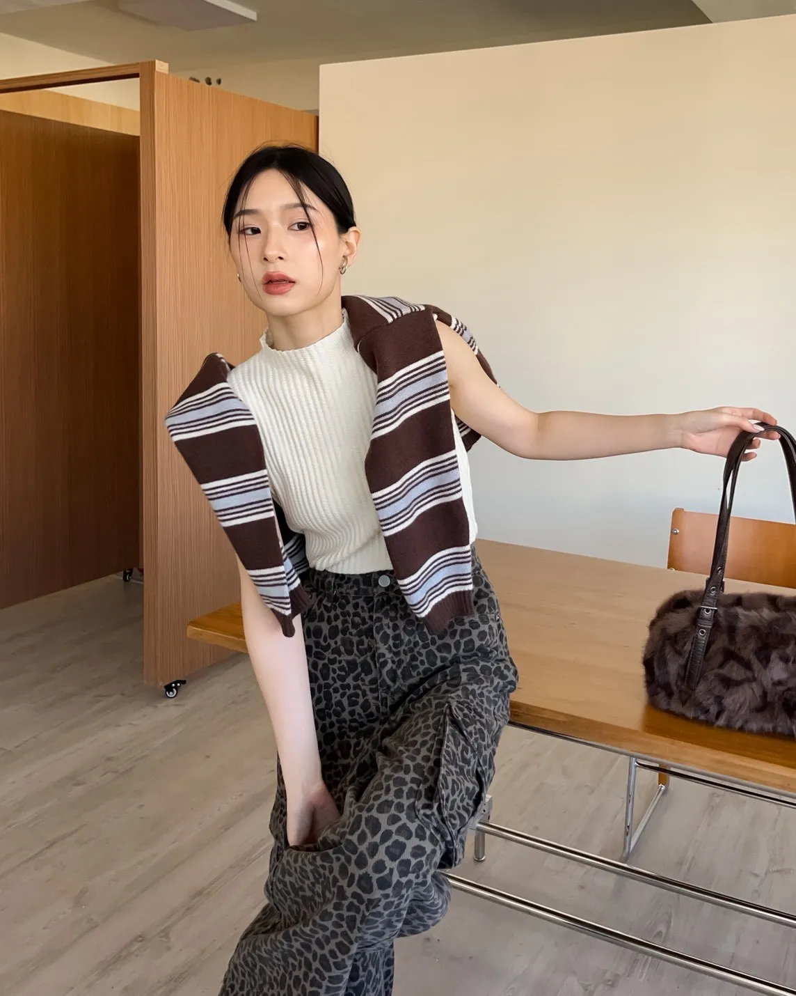 W0022螺旋麵坑紋立領針織背心(米/灰/咖啡/紅/黑)