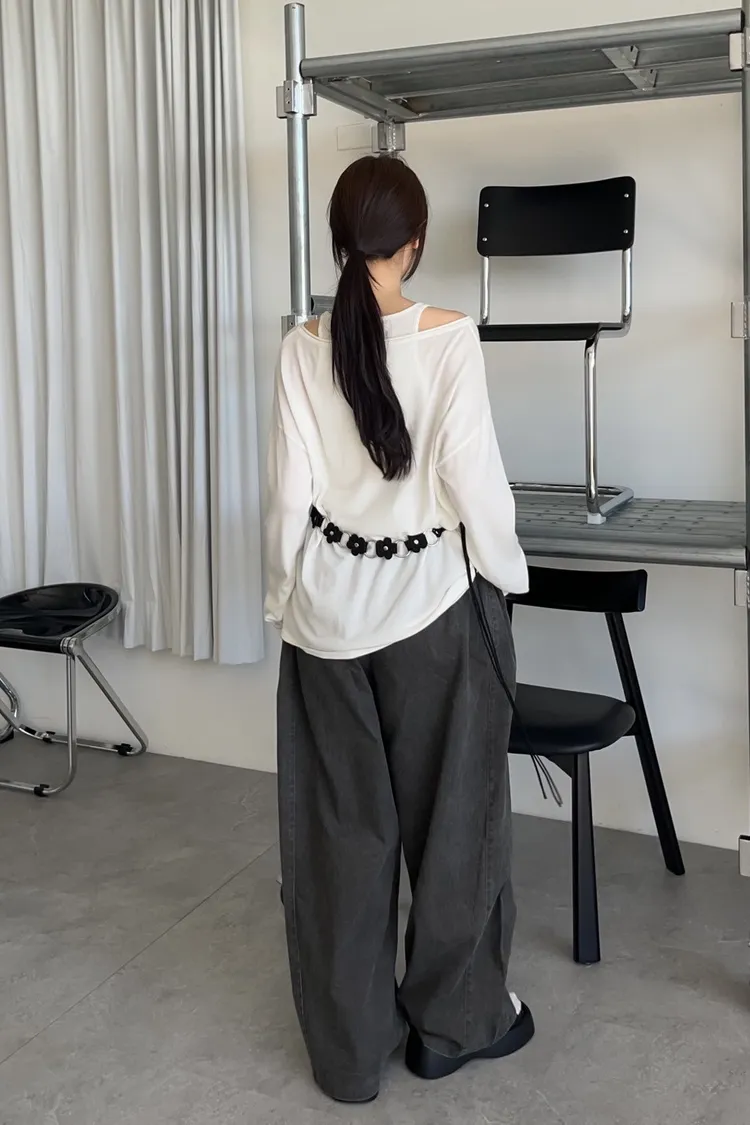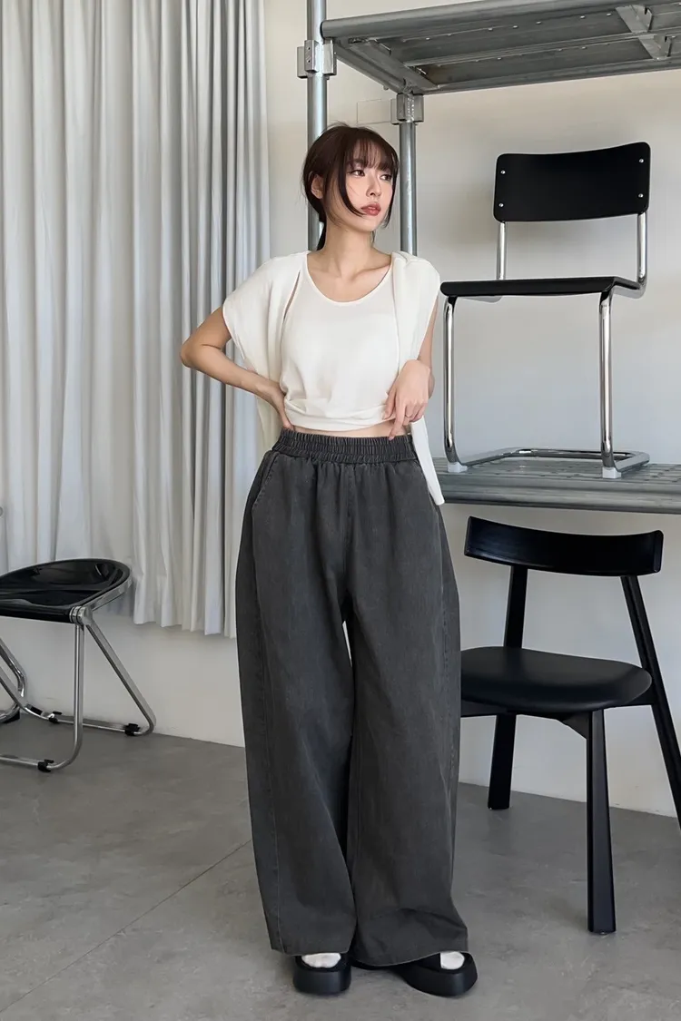 U0066側車線寬版水洗褲(淺灰/深灰)