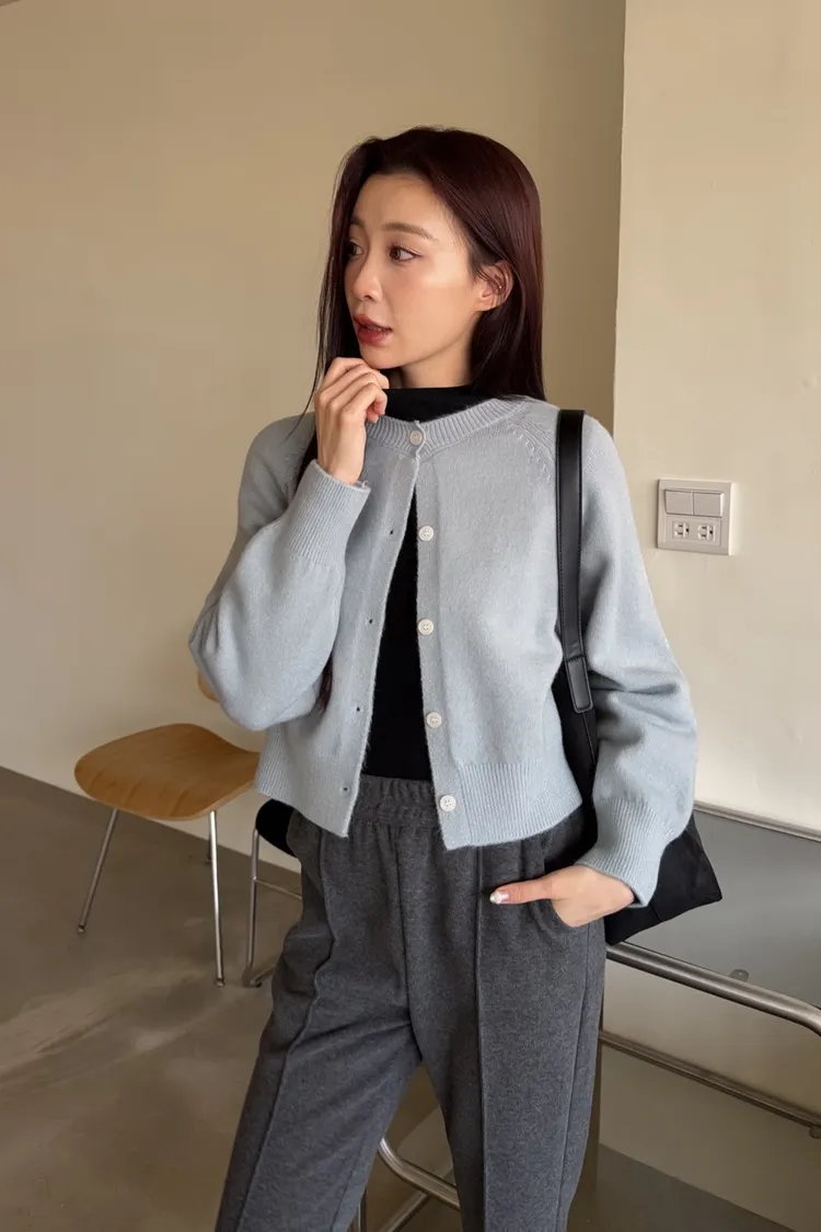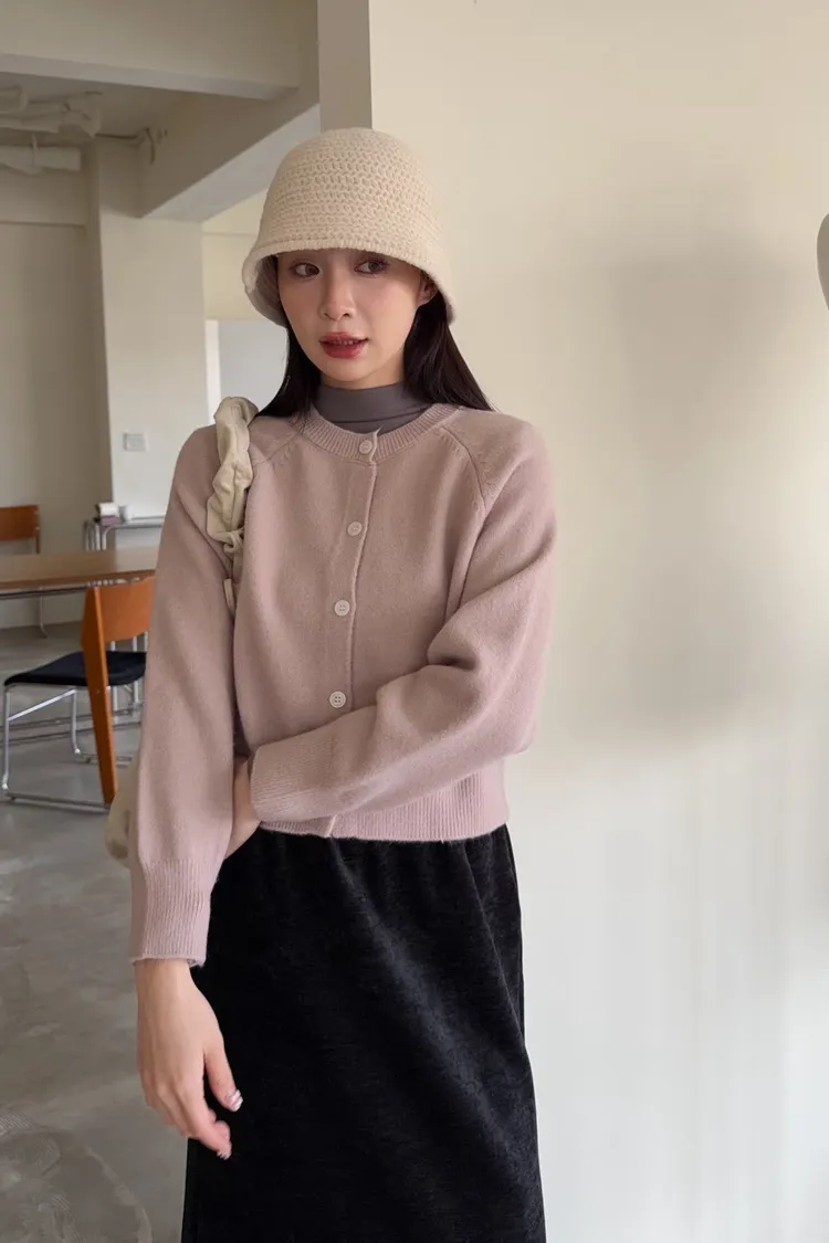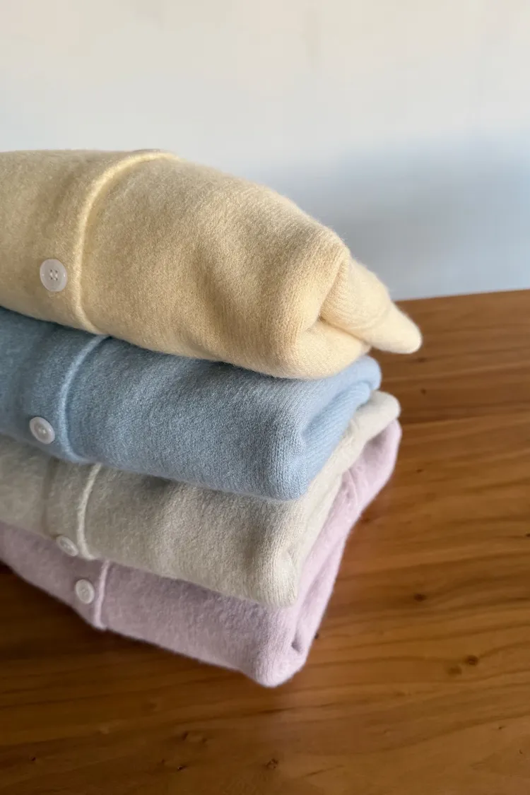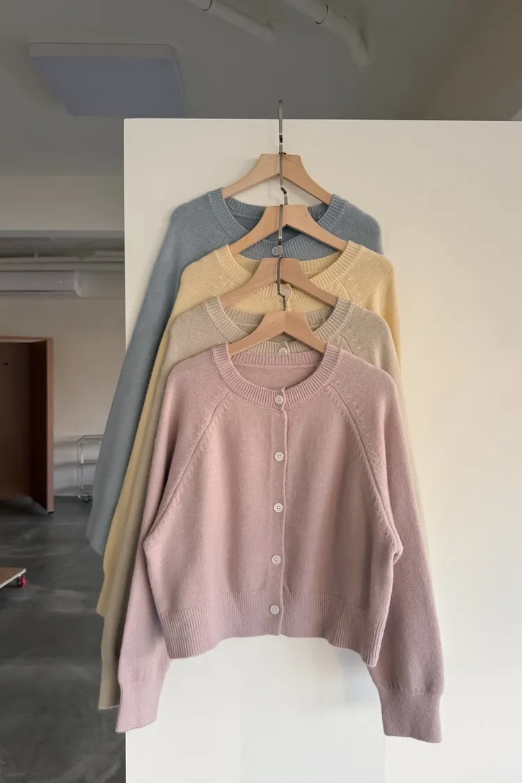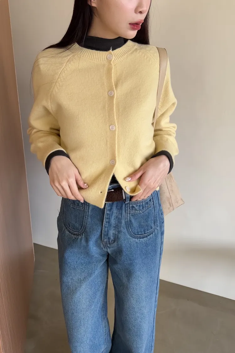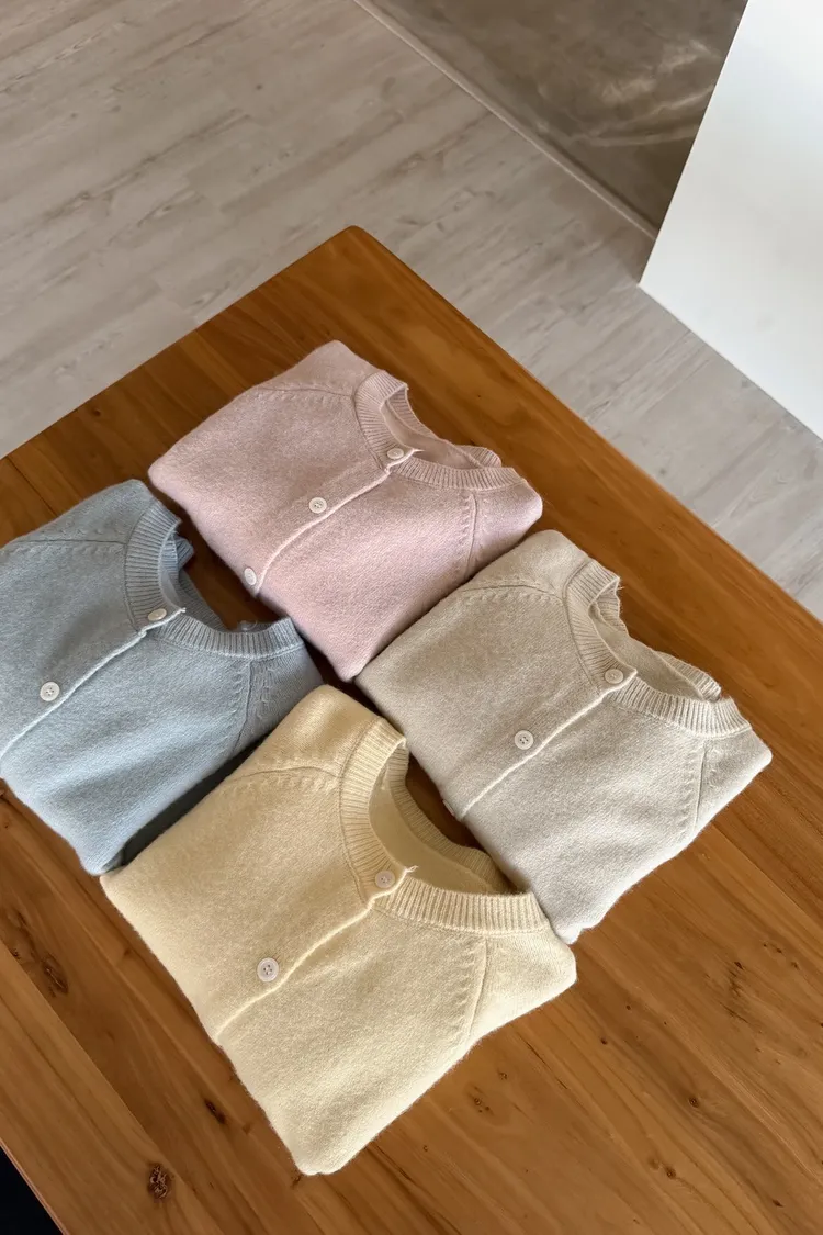 X0014糖果色縫線亮面鈕扣毛衣(杏/粉紅/藍/黃)