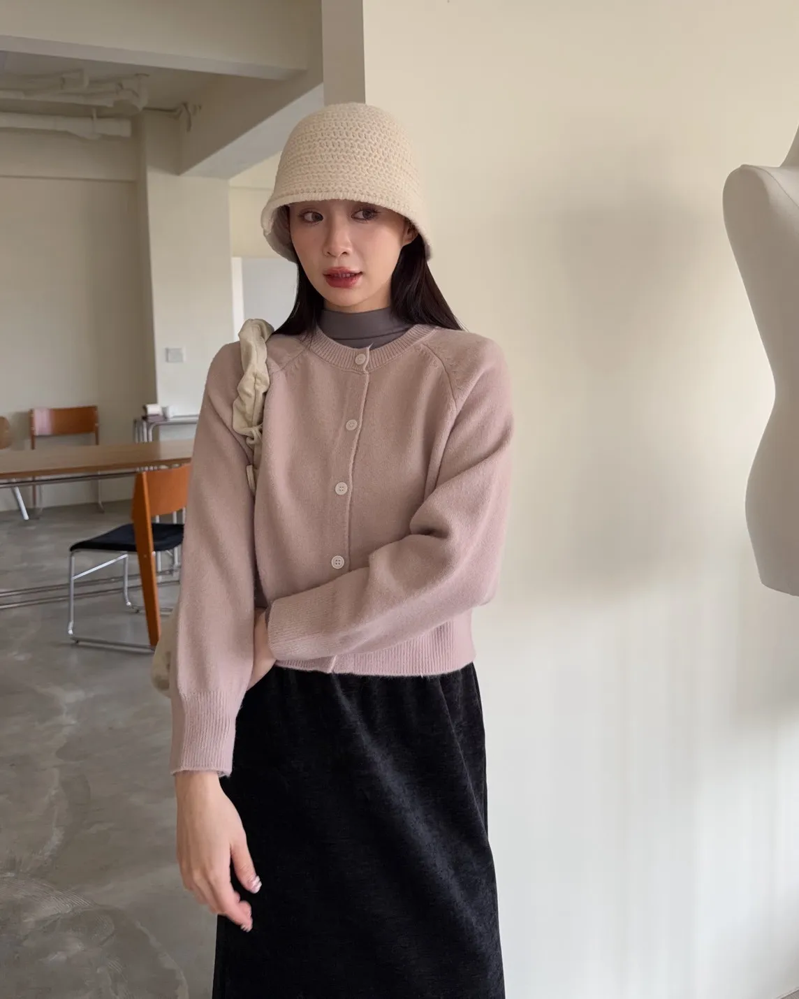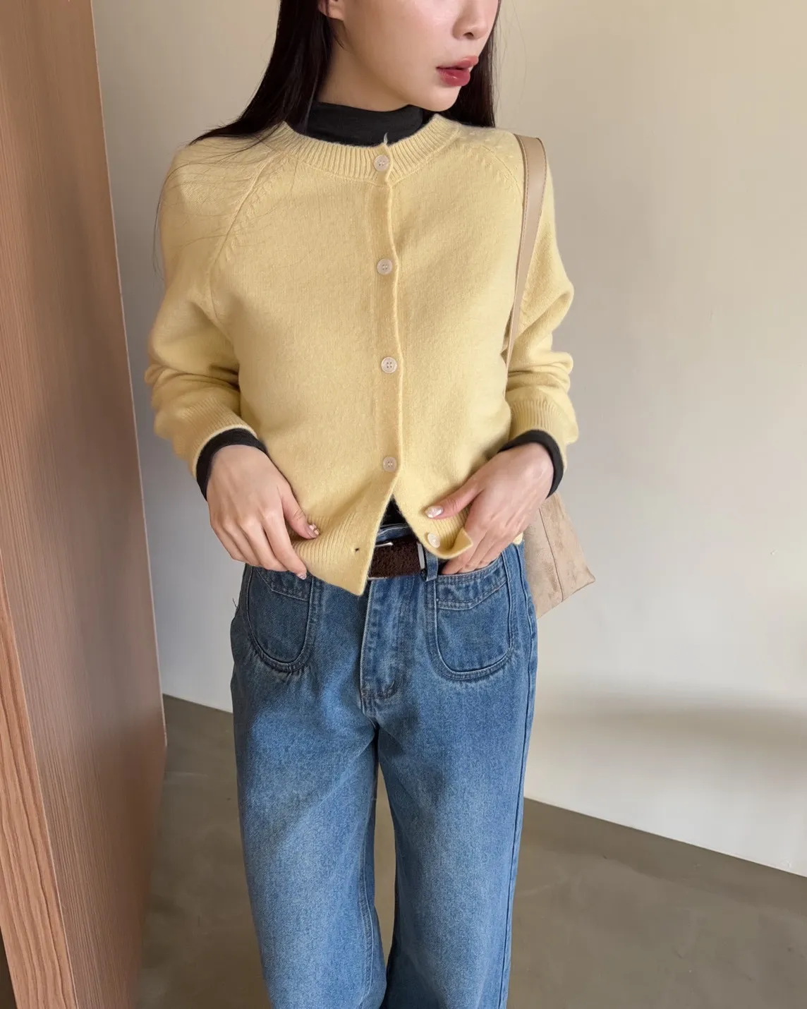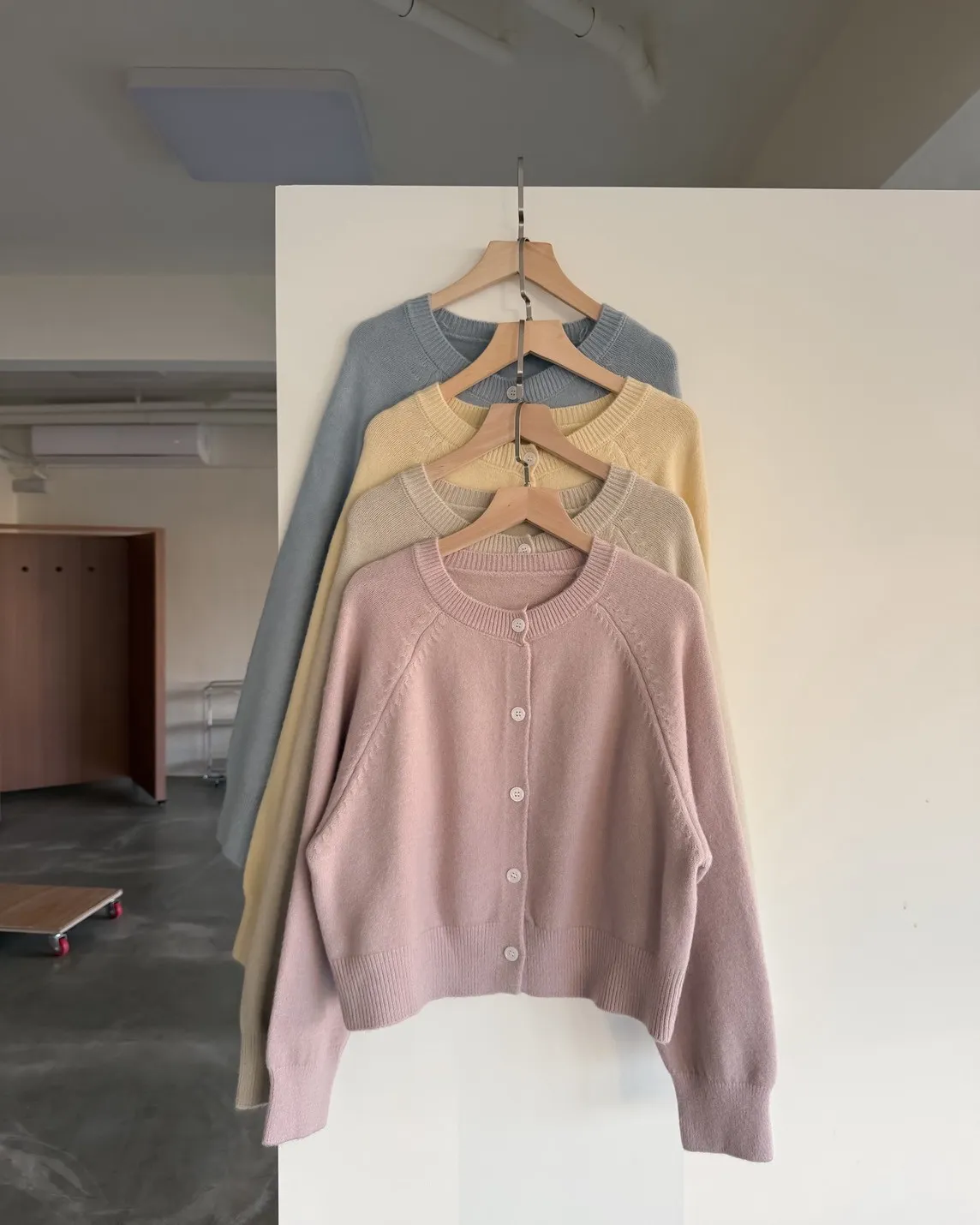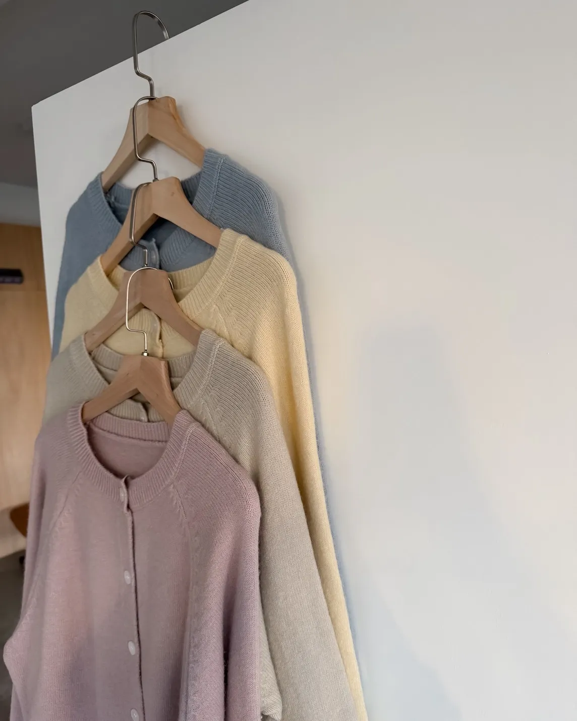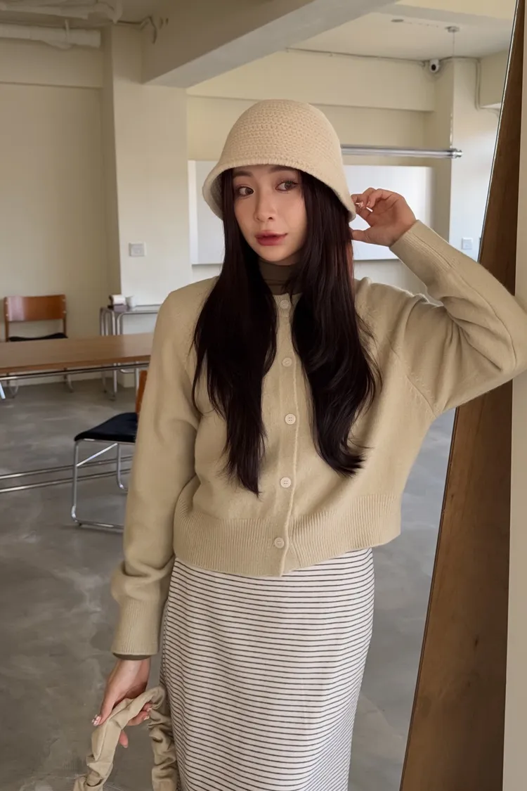 X0014糖果色縫線亮面鈕扣毛衣(杏/粉紅/藍/黃)