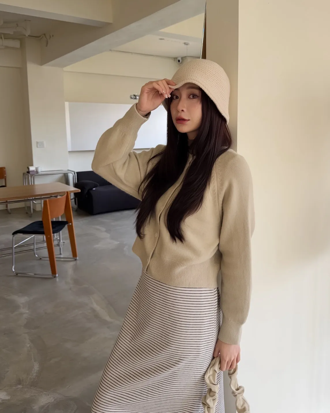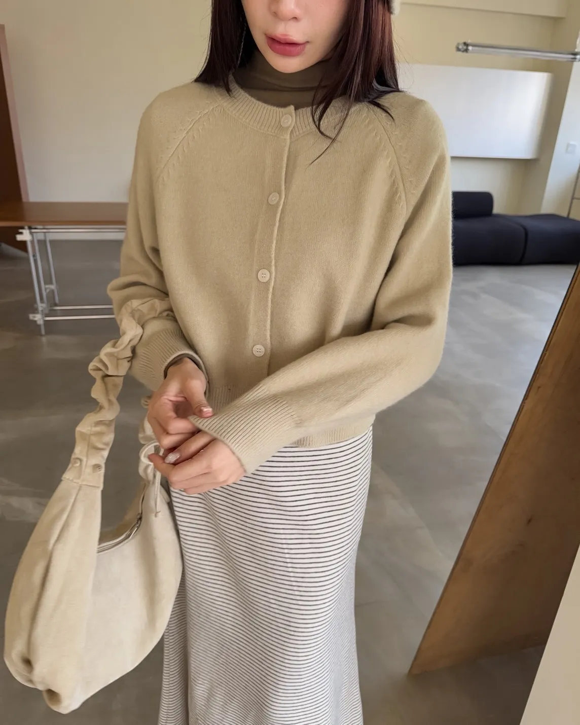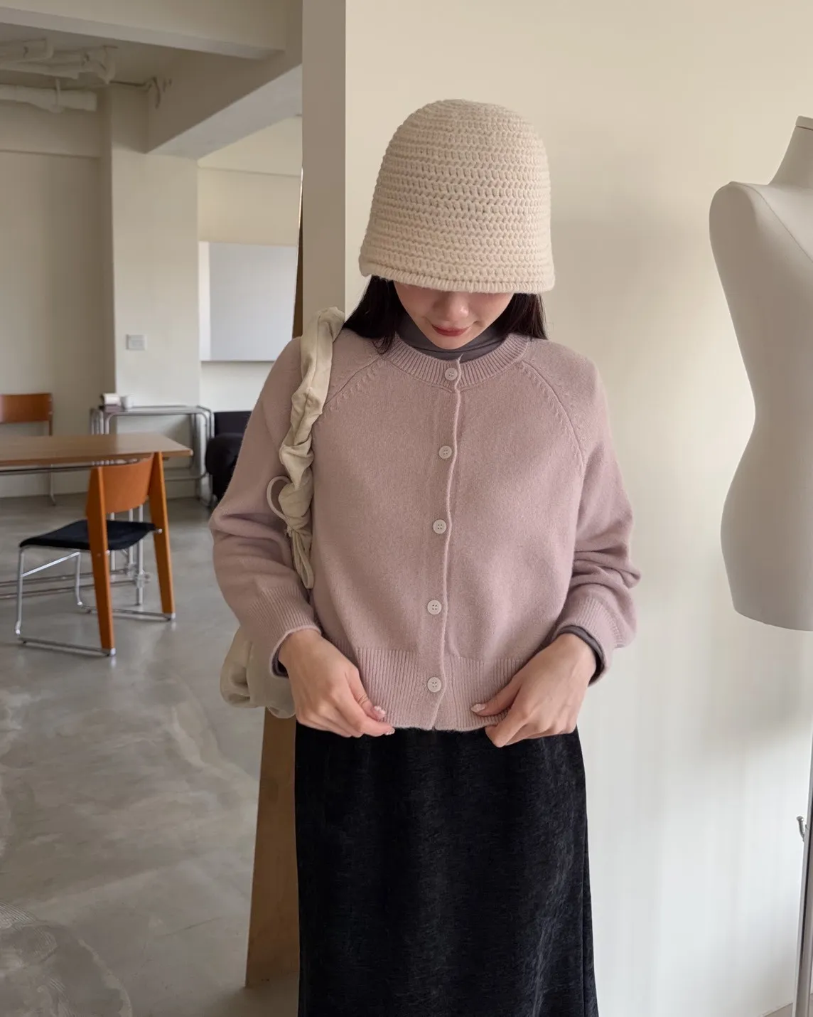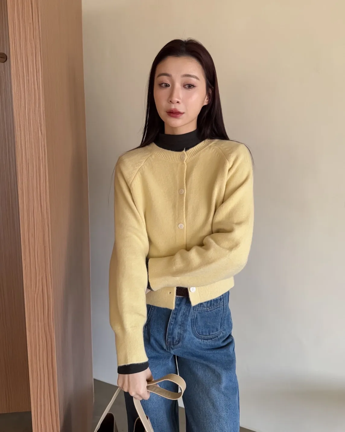 X0014糖果色縫線亮面鈕扣毛衣(杏/粉紅/藍/黃)