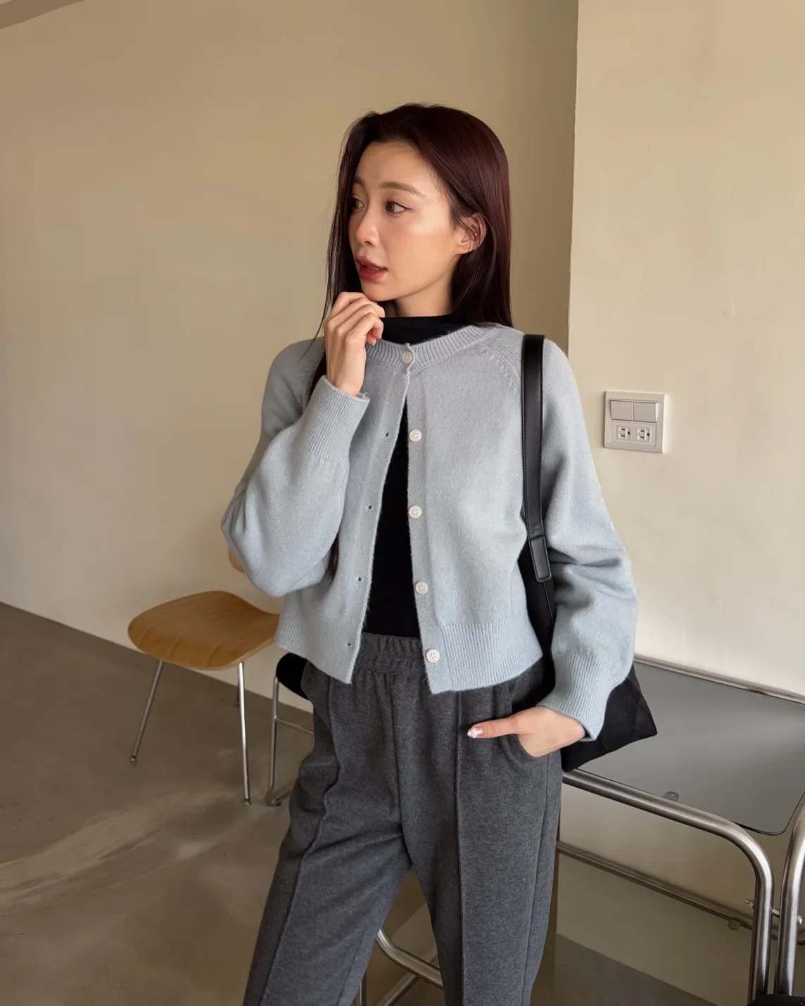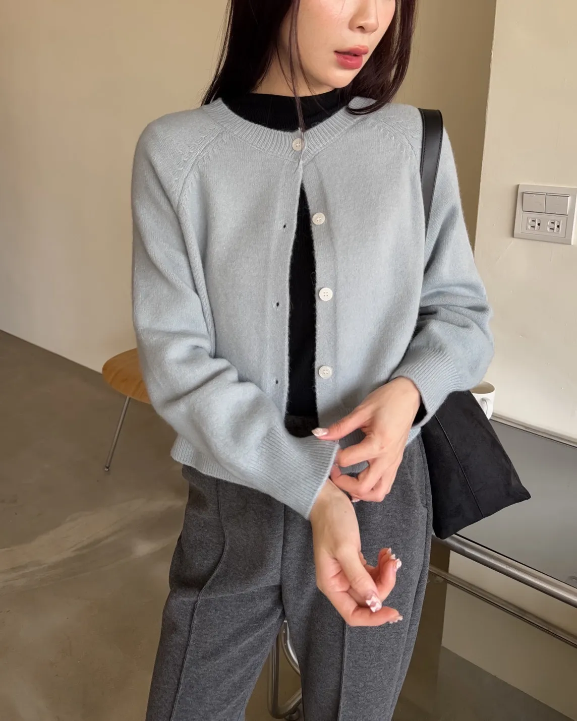 可愛糖果色系 落肩 亮面鈕扣 縫線造型