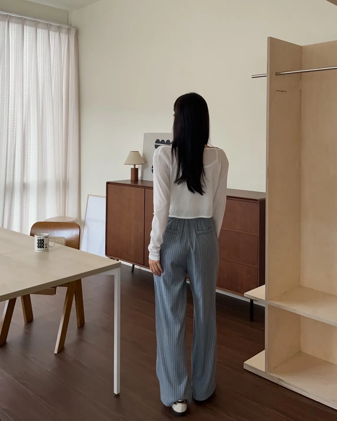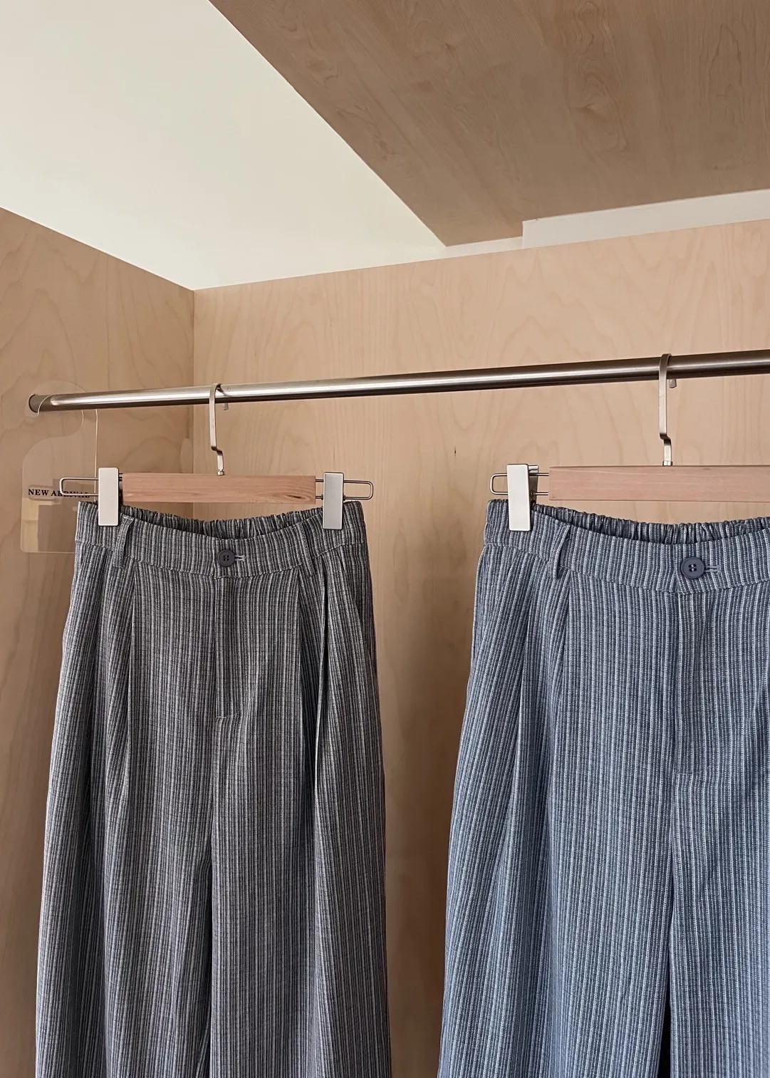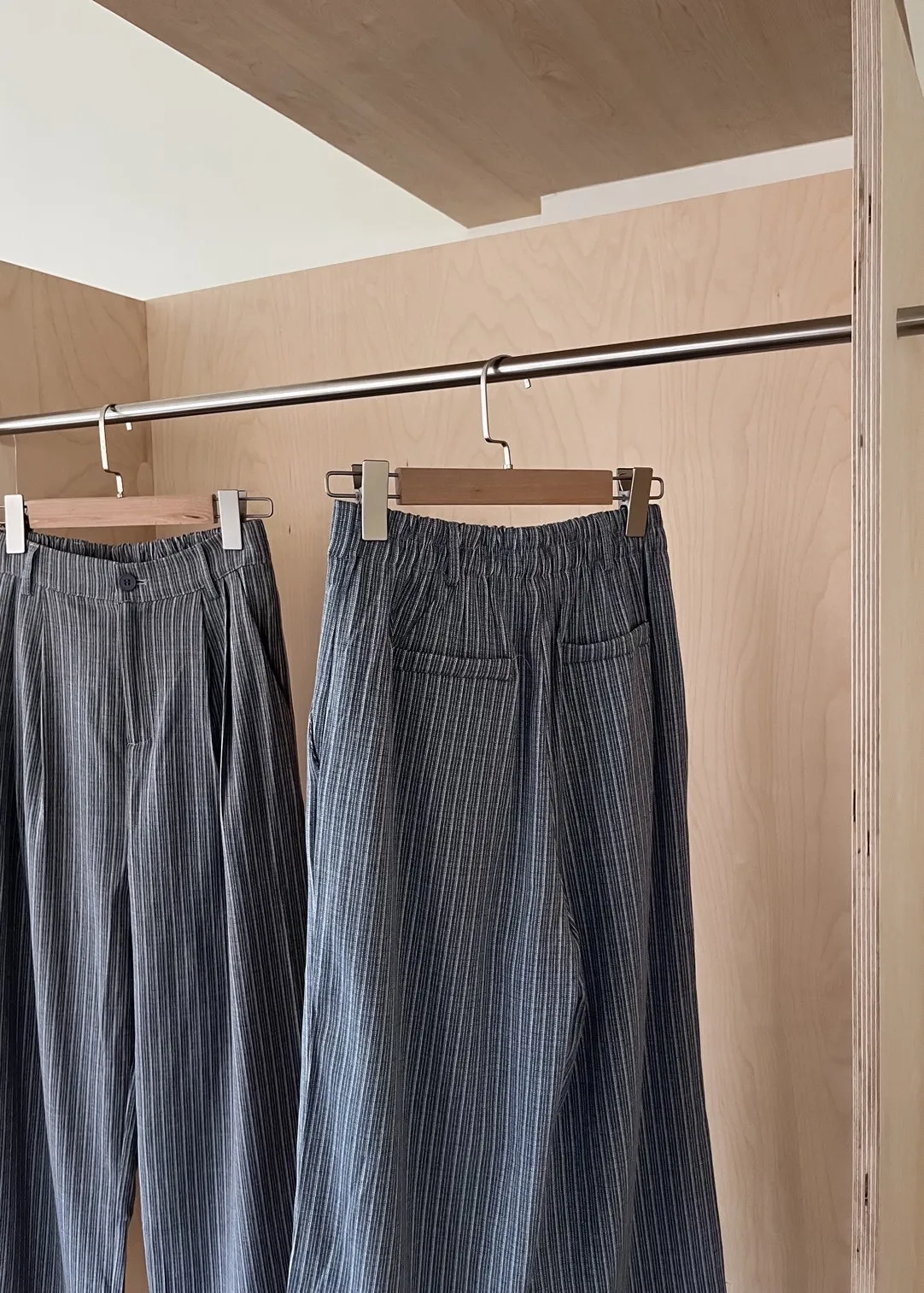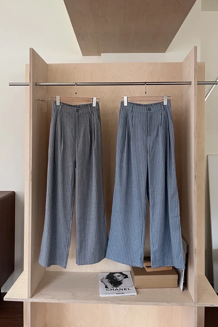 後鬆緊 建議尺寸S-小L 兩側口袋 後假口袋裝飾 前打折 細細格紋 布料本身無彈性