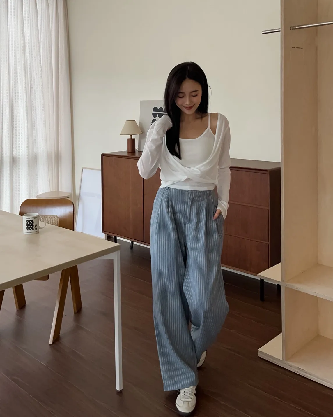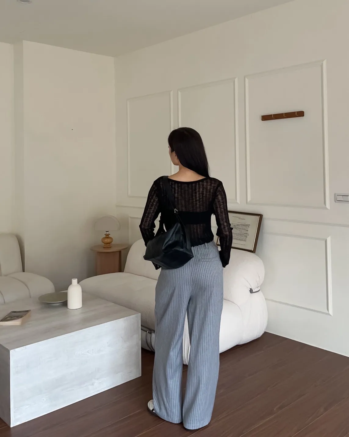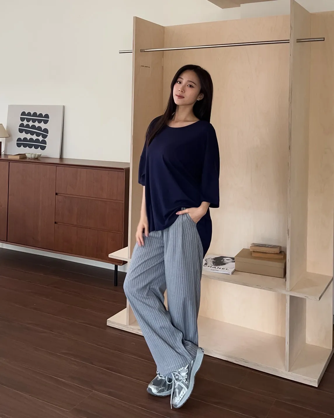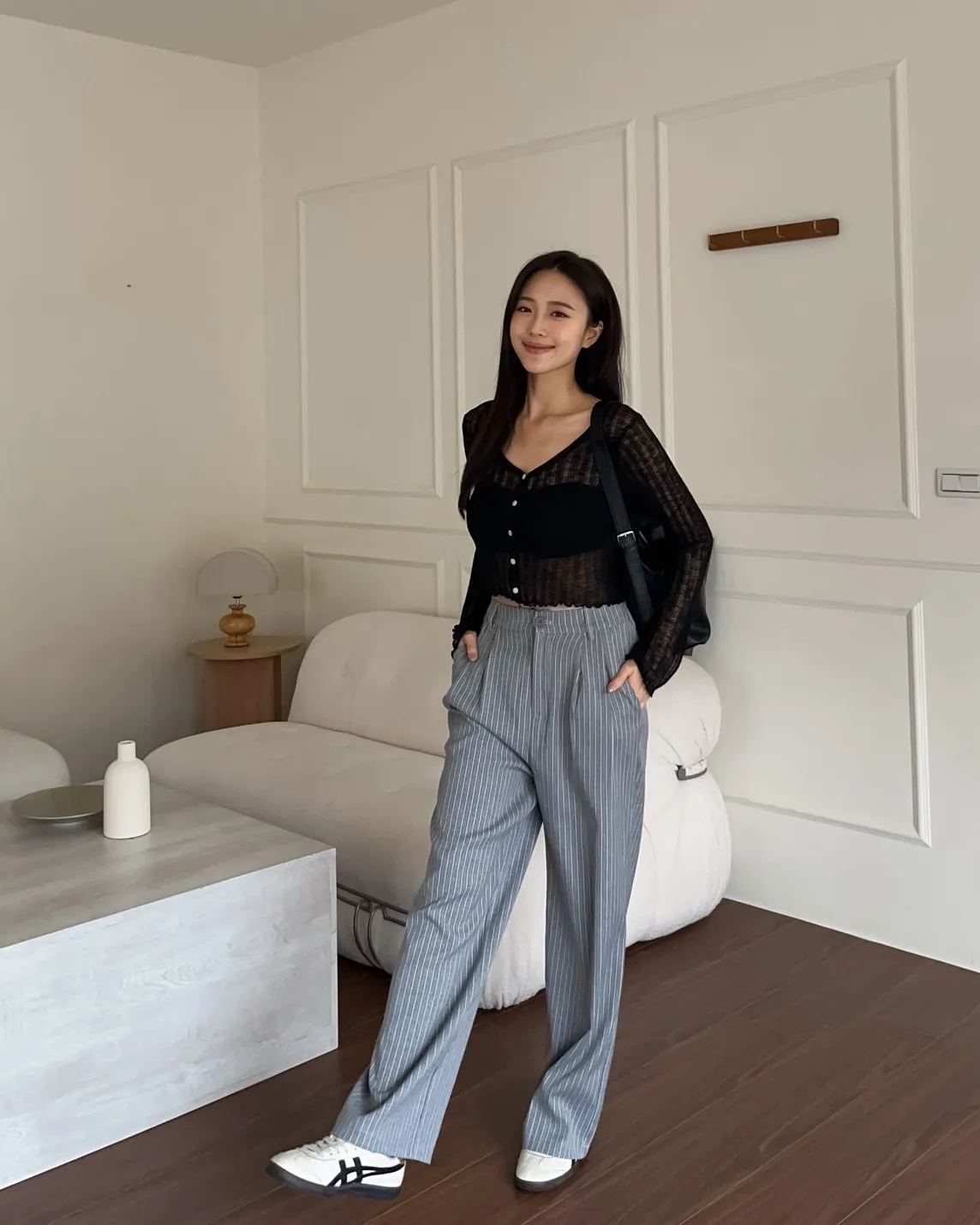 後鬆緊 建議尺寸S-小L 兩側口袋 後假口袋裝飾 前打折 細細格紋 布料本身無彈性