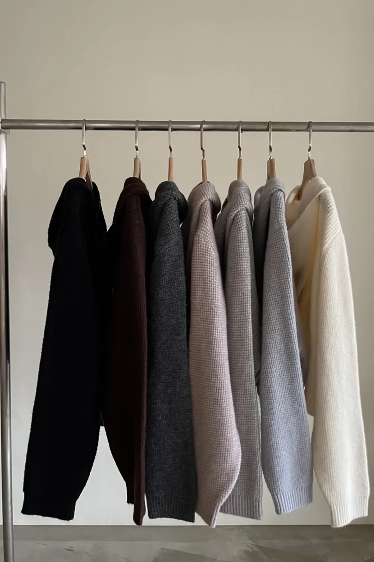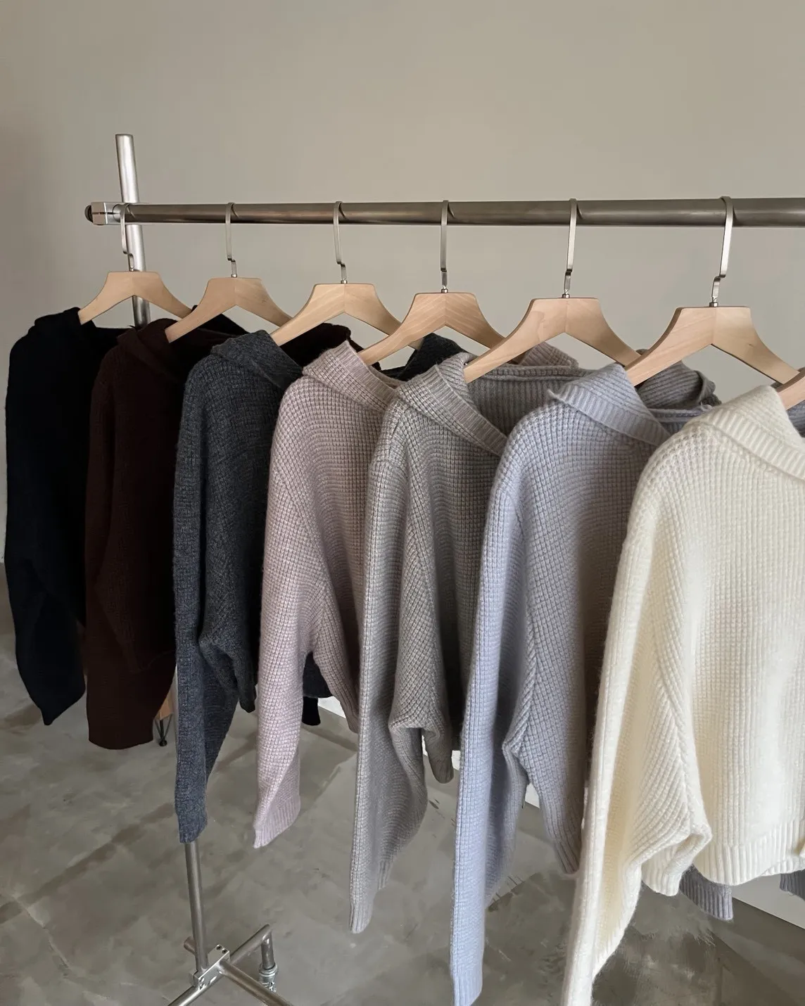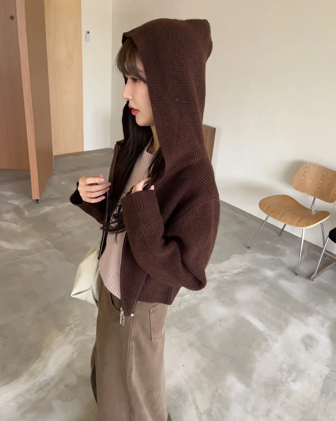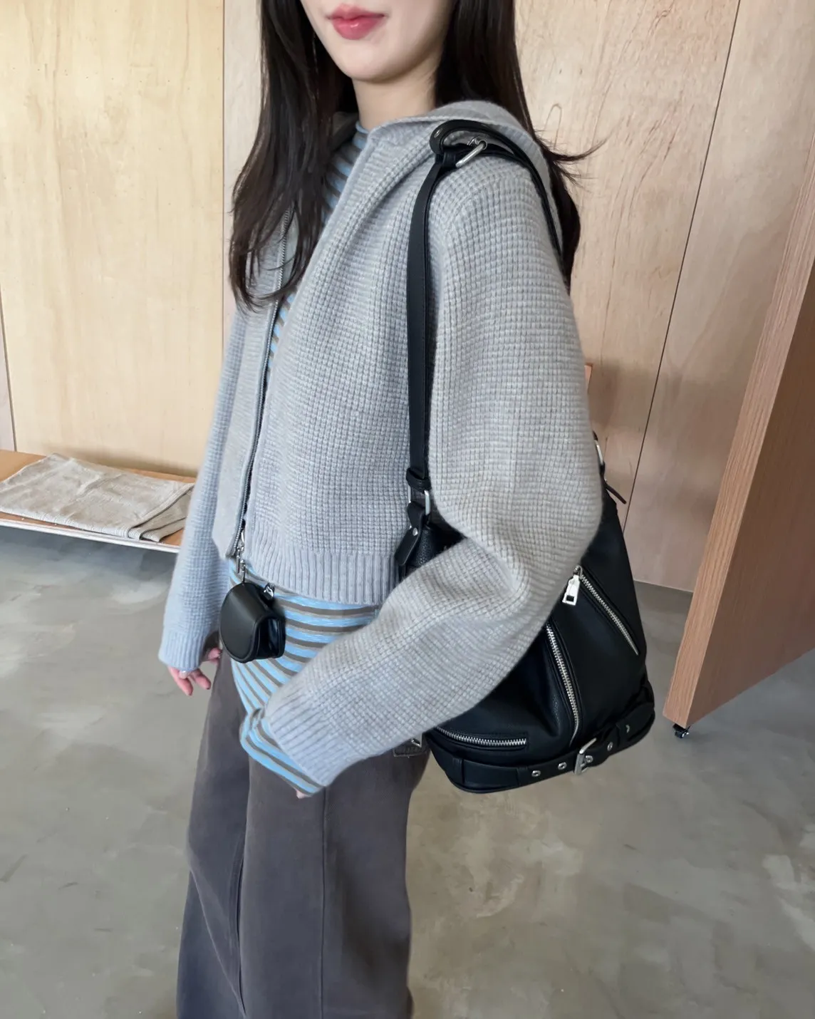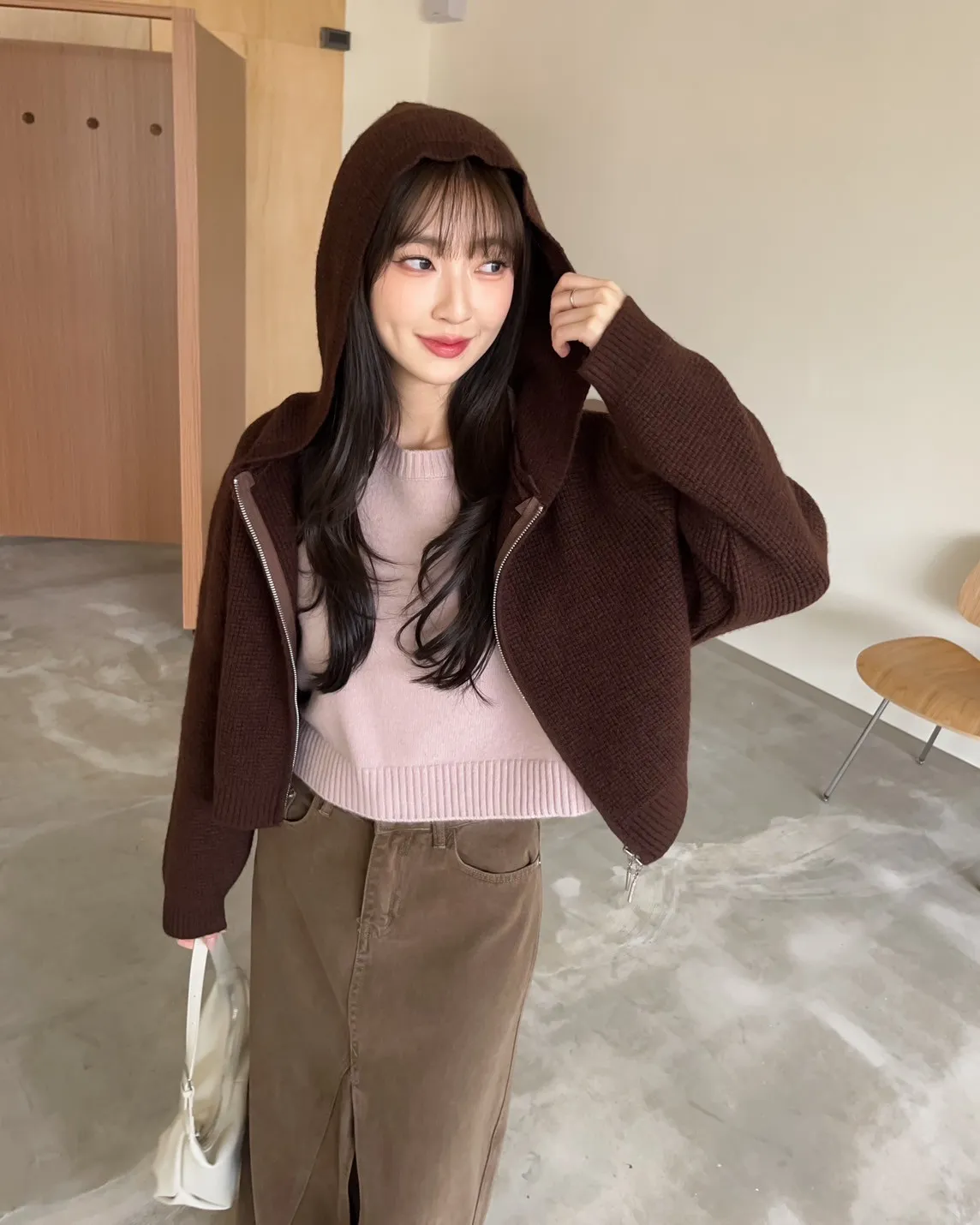 V0076(七色)華夫格雙拉鏈連帽針織外套(米白/咖啡/藍/粉紅/淺灰/深灰/黑)