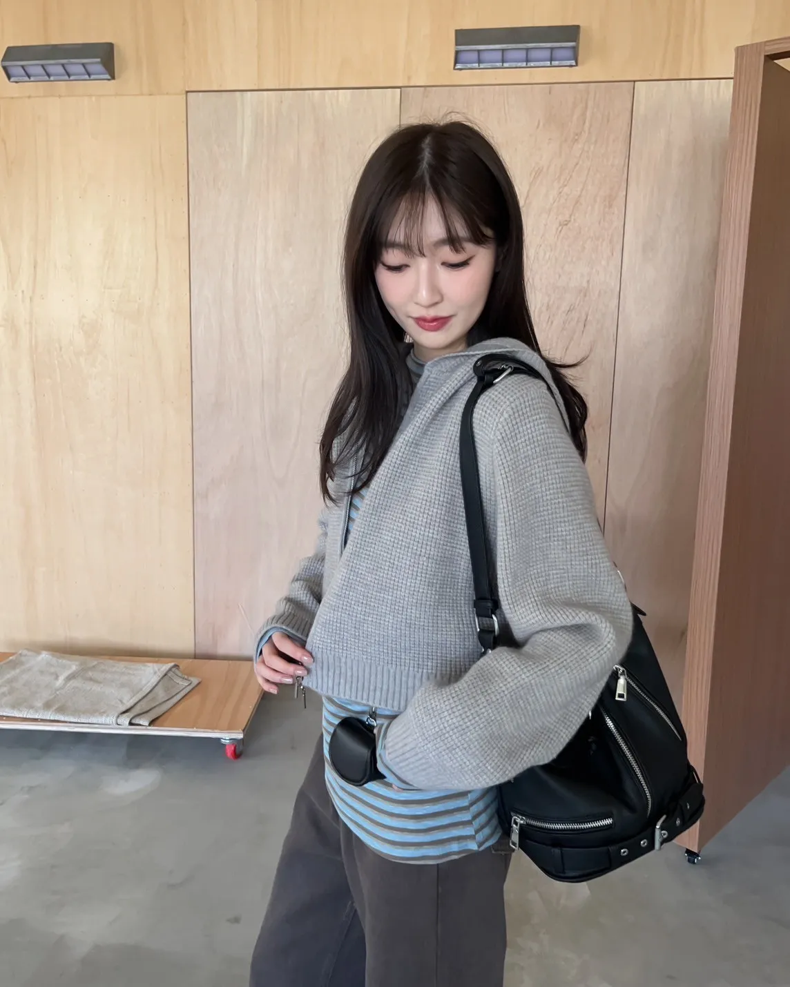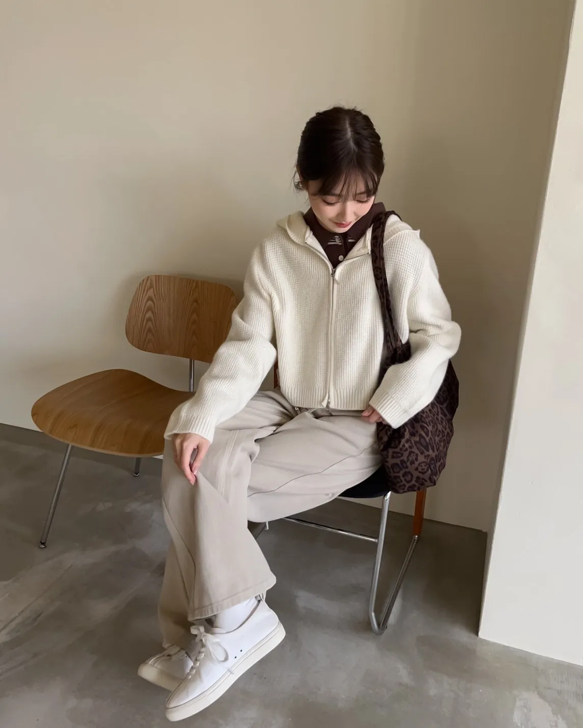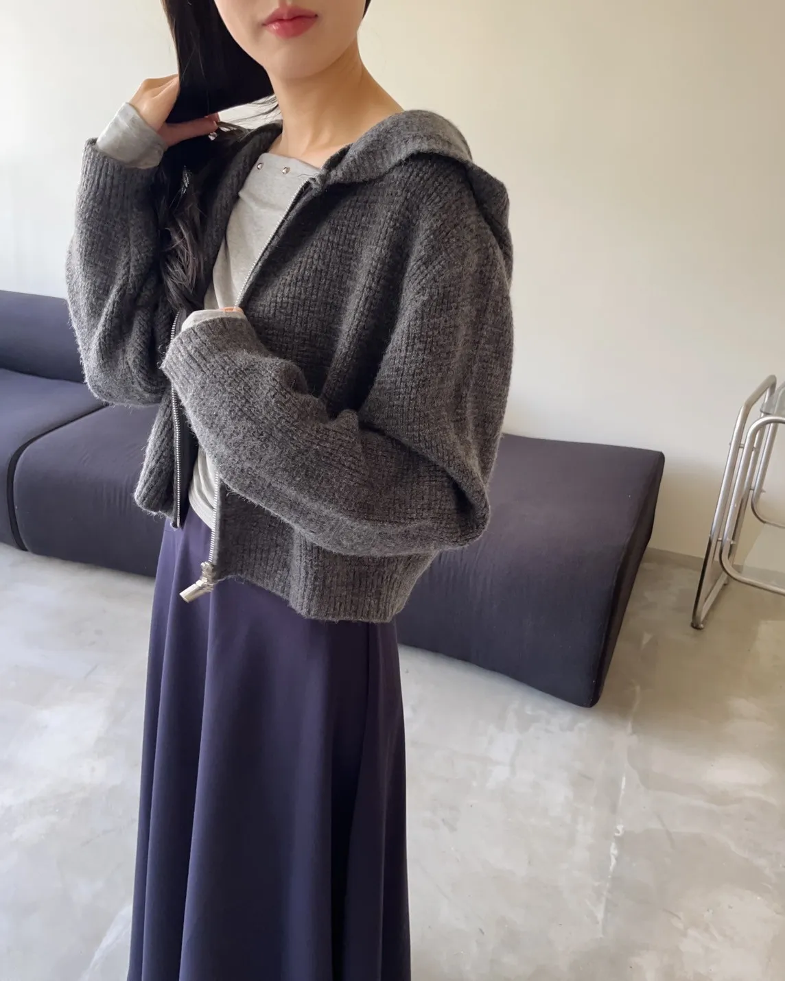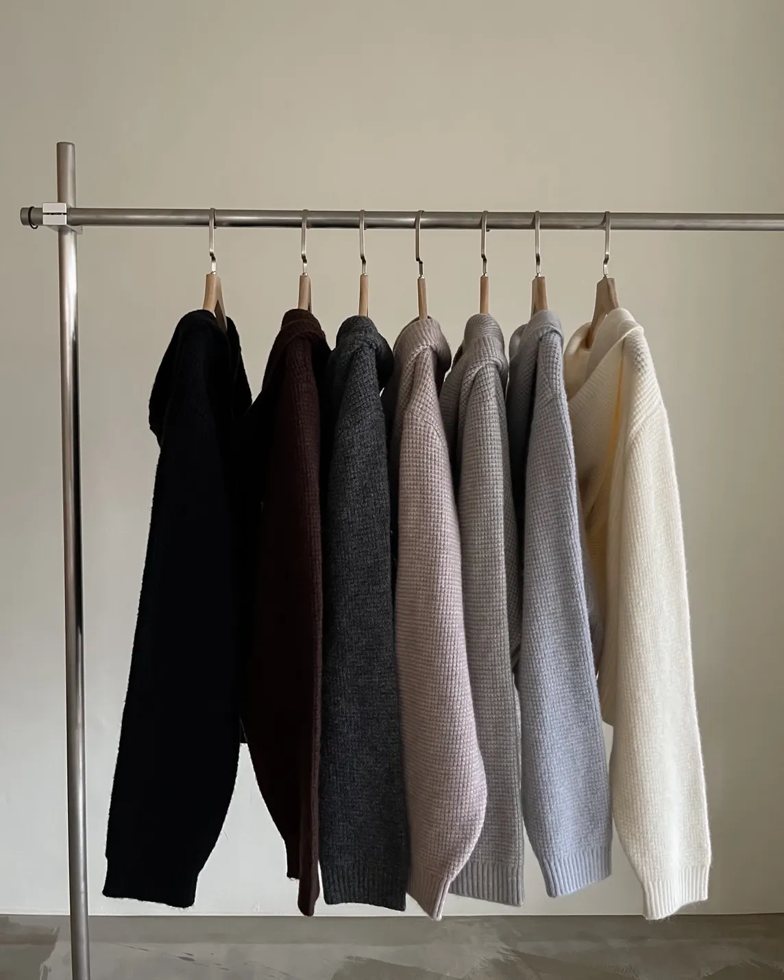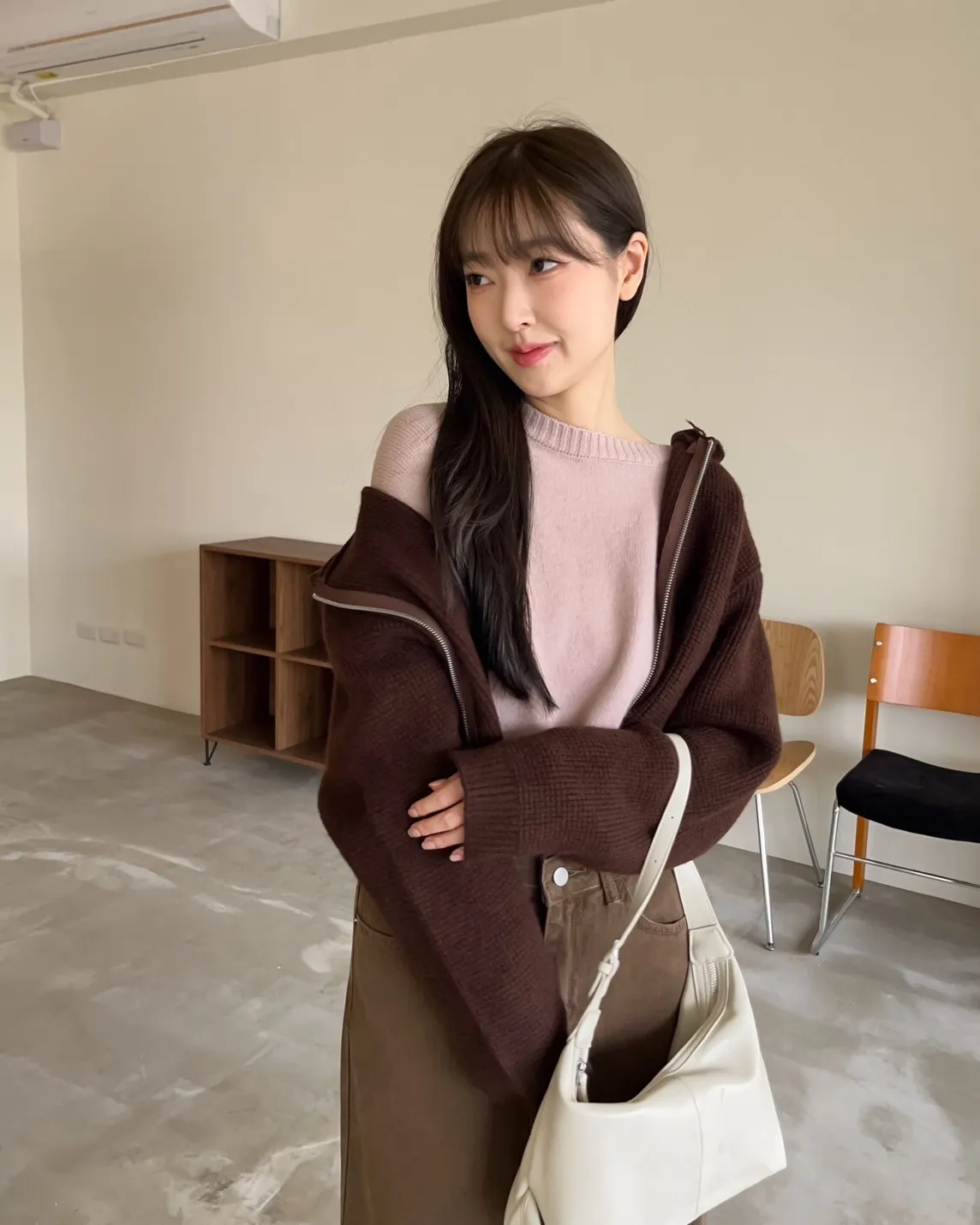 V0076(七色)華夫格雙拉鏈連帽針織外套(米白/咖啡/藍/粉紅/淺灰/深灰/黑)