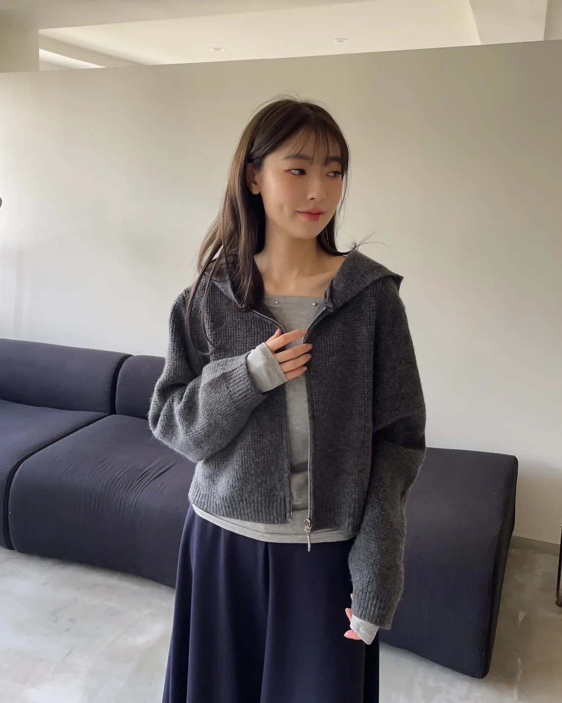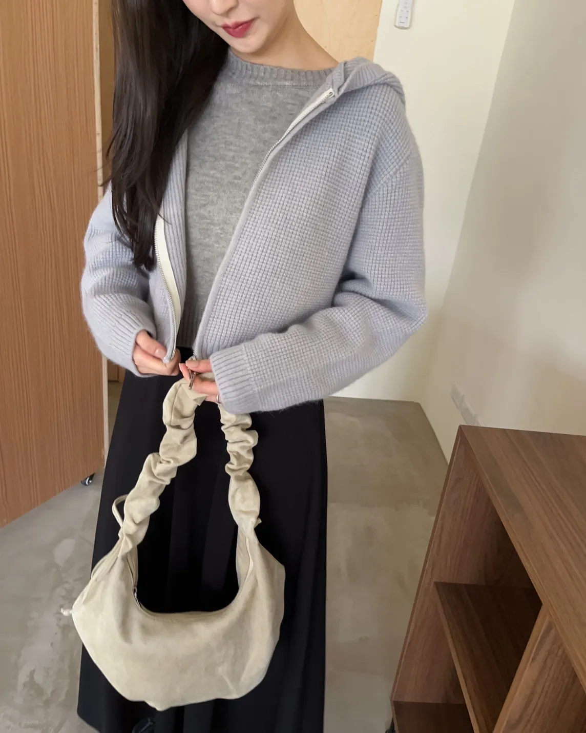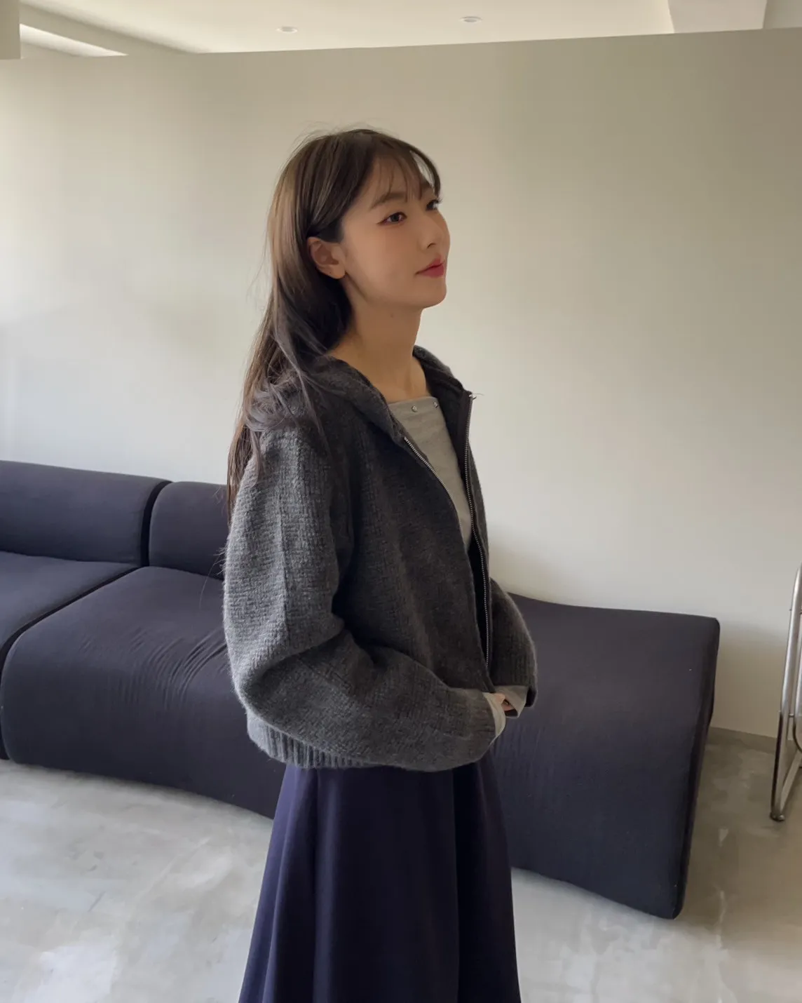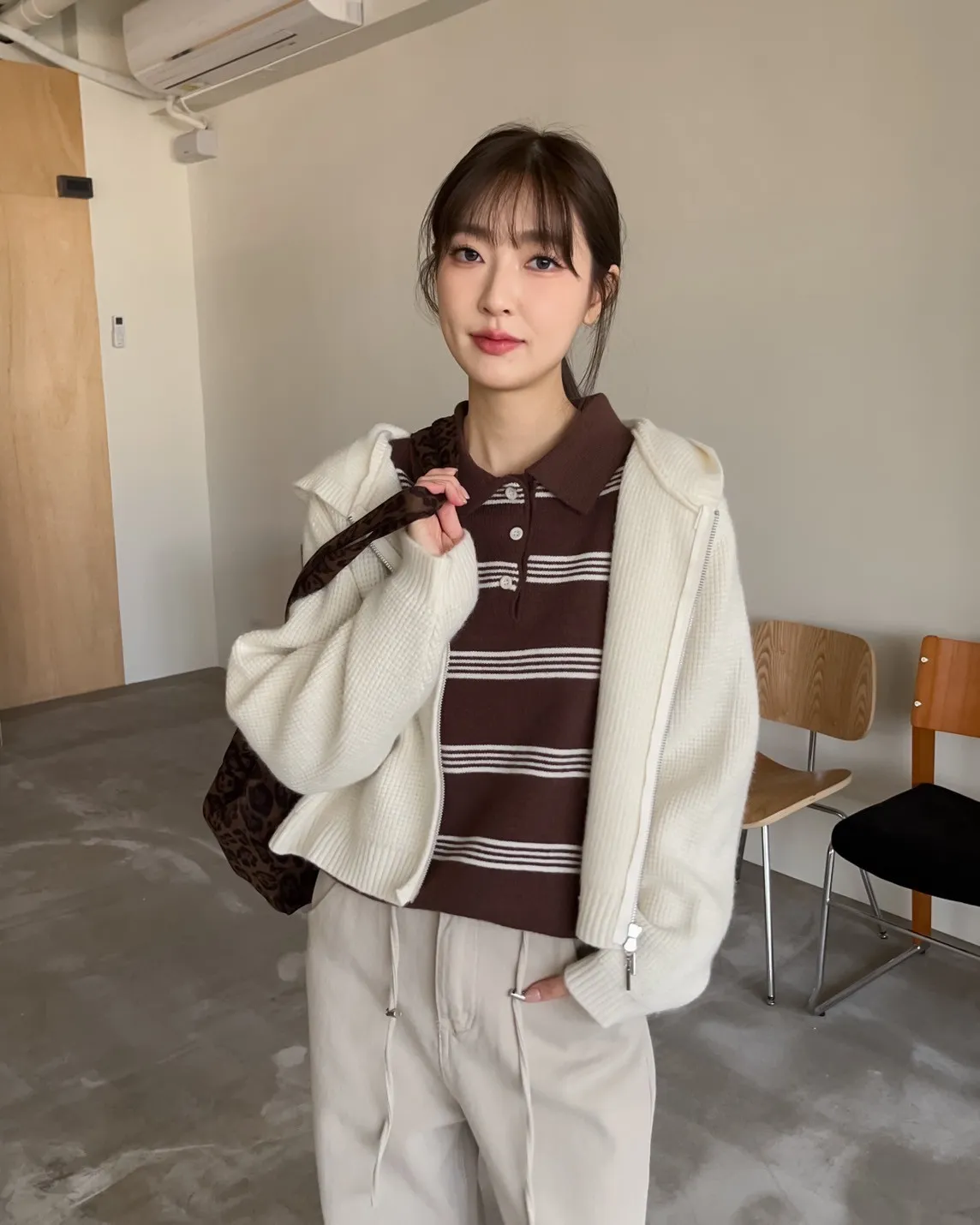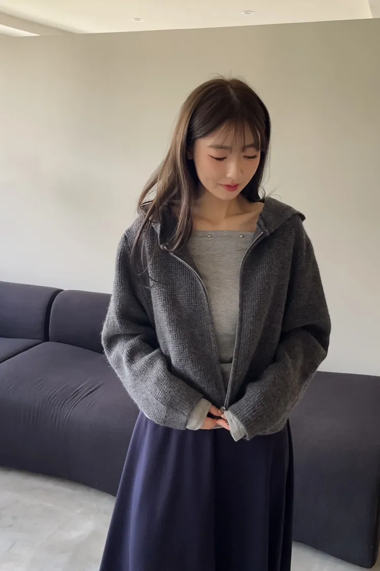 V0076(七色)華夫格雙拉鏈連帽針織外套(米白/咖啡/藍/粉紅/淺灰/深灰/黑)