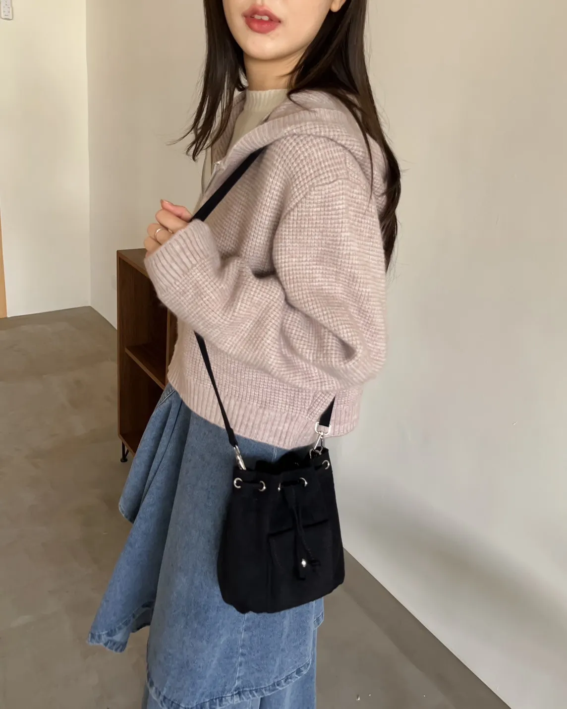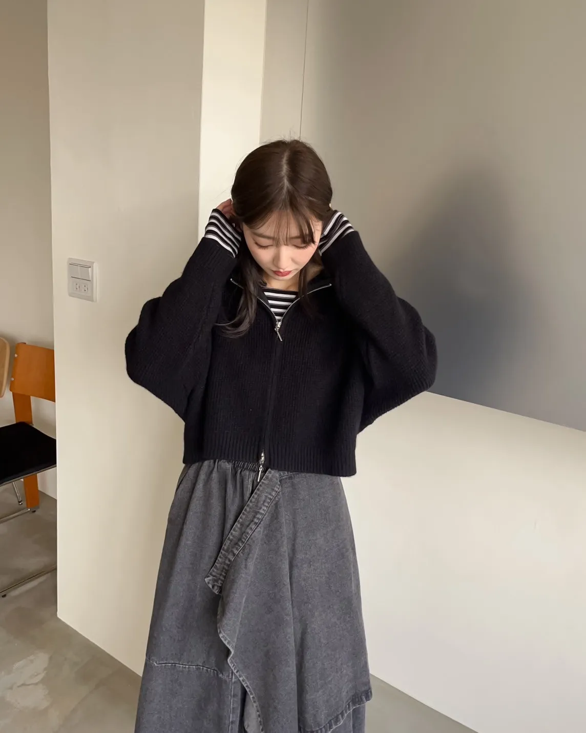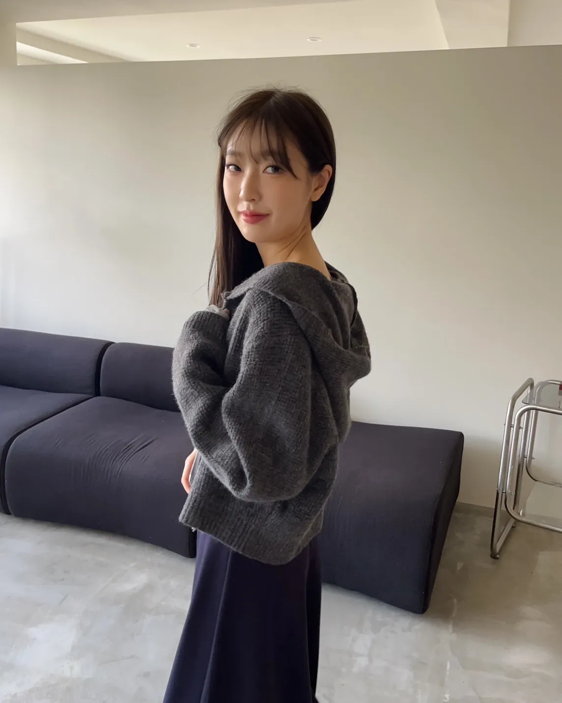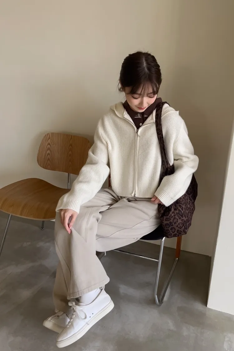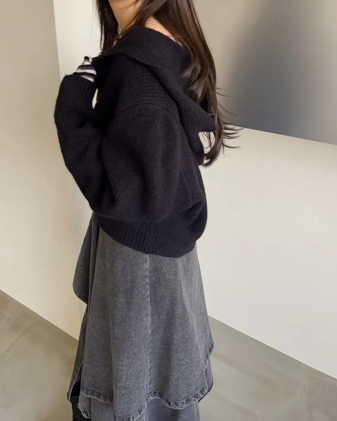 V0076(七色)華夫格雙拉鏈連帽針織外套(米白/咖啡/藍/粉紅/淺灰/深灰/黑)