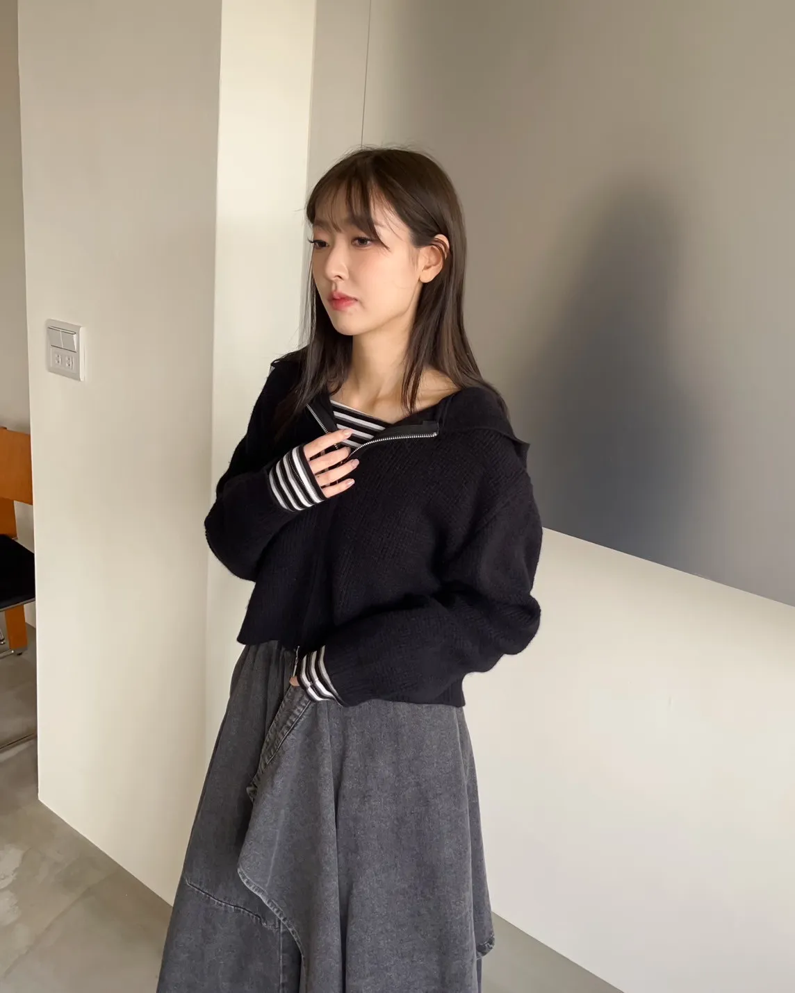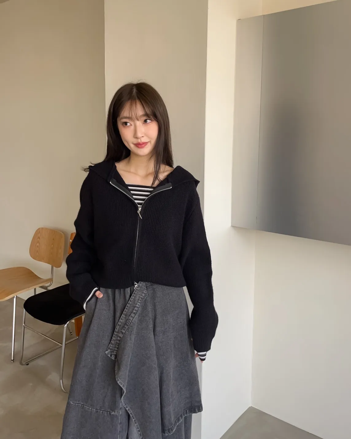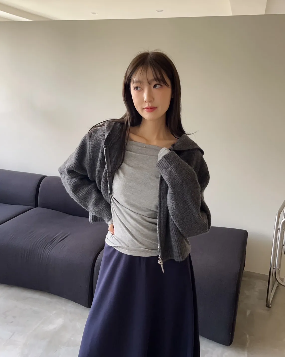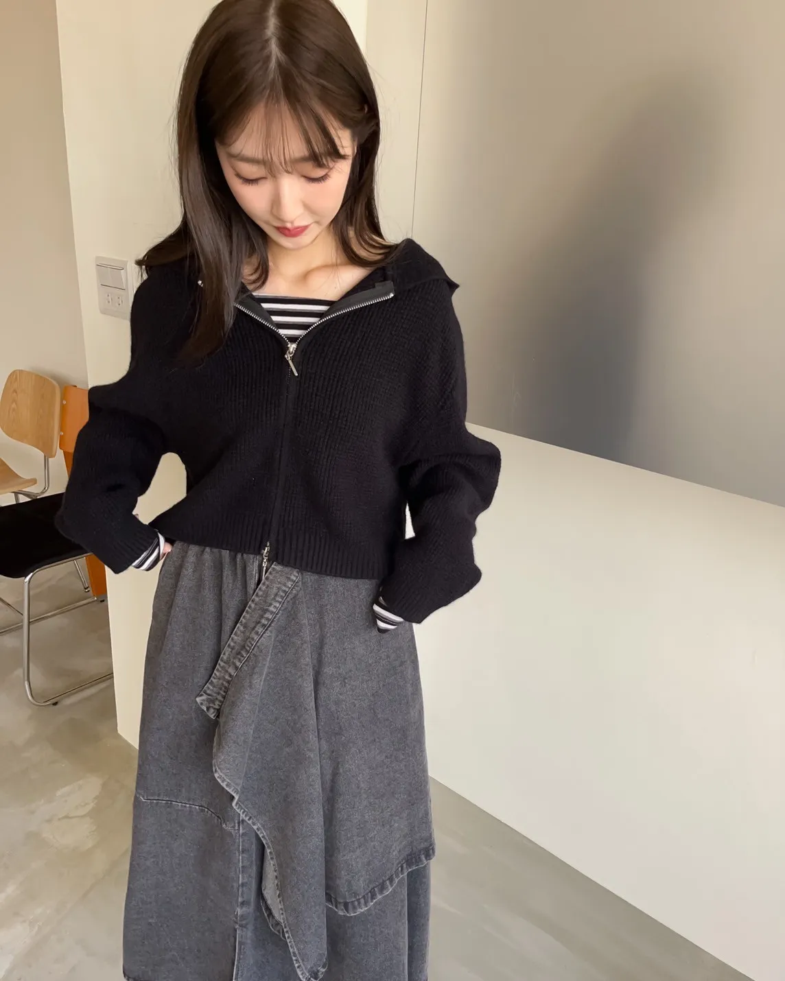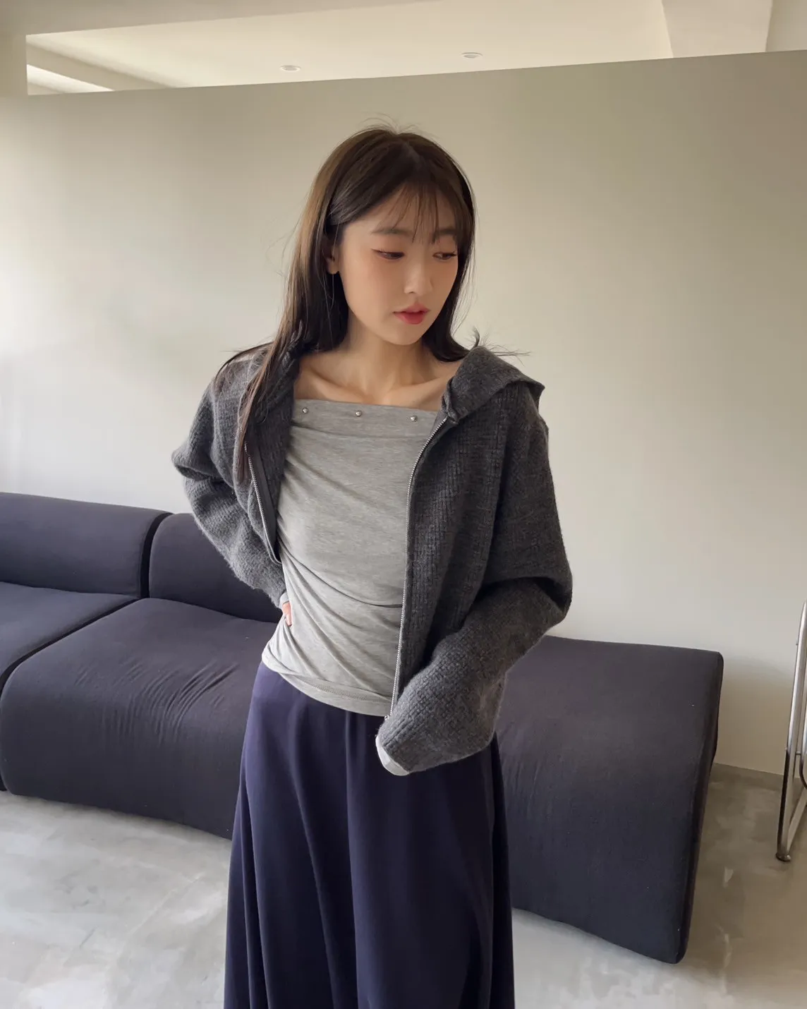 V0076(七色)華夫格雙拉鏈連帽針織外套(米白/咖啡/藍/粉紅/淺灰/深灰/黑)