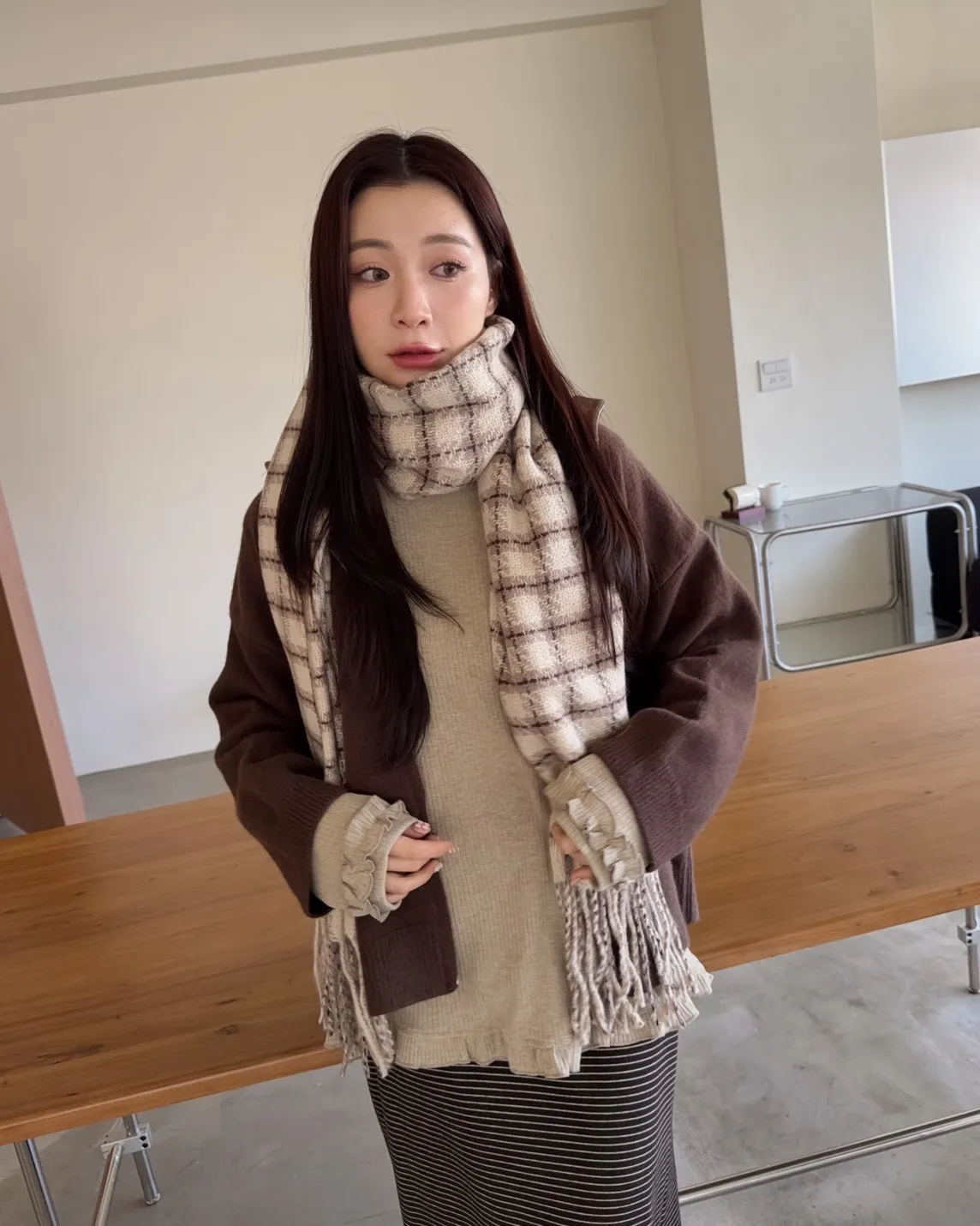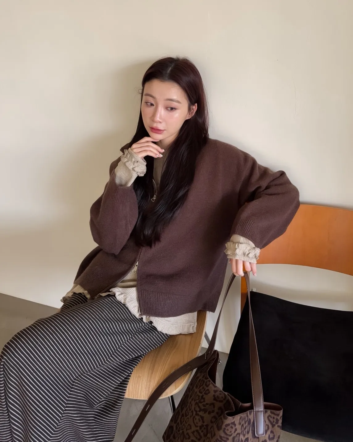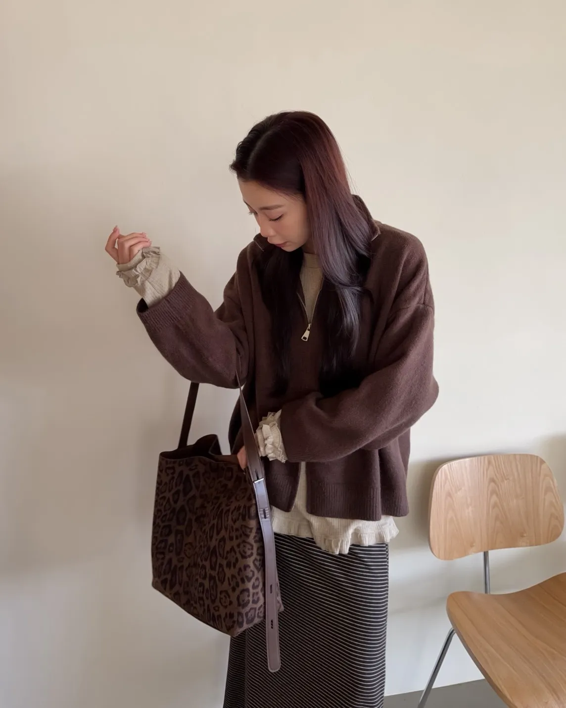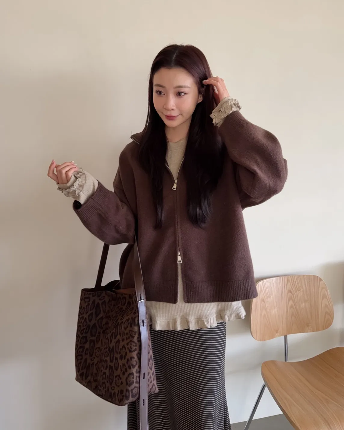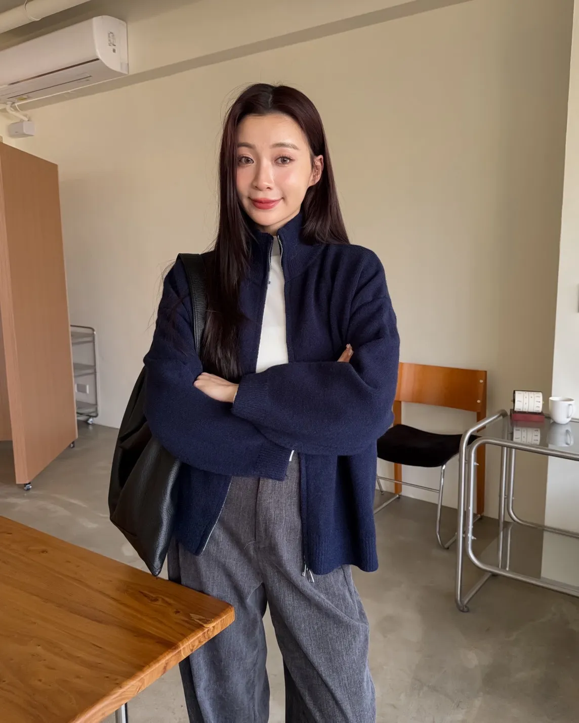 X0003俐落雙拉鍊立領毛衣外套(卡其/咖啡/深藍/紅)
